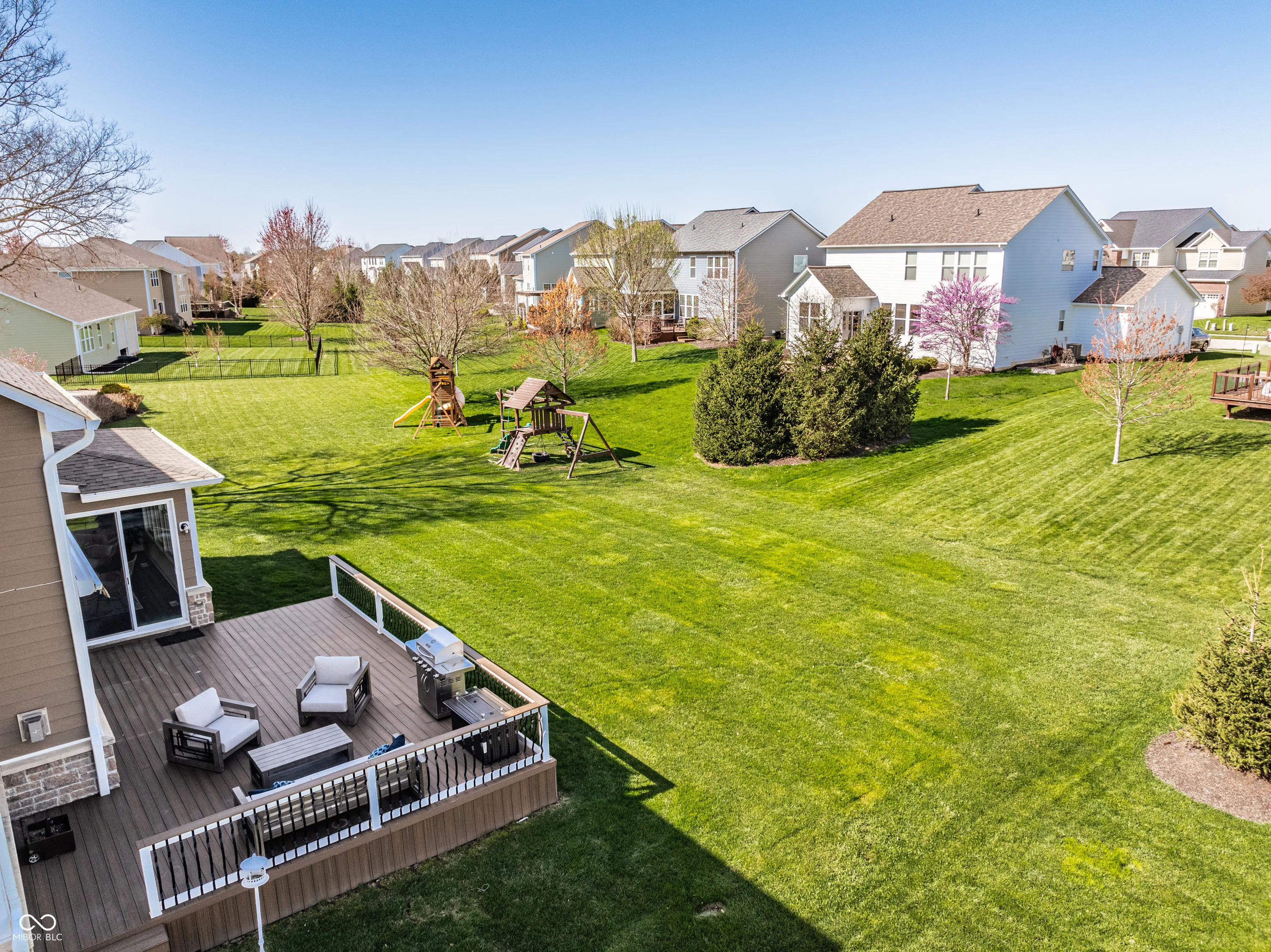 Better than brand new, this former model home in Westfield’s premier Viking Meadows community showcases the most desirable open-concept floor plan with 5 bedrooms, 5 full baths, and a sought-after main floor guest suite. Recently updated with fresh 2025 designer paint, custom carpet, and upgraded custom lighting, it features a soaring two-story great room with granite-surround fireplace, a bright sunroom, and an extended Trex deck with remote-controlled awning. The gourmet kitchen offers granite countertops, upgraded cabinetry, and premium appliances including a Bosch cooktop and 2024 KitchenAid wall oven, while the luxurious primary suite upstairs boasts dual walk-in closets, a jetted tub, and tiled shower. The finished daylight basement is ideal for entertaining, complete with a home theater, Polk surround sound, 100″ screen, and Nuvo whole-home audio. With a 3-car garage and access to resort-style amenities – including a clubhouse with fitness center, pool, tennis and basketball courts, playground, and Monon Trail access – this move-in ready home combines elegance, comfort, and convenience in an unbeatable location near US-31 and within the award-winning Westfield Washington School District.