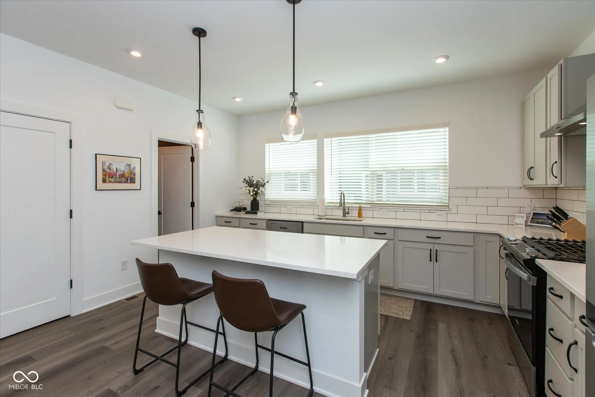 Immaculate, lovely townhouse in the Townes @ Kennedy-King by Onyx & East. This end unit was completed in 2023. There are three levels w/2BRS, 2 full baths and 2 half baths. Stairs lead up to the main living area where you’ll find a very bright, open concept w/ a chef’s kitchen, dining area and living room. Large center island w/quartz counters, breakfast bar. All Whirlpool kitchen appliances stay. Luxury vinyl plank flooring. Primary bedroom is on the uppermost floor w/a full bath, tiled shower & double sinks w/quartz counters and a walk-in closet. The open office area is next to a half bath w/ patio doors that leads to the cool 19×8 terrace w/storage. From the front door, two steps down into a flexible useage space, is the second bedroom and a full bath. 2 car attached and finished garage. Fenced front yard. Truly shows like a model. Street parking for guests right on College. Less than a half mile to the Monon. Close proximity to Bottleworks, Mass Ave shopping and restaurants and all things downtown Indy.