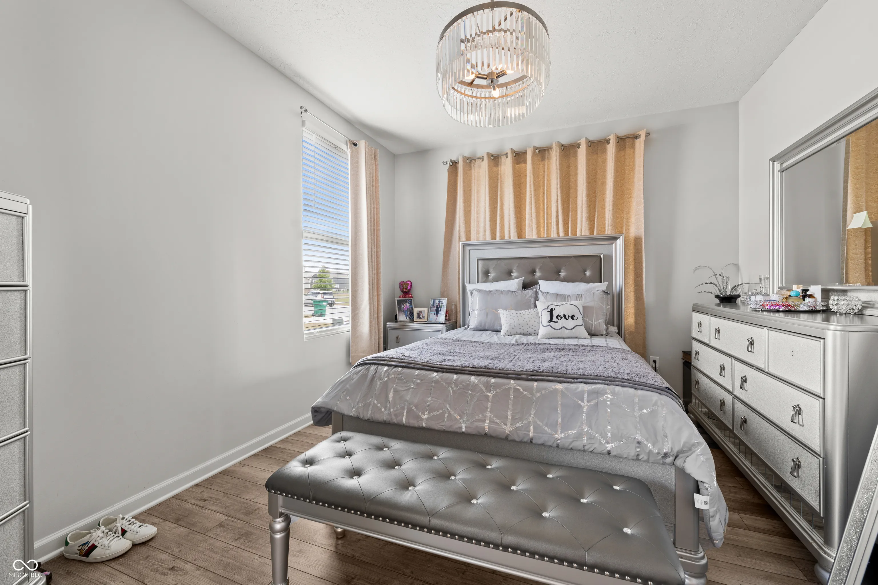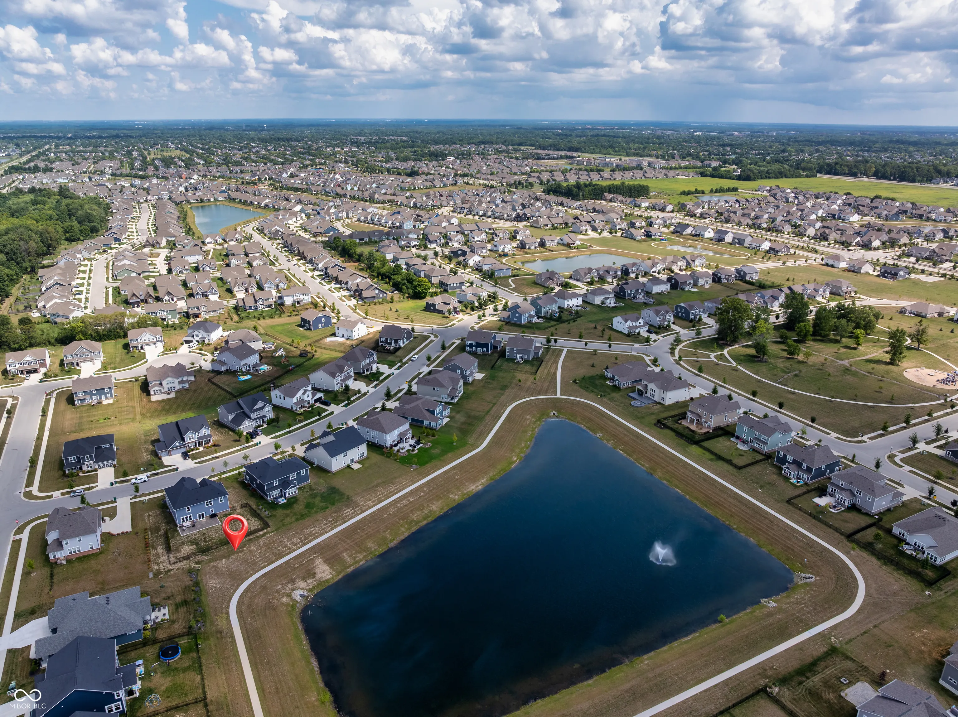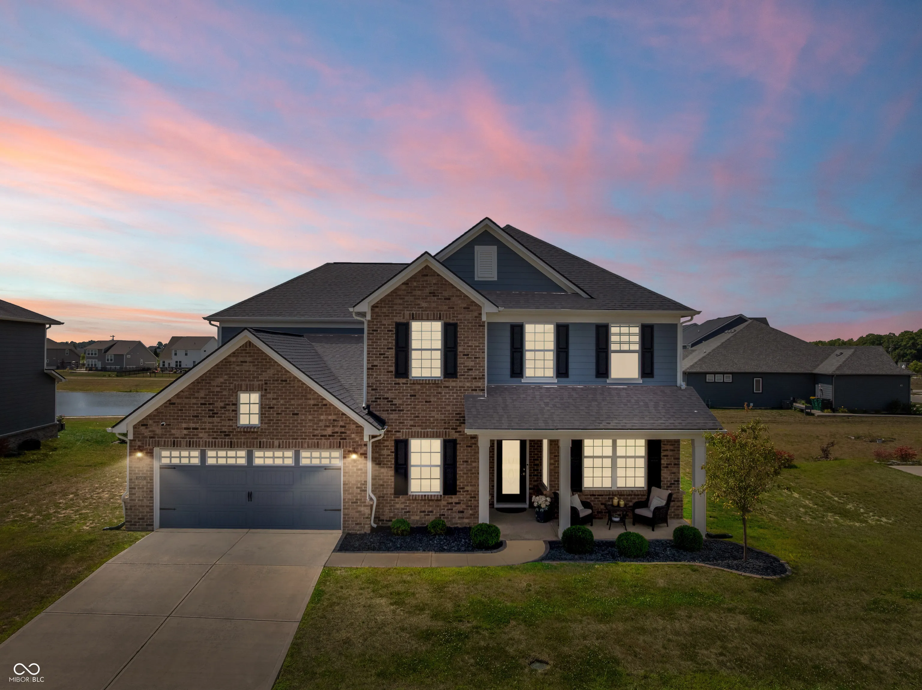 Built in 2022 by Pulte Homes in the desirable Westchester neighborhood of Westfield, this stunning 5-bedroom, 3-bath home offers modern elegance and thoughtful design throughout. Featuring a brick front elevation, covered porch with elegant entry, and a finished 2-car garage with bump-out storage, the home welcomes you with 9-ft ceilings, LVP flooring, and wall molding in the foyer. The open-concept layout boasts a corner gas fireplace, a main-level bedroom with private bath, and a gourmet kitchen with a huge quartz island, tile backsplash, double ovens, gas cooktop, tall cabinets, walk-in pantry, and stainless steel appliances. A mudroom with boot bench, wrought iron staircase, and planning center add functionality, while the spacious primary suite impresses with a tray ceiling, pond views, walk-in closet, and spa-like bath with double sinks and dual shower heads. Additional highlights include a large loft, laundry room with sink, washer/dryer, and granite-topped cabinets, plus a fully fenced backyard with an oversized brick patio overlooking the pond and walking trail. Community amenities include a clubhouse, making this home an exceptional find.