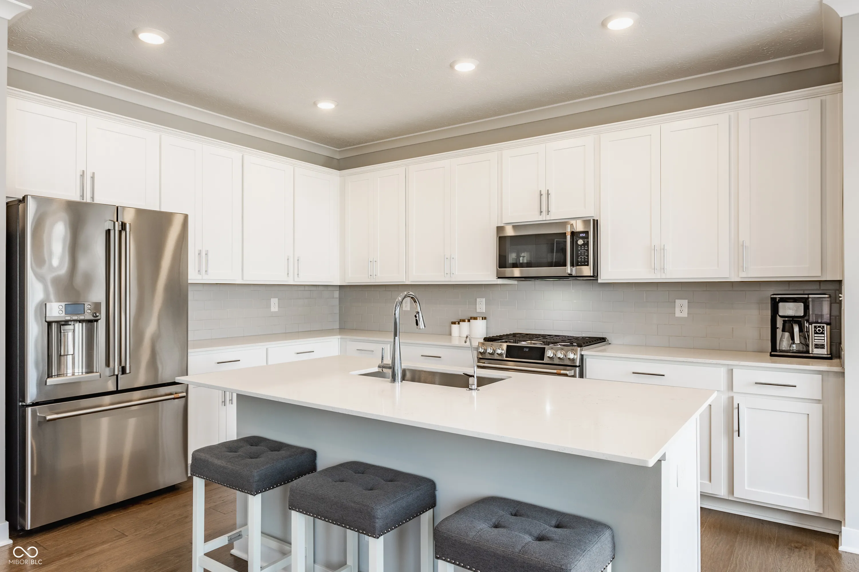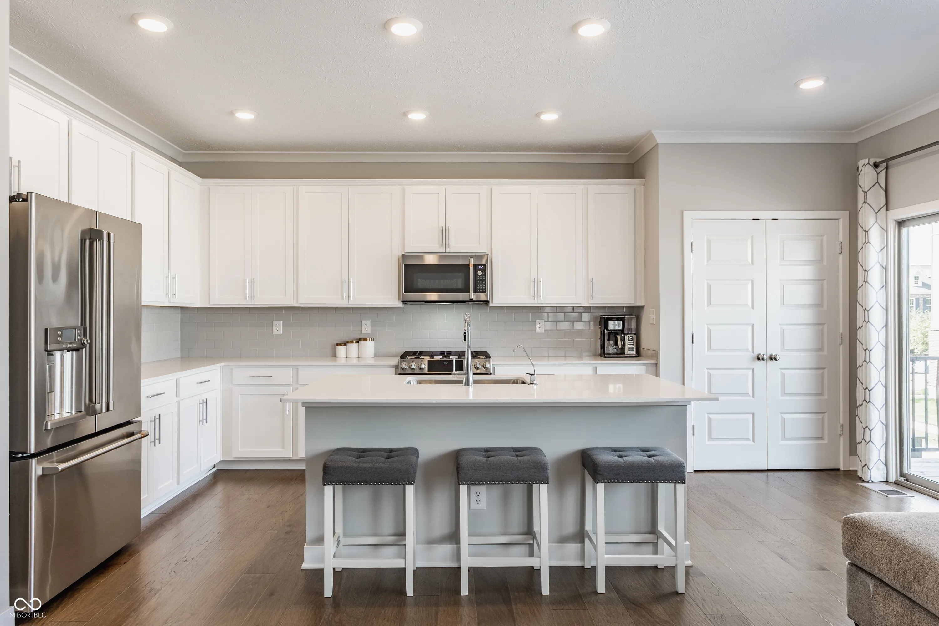 This light-filled END UNIT townhome, overlooking the park, has been meticulously maintained and is move-in ready. The gourmet kitchen features GE Cafe stainless steel appliances, quartz counters, and a spacious island. Enjoy engineered hardwood floors on the lower and main levels, a finished lower level with a wet bar and half bath, and smart home technology built-in throughout. Lawn care and snow removal included! Saxony is one of Fishers’ most sought-after communities, offering parks, playgrounds, scenic trails, and even Saxony Lake & Beach. Just minutes from I-69 and Hamilton Town Center’s shopping, dining, and nightlife. Experience luxury living at Saxony with this stunning Lennar townhome – welcome home!