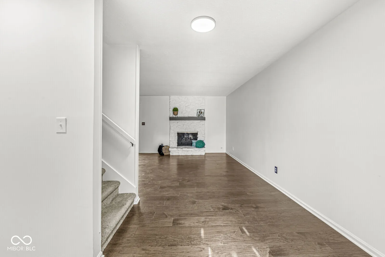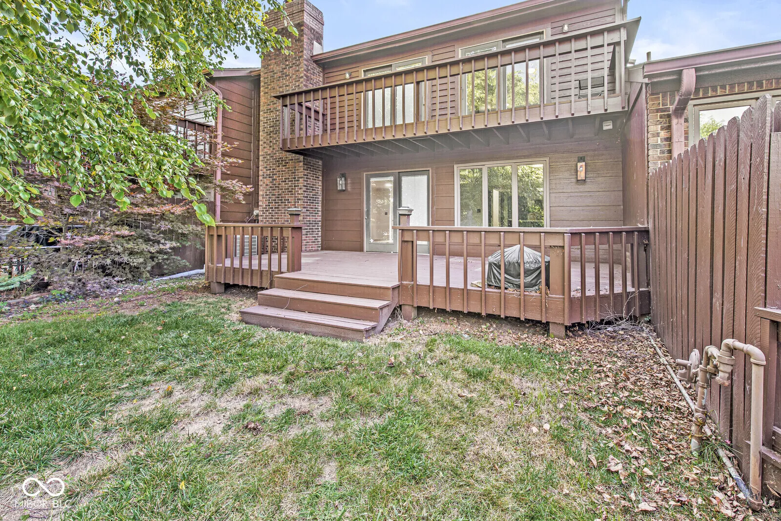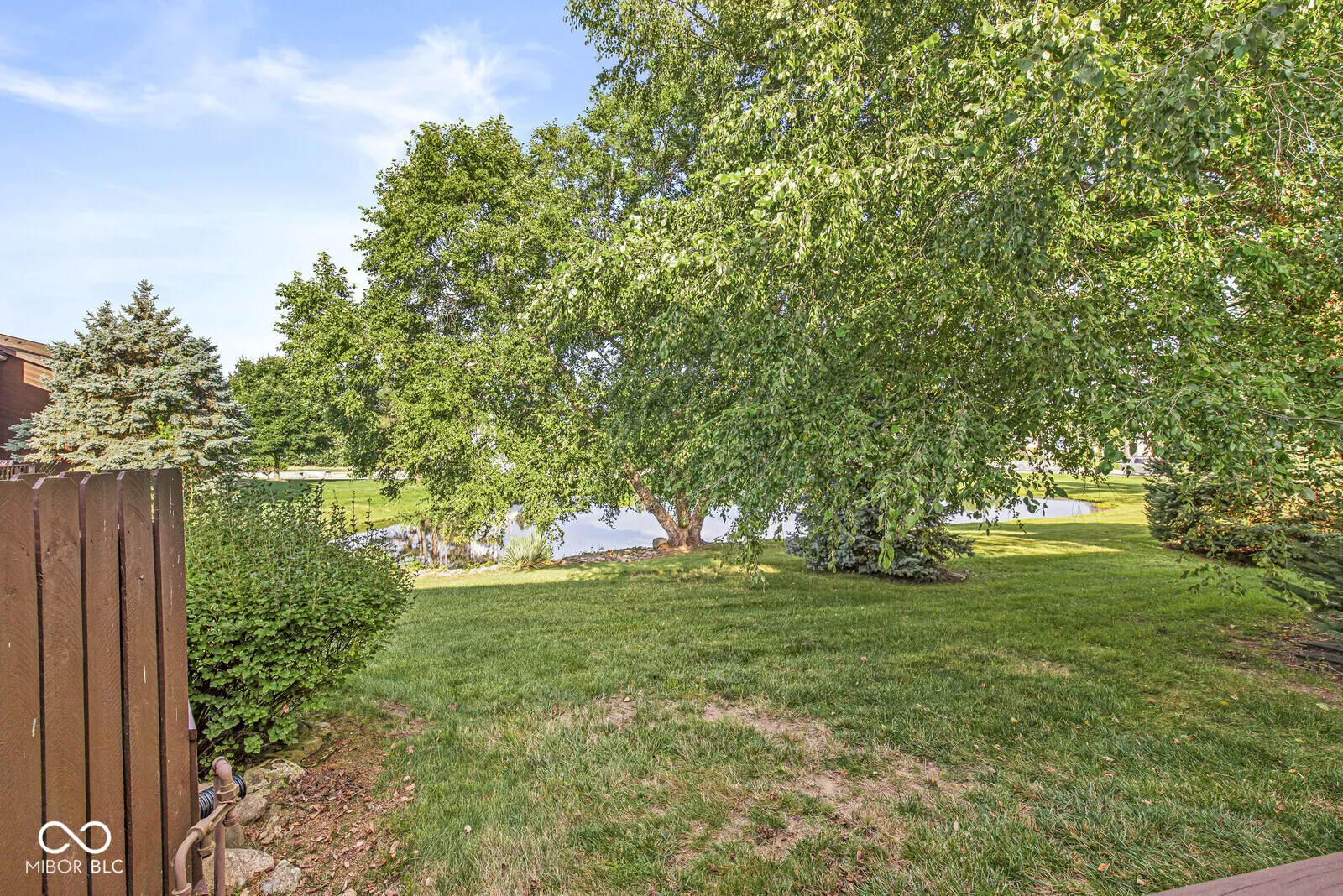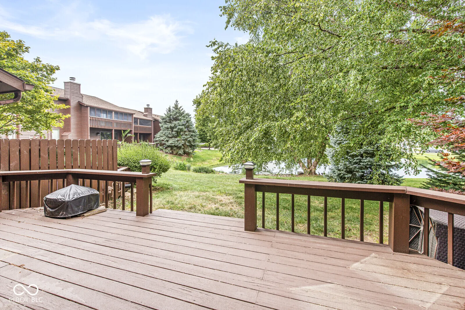 Move-in ready 3 bedroom, 2.5 bath townhome in The Trace with stunning pond and tree views! This updated home features engineered hardwood floors on the main level, with carpeted bedrooms upstairs, and a bright open floor plan. The spacious great room boasts a stone fireplace and flows into the updated kitchen with Corian countertops, tile backsplash, stainless steel appliances, breakfast bar, and breakfast room. Enjoy outdoor living on the large deck with peaceful water views. Upstairs, the primary suite offers a walk-in closet, updated bath with walk-in shower, and a balcony overlooking the pond. Two additional bedrooms share a full bath, plus a convenient upstairs laundry with gas & electric hookups. All baths have updated tile floors, mirrors, and vanities. Finished, insulated 2-car garage with attic storage. Includes all kitchen appliances and washer/dryer. HOA provides exterior building maintenance and lawn care for low-maintenance living. Located near to Valle Vista Golf Course with easy access to I-65, shopping, dining, and Greenwood Schools.