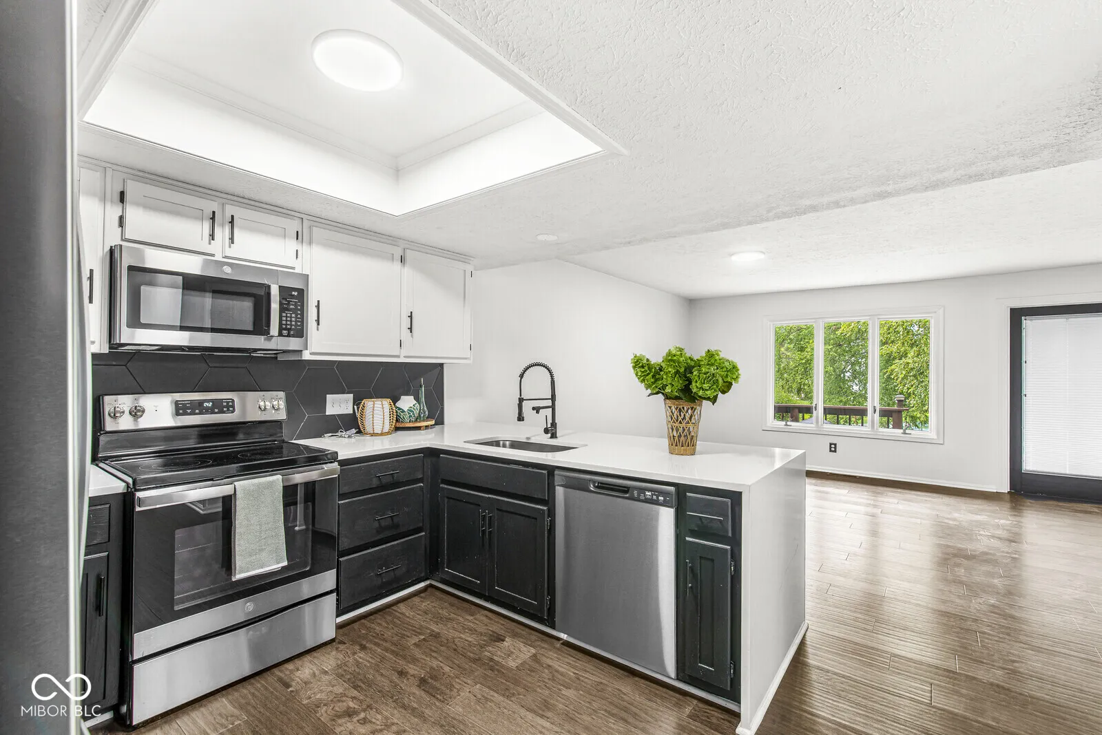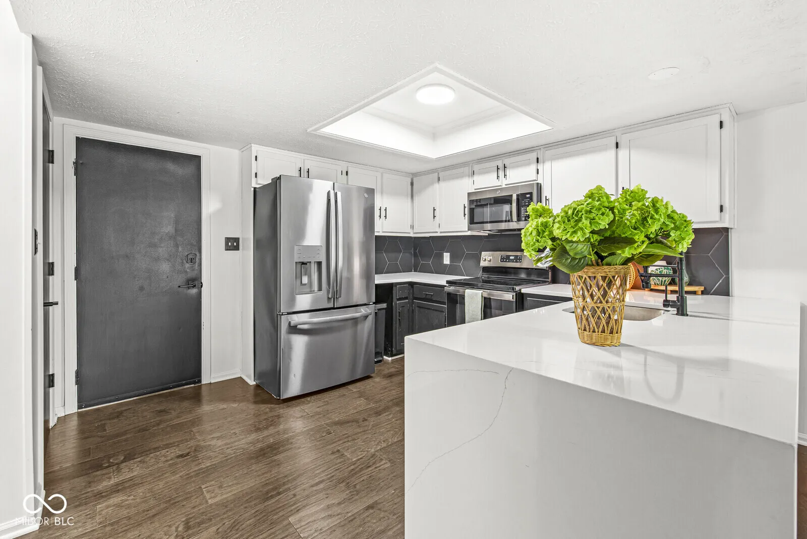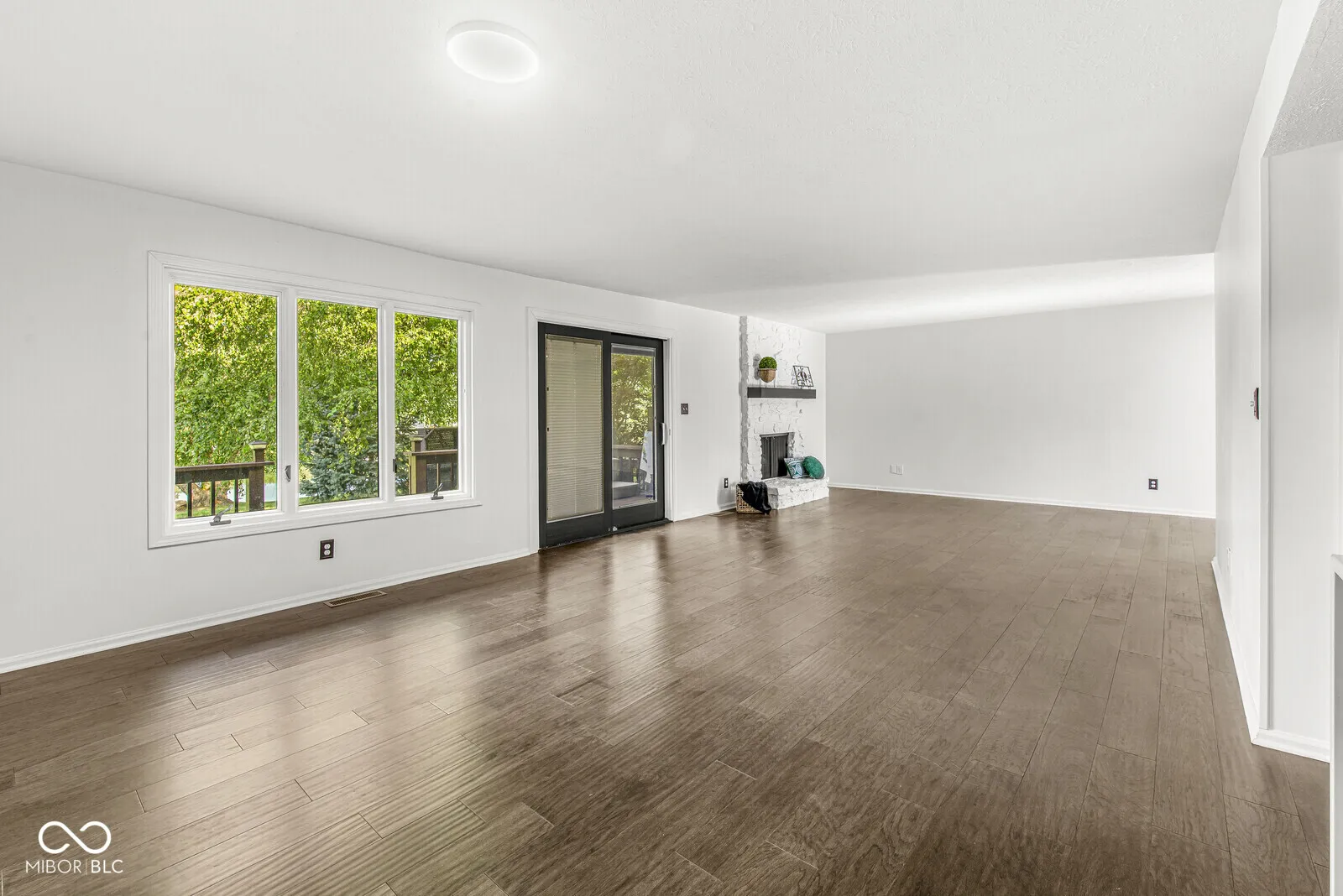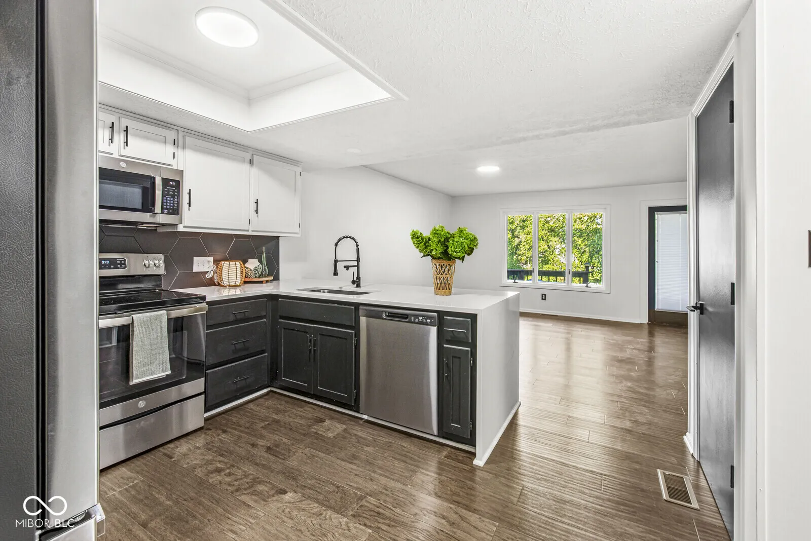 Move-in ready 3 bedroom, 2.5 bath townhome in The Trace with stunning pond and tree views! This updated home features engineered hardwood floors on the main level, with carpeted bedrooms upstairs, and a bright open floor plan. The spacious great room boasts a stone fireplace and flows into the updated kitchen with Corian countertops, tile backsplash, stainless steel appliances, breakfast bar, and breakfast room. Enjoy outdoor living on the large deck with peaceful water views. Upstairs, the primary suite offers a walk-in closet, updated bath with walk-in shower, and a balcony overlooking the pond. Two additional bedrooms share a full bath, plus a convenient upstairs laundry with gas & electric hookups. All baths have updated tile floors, mirrors, and vanities. Finished, insulated 2-car garage with attic storage. Includes all kitchen appliances and washer/dryer. HOA provides exterior building maintenance and lawn care for low-maintenance living. Located near to Valle Vista Golf Course with easy access to I-65, shopping, dining, and Greenwood Schools.