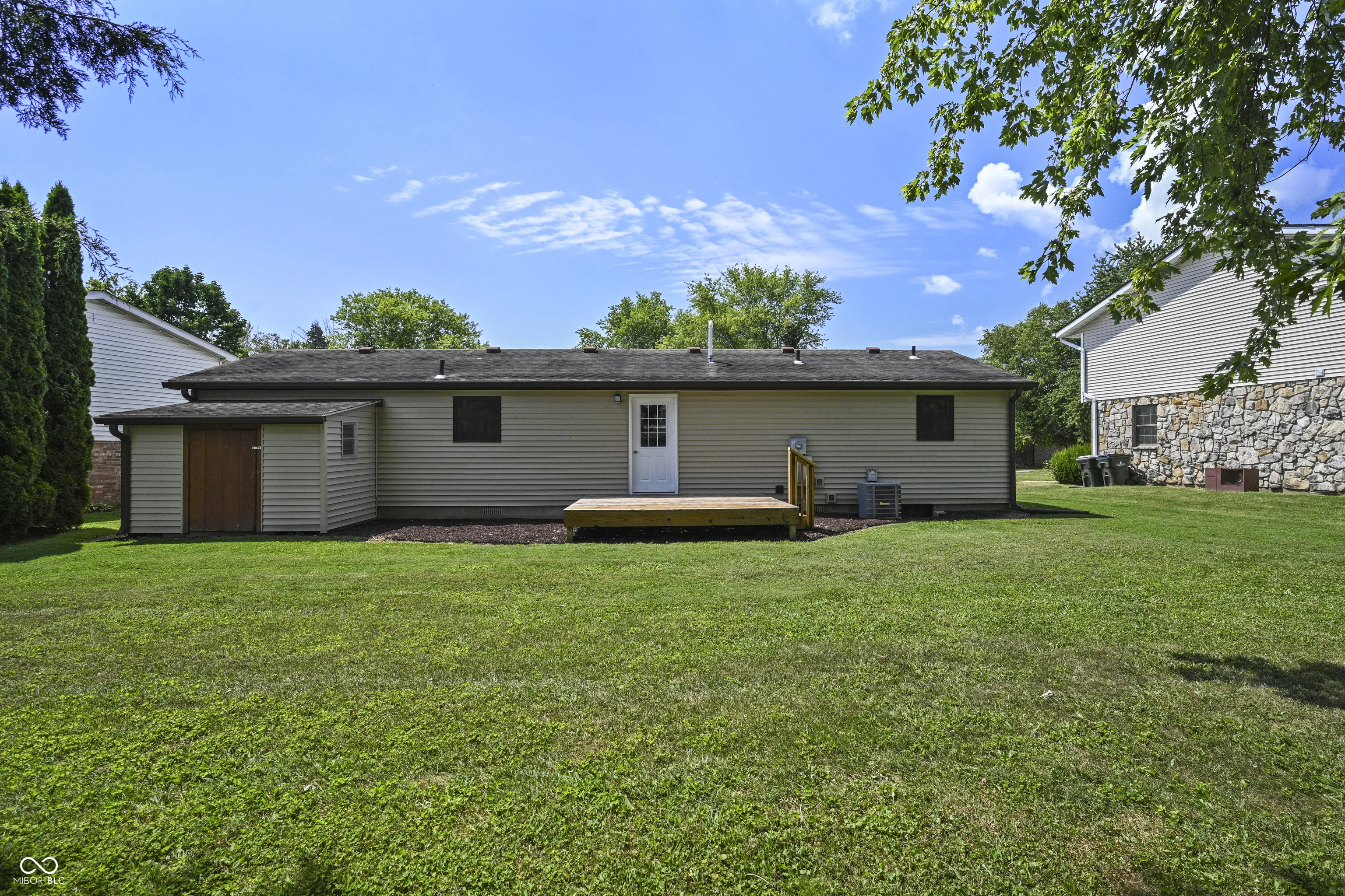 Step inside this 3-bedroom, 2-bath home that’s been fully renovated from top to bottom. Tucked away on a peaceful cul-de-sac, it greets you with a charming, oversized covered front deck, perfect for morning coffee or evening relaxation. Inside, you’ll find a spacious living room with cathedral ceilings, seamlessly connected to a versatile space ideal for a home office, craft area, or homework station. The bright, eat-in kitchen features brand-new cabinetry, breakfast bar, countertops, and stainless steel appliances, offering plenty of counter space for cooking and entertaining. The primary suite offers a walk-in closet, updated private suite bath, and firesafe storage. This home has been gutted to the studs and rebuilt with all-new drywall, insulation, siding, electrical panel, HVAC, hot water heater, light fixtures, vanities, showers, toilets, and flooring throughout. Enjoy the outdoors on the large back deck-perfect for grilling and gatherings. Take advantage of the spacious storage shed for all your tools and gear. This move-in ready home truly has is all-style, comfort, and peace of mind with brand-new everything.