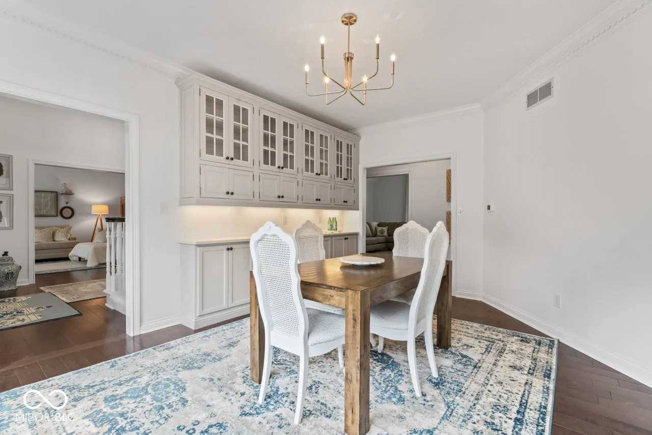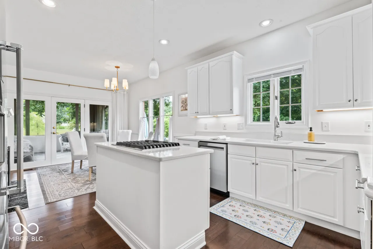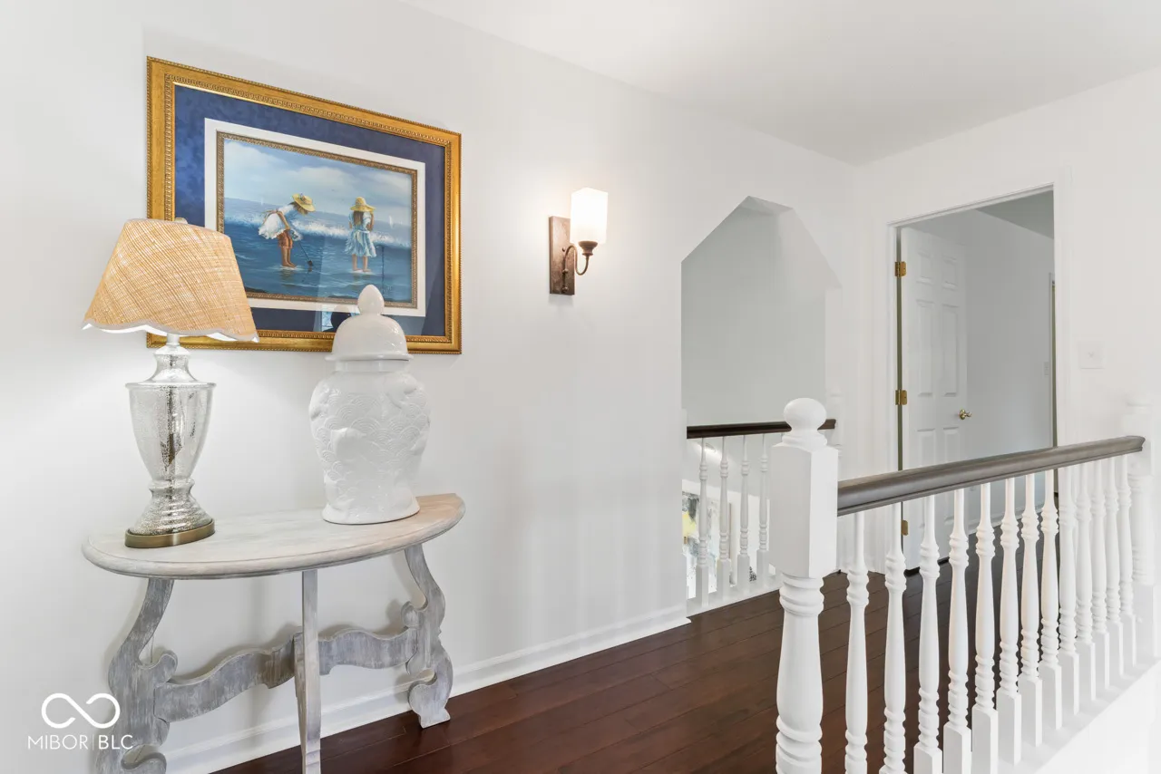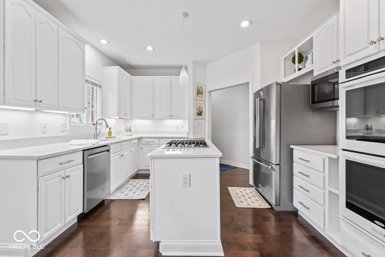 Nestled in Wellington Estates at 55 Ashbourne CIR, NOBLESVILLE, IN, this stunning single-family residence is in move-in ready condition and ready to welcome its new owner. The heart of this home resides in its kitchen, a culinary enthusiast’s dream, featuring a large kitchen island with inserted stovetop, and a double oven for preparing feasts, all complemented by elegant quartz countertops. The main level primary bedroom serves as a serene retreat, enhanced with sophisticated crown molding. The spa like primary bathroom is appointed with a double vanity, a walk-in shower, large walk-in closet and a soaking tub. The living room features a fireplace, a vaulted ceiling, and view out on to the expansive back yard. The dining area features shaker cabinets with quartz top and under cabinet lighting. This property boasts a variety of spaces designed for relaxation and entertainment, including a porch, a deck, a sunroom, an outdoor dining area, and a stone patio. The practical yet elegant laundry room ensures everyday tasks are managed with ease, and the two pantries offer generous storage. With 3,350 square feet of living area set upon a 14810 square feet lot, this residence, built in 1989, offers a perfect blend of elegant comfort and classic style in desirable Hamilton County.