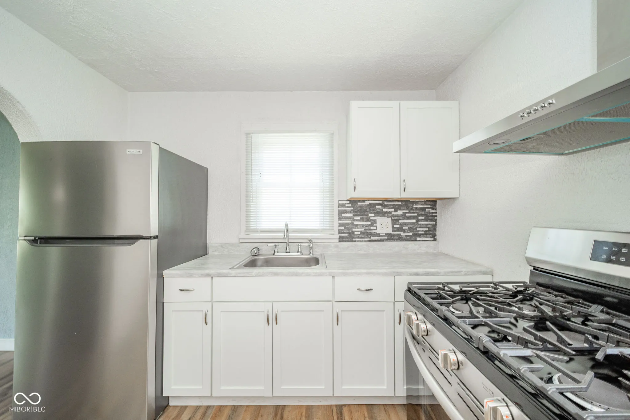 Quaint east side charmer is ready for you to move in! Spacious living room. Kitchen with shaker cabinets, tile backsplash, and stainless steel appliances. The property includes a front deck and rear patio, perfect for enjoying the outdoors. A fenced backyard provides a private space for relaxation and recreation. One car detached garage. Newer roof. Full basement including washer and dryer hookups.