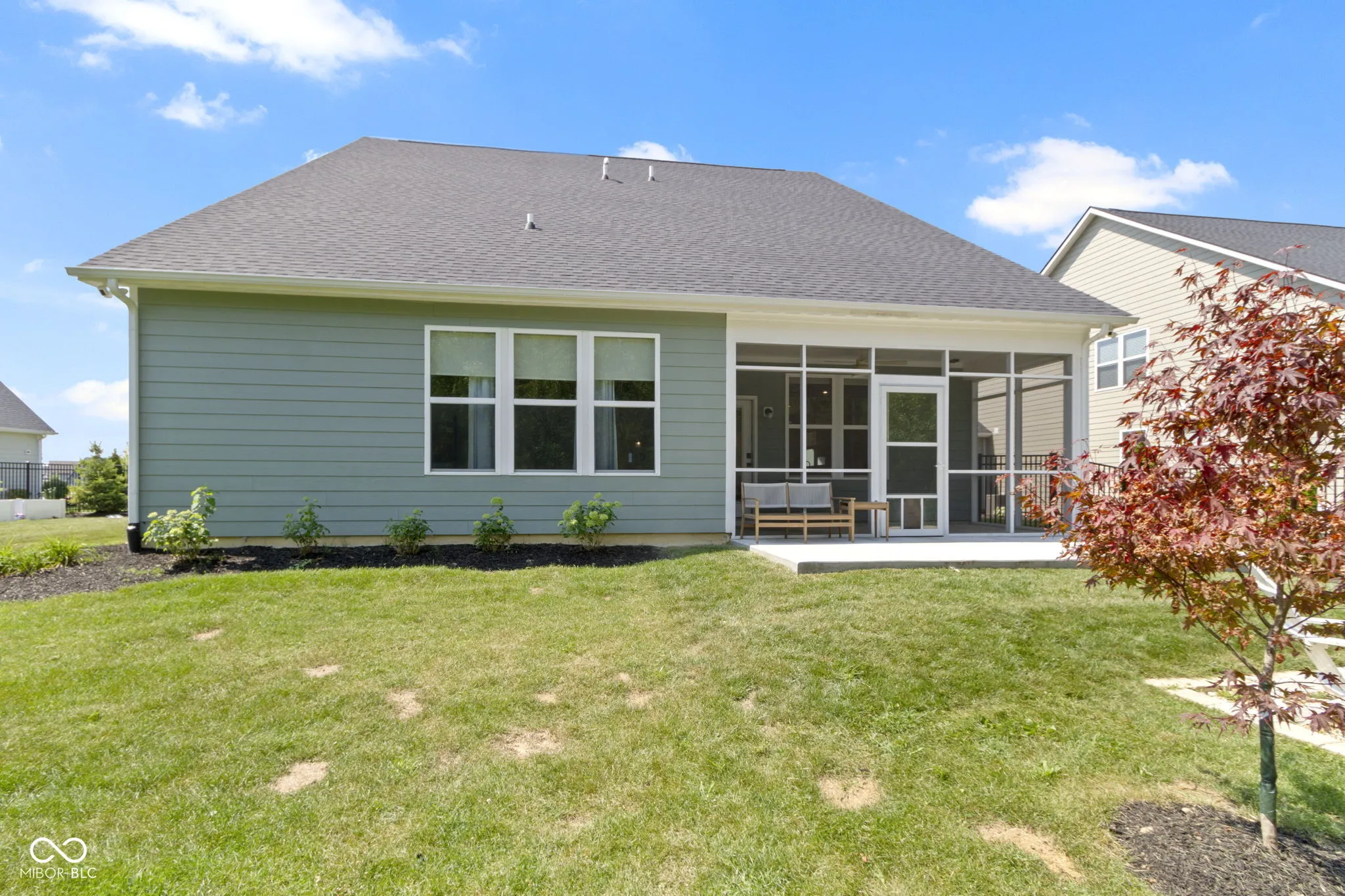 Welcome to 14940 Tiago Lane- an immaculately maintained and updated home in the beautiful gated community of Mill Ridge Farms. Built in 2022, this 3-bed, 3-bath home, featuring a versatile loft and 3-car garage offers a new home feeling with custom upgrades. Step inside to find beautiful painted French doors that open to a front office. The open-concept living area is designed for both comfort and functionality, with a stunning two-toned kitchen that boasts a large island, a striking custom zellige backsplash, contemporary lighting, and an adjoining serving pantry perfect for entertaining. Relax by the fireplace that includes a custom mantle and updated wainscoting accent wall. The main-level primary bedroom has updated limewashed walls and a custom-designed closet. The ensuite bathroom features a double vanity and impressive shower. Also on the main level, a secondary bedroom showcases custom wallpaper, blackout shades, and an upgraded closet-perfect for guests or family. Upstairs, you will find a spacious third bedroom, a full bath, and an incredible loft area that boasts an impressive movie theater system with projector and screen. Step outside to a beautifully enhanced outdoor living space featuring a screened-in porch that opens to an extended patio-perfect for entertaining. Professional landscaping includes a variety of over 55 perennial plantings, with strategically placed privacy trees to the side of the firepit to create a serene atmosphere. The backyard is enclosed with a 5-foot commercial-grade aluminum fence, and a front-yard irrigation system. Additional upgrades include two buried downspouts and a rain barrel attached to the house. The HOA includes access to Brooks Park Neighborhood amenities of a pool, clubhouse, playground and outdoor basketball court. Situated in a prime location, this home is just minutes from the scenic Geist Reservoir, Fishers Waterfront Park, HTC, and The Fishers District, with accessible trails right at your doorstep.