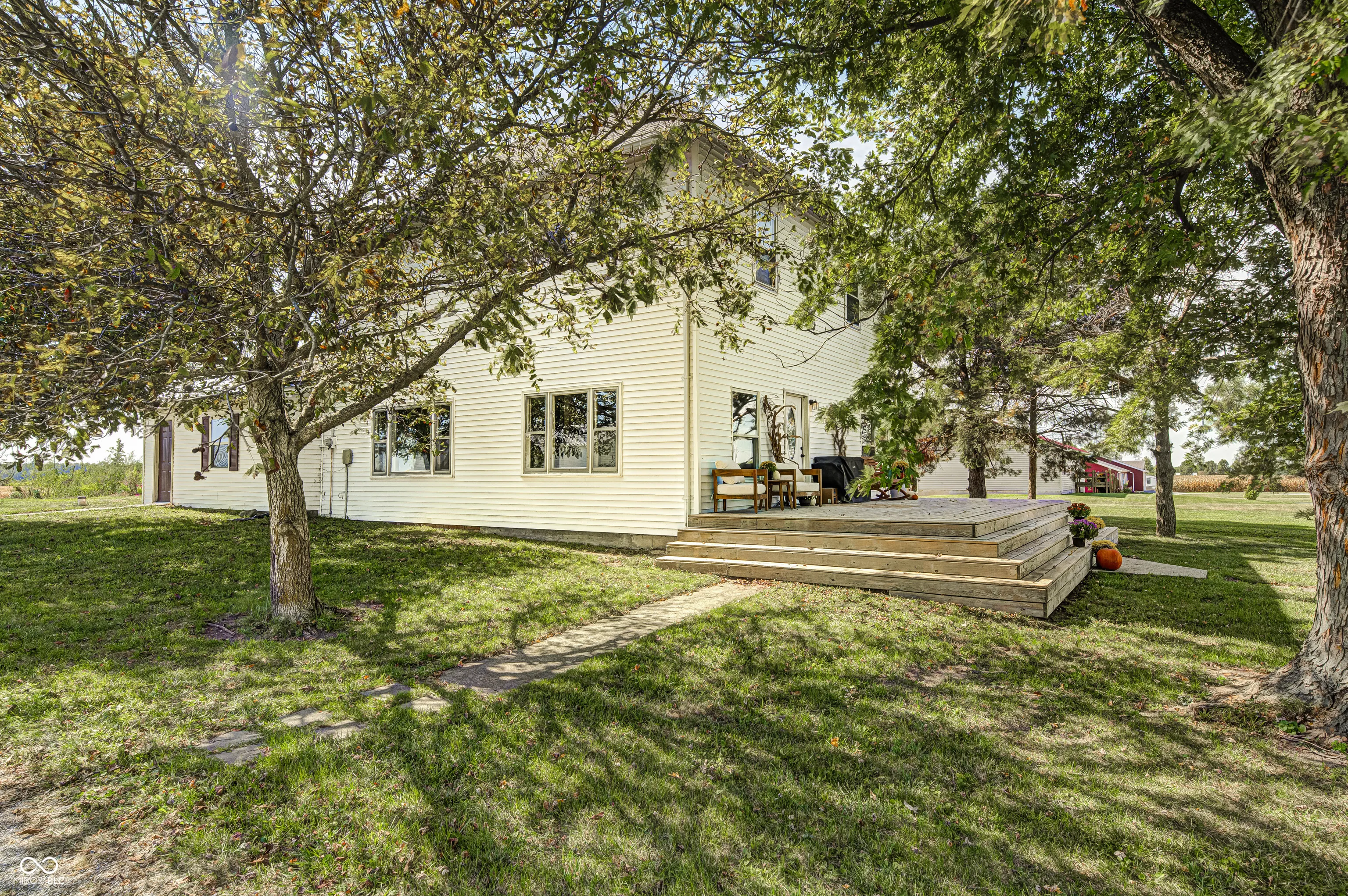 PRICE IMPROVEMENT!! Experience the best of country living in this beautifully updated and well-maintained turn-of-the-century home, perfectly situated on 2 acres with mature apple and pear trees. Only 30 minutes from downtown Indianapolis and 15 minutes to Greenfield. This property offers space, charm, and functionality both inside and out. Relax on the large front deck while taking in the natural surroundings, or step inside to find a thoughtfully renovated kitchen and a stunning stone hearth with a wood-burning stove that creates a warm centerpiece in the dining room. The oversized mudroom and laundry room provide practical convenience, making everyday living simple and organized. Upstairs, you’ll find three spacious bedrooms along with a versatile loft-ideal as a playroom, home office, or an extra spot to unwind. Additional unfinished attic space could be turned into your dream bathroom overlooking the scenic farmlands and your very own homestead garden. Outside, the detached garage and cattle barn offer abundant storage for hobbies, equipment, or livestock. Car enthusiasts will especially appreciate the garage, wired with 400 amp service. Outlets for both an air compressor and a welder. Tall ceilings able to accommodate car lifts. This more than a home-it’s a true country retreat designed for comfort, recreation, and enjoying the outdoors.