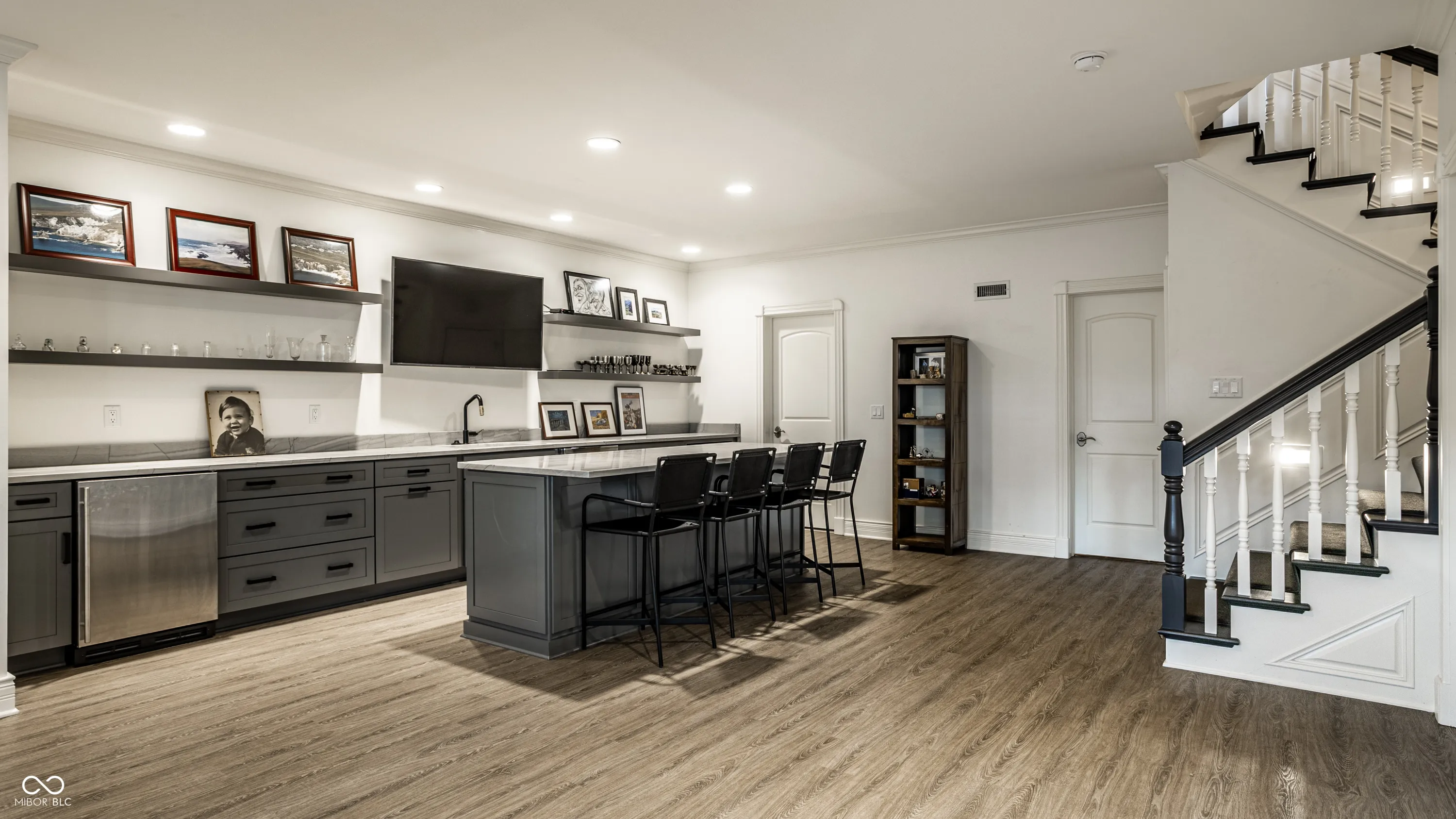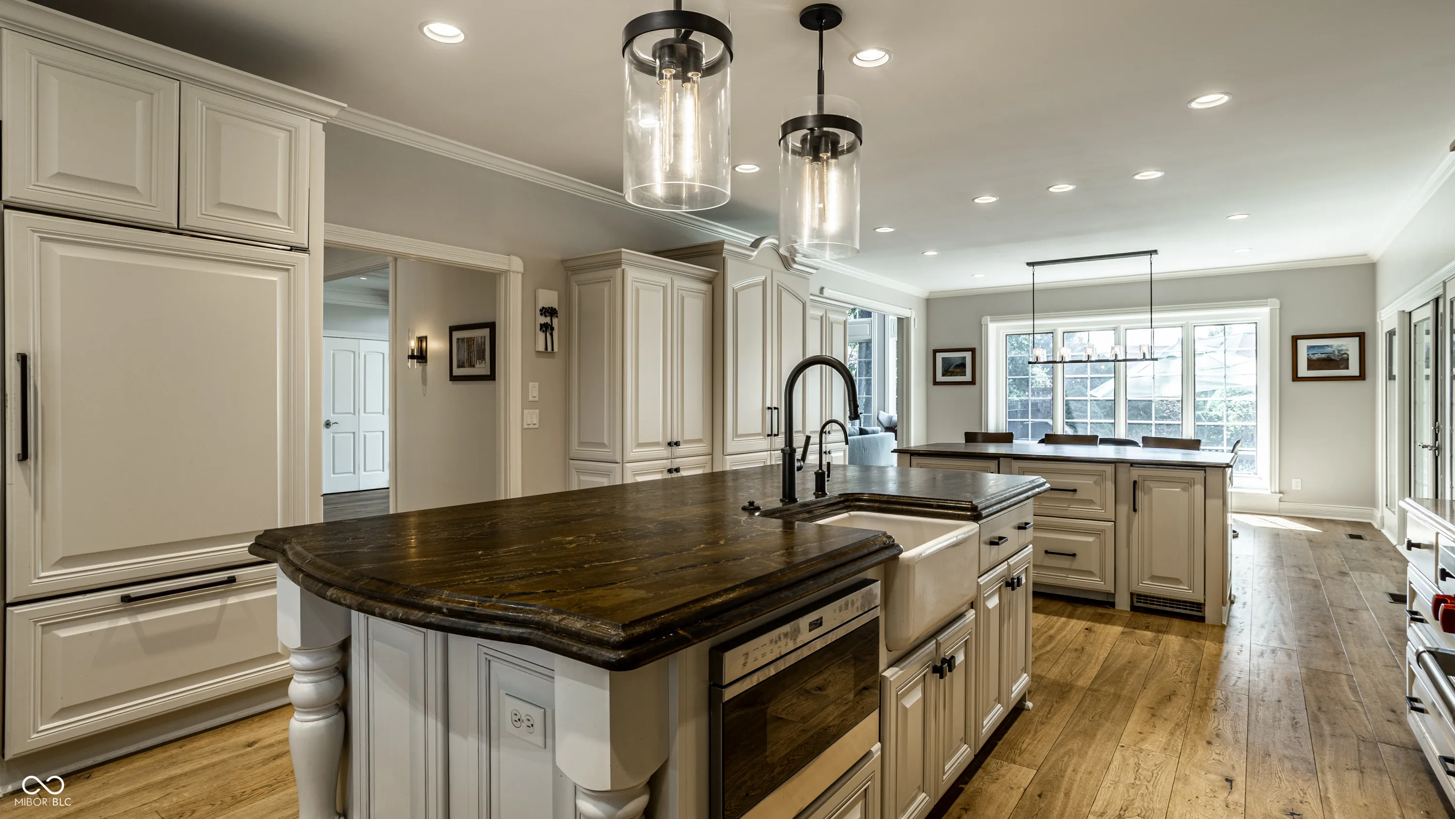 Set amidst the peaceful surroundings of the gated Laurelwood community in Carmel, this distinguished residence exemplifies elegant living. Offering over 6000 square feet, the home is thoughtfully designed to provide comfort, privacy, and everyday ease. The all-brick exterior and manicured landscape give way to a thoughtful interior, lovingly updated to appeal to today’s discerning buyers. Warm, wide plank hardwoods grace much of the 4000 square foot main level. The home is fitted with expansive windows creating beautiful vistas and flooding each space with natural light. The large living room and great room are extraordinary spaces, each set with a gas fireplace and a comfortable flow. The two-story great room is further enhanced by a tucked-away wet bar, ceiling-high windows, and access to the beautiful rear patio. The expansive kitchen is a chef’s dream – whether preparing a quick weeknight dinner or holiday feast – the integrated Sub-Zero refrigerator, two refrigerator drawers, Wolf gas range, Miele dishwasher, dual islands, and dual sinks will help you prepare with ease. While entertaining is easy here, relaxing is too in the main floor primary suite with its tucked-away location, luxe ensuite bathroom, and dual closets. Further tranquility is available in the private rear yard with pool, patio, and ample green space. The upper level is host to three large bedrooms each with ensuite bathrooms and walk-in closets. A finished lower level provides more fun with a family room, rec room with a full bar, and wine cellar. This extraordinary Carmel home offers a rare combination of generous scale and timeless charm.