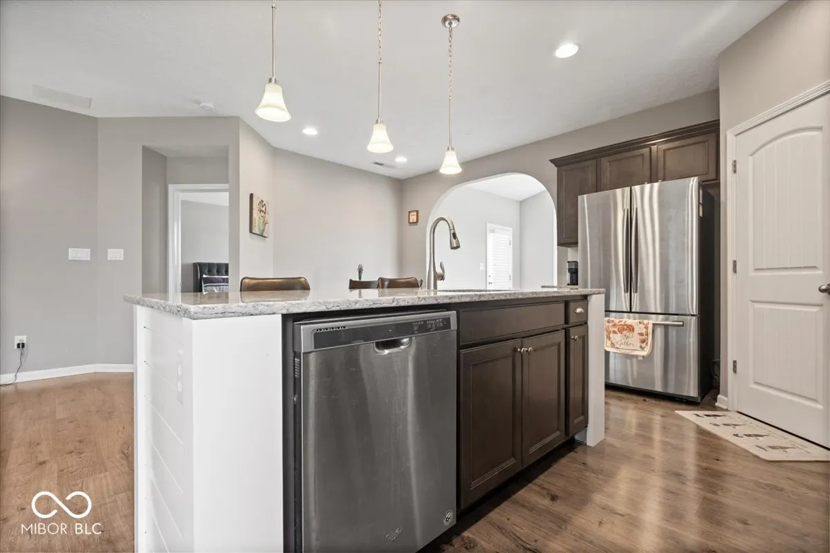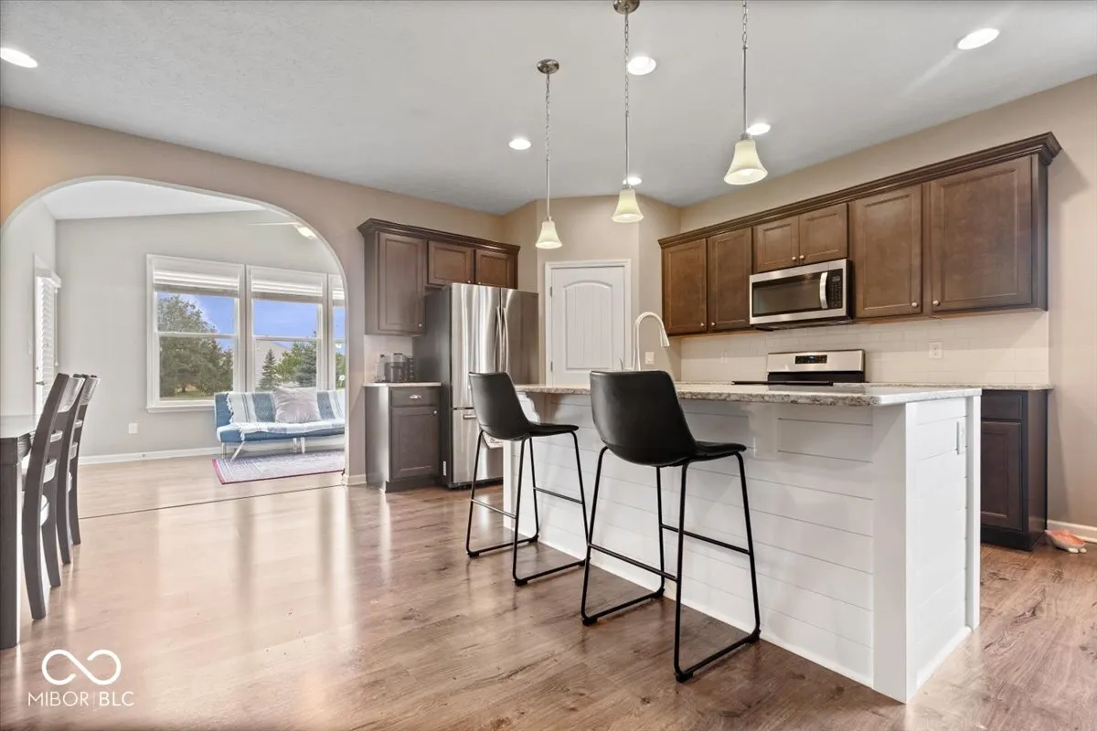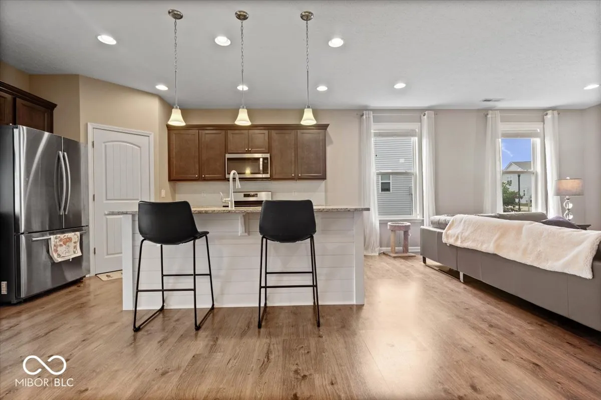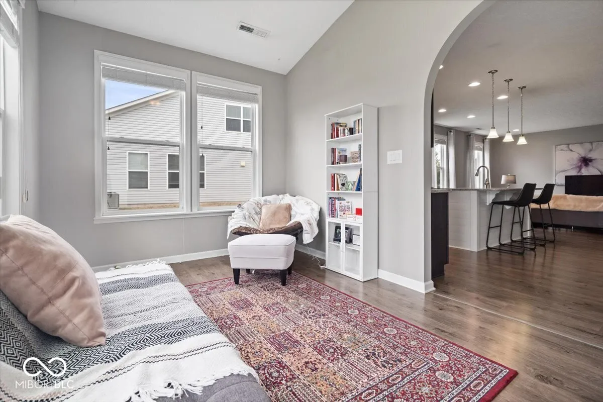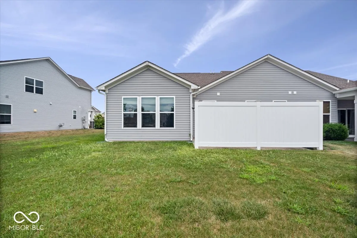 Welcome home to this spacious 1 level, 2 bedroom/2 bath attached villa in popular Walker Farms! With over 1,700 sq ft of living space, this home has been impeccably maintained by its original owner and offers the perfect blend of comfort and convenience. Step inside to a wide open floor plan enhanced by graceful arched doorways that create a seamless flow between living spaces while adding timeless architectural charm. The large great room is open to the kitchen which offers a large center island, quartz countertops, stainless steel appliances, gas oven/range, walk-in pantry, plenty of storage and a dining area. The split bedroom layout ensures privacy, with the primary suite featuring a large, tiled walk-in shower, double comfort-height vanity, and both linen and walk-in closets. 2nd full bath with tub/shower combo. Separate laundry room with utility sink. A bright sunroom offers extra living space with vaulted ceiling and tons of windows allowing tons of natural light and opens to a private patio with a surrounding fence-perfect for relaxing outdoors. Neutral paint throughout makes it move-in ready! New water heater-2025. You’ll love the location-steps from the brand new Hussey-Mayfield Library and just a short stroll or bike ride to local favorites like LA Cafe, Moontown Brewery, Hattie’s Coffee and Main Street Park which offers a weekly Farmer’s Market, Friday concert’s and splash pad in the summer and sledding hill in the winter! Just a few miles from I 65, restaurants and shopping! Enjoy the small-town charm of fast-growing Whitestown with all the modern conveniences nearby!