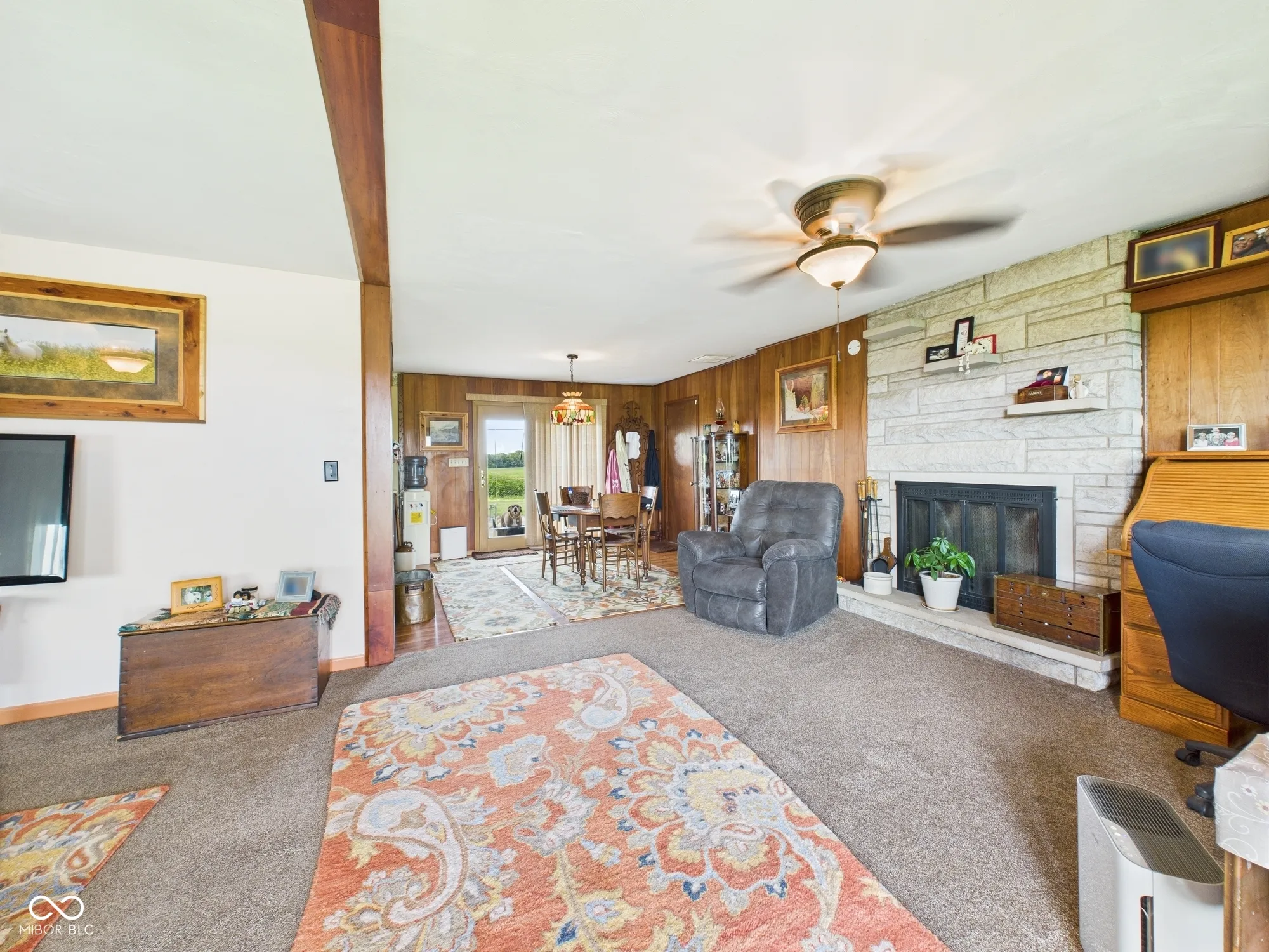 Get ready for scenic country views with beautiful 3bd/1.5ba Bedford Stone home that sits on a little over an acre! Located at 1226 E. 600N this single-family residence offers an inviting home, ready to move in and begin creating lasting memories. The living room presents a warm and comforting atmosphere, enhanced by the wood wall and the wood burning fireplace, perfect for cozy evenings and relaxed gatherings. The great room offers open views into the dining area, and the dining area is open to the kitchen. You get the “openness” but it still allows for some separation in the floorplan. The primary bedroom has an attached half bath, and also leads through to the laundry and kitchen for added convenience. Enjoy the outdoors relaxing on the patio, have a fire, or unwind and take in the scenery in the hot tub that conveys with the property. Recent updates include windows ’23, furnace and A/C unit ’22, gutters ’21, and new well 2017. The 37×22 detached garage is a hobbyists dream with multiple uses and endless possibilities. It also includes gas heater, window unit A/C, and water and electric. Enjoy living in the rural setting of the country but you still have quick access to I-69, Muncie, Alexandria, Frankton, and Anderson. This home combines classic charm with modern convenience, come see it today!