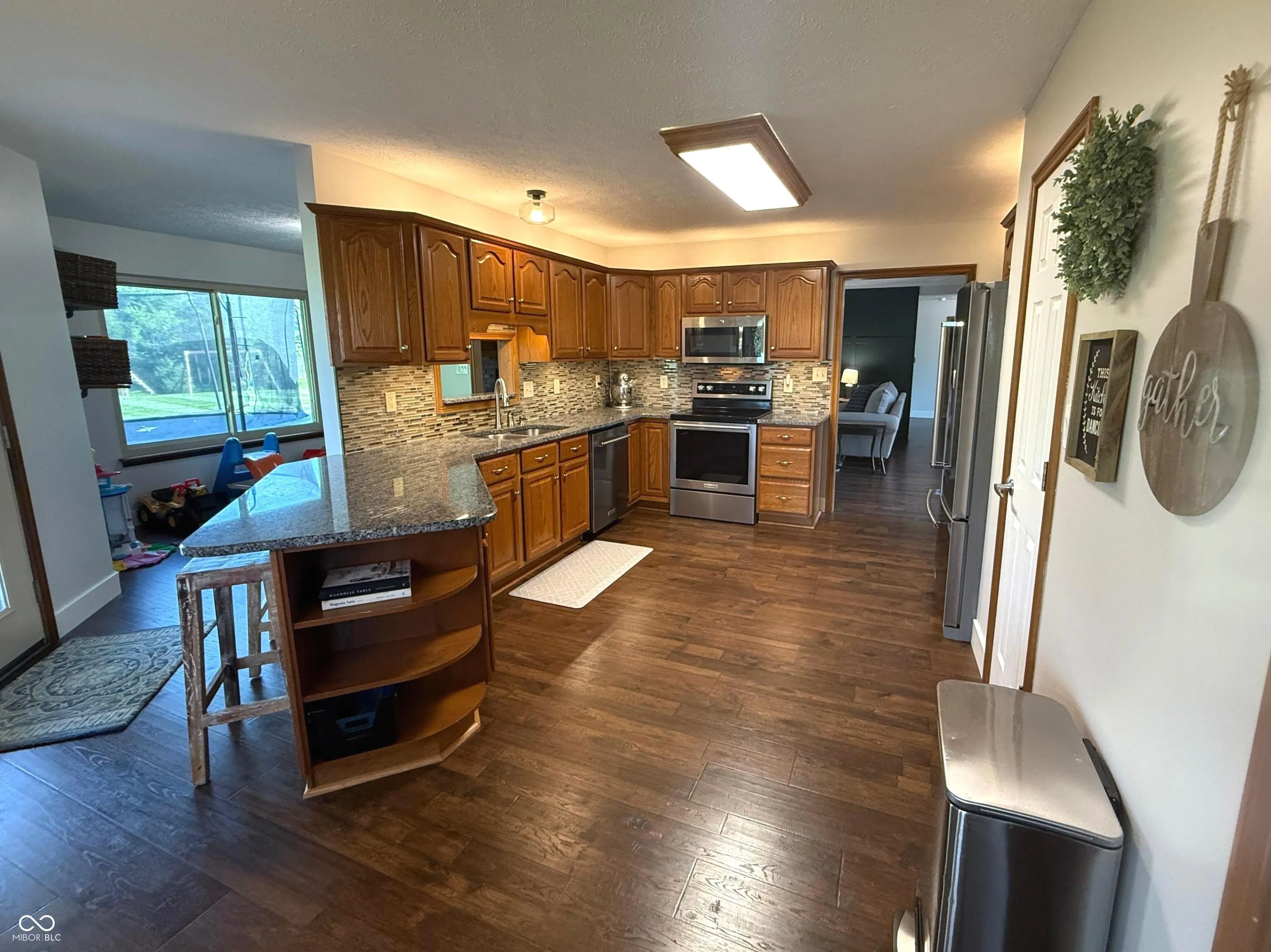 Discover this beautifully updated home in sought-after Countryside subdivision of New Palestine w/ 4 star schools. With almost 2500 sq’ of thoughtfully designed space, this home features 3 bedrooms and 3 full bathrooms. Upstairs you’ll find a Bonus room, 1 full bath, a walk-in closet, skylight & kitchenette. You can make this space fit your family’s needs. * On the 1st floor, you’ll find new laminate hardwood flooring throughout, painted new wide baseboards and a cozy gas fireplace in the great room. The lovely kitchen is equipped with new appliances, granite counters, tile backsplash, pantry and room for you to enjoy meals together. The “Rec/Play” room is being used for the kids toys but could be a separate dining room, an office, or a sitting room looking out to the beautiful backyard. Set on a sprawling one-acre lot, the property dazzles with new landscaping and ample outdoor space for gatherings including 2 covered porches. HVAC – 2022 / ROOF, GUTTERS & SKYLIGHT WINDOW -2022 / REFRIGERATOR 2025 / OVEN & DISHWASHER 2024 / NEW LAMINATE HARDWOOD FLOORS 2024 / STORM ENTRY DOOR & WINDOW 2024 / WELL PRESSURE TANK 2023 / NEW LANDSCAPE ROCKS & PLANTS 2024 / DRIVEWAY EXTENSION 2022 **SEE ATTACHED LIST FOR UPDATES, & MORE INFORMATION