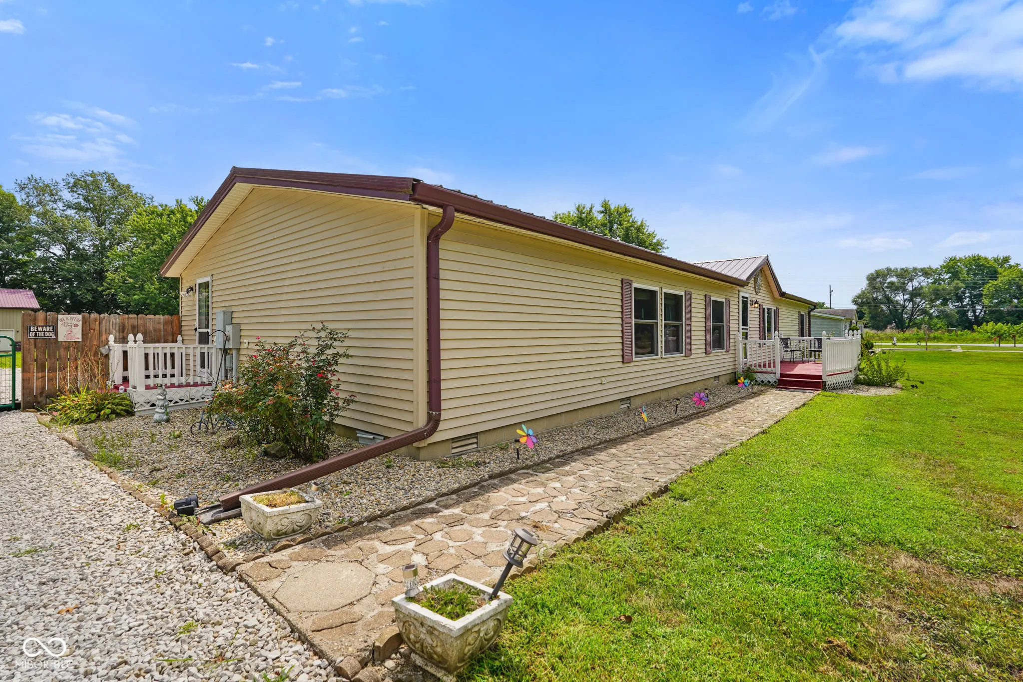 This property offers a unique opportunity to embrace a relaxed lifestyle in a serene setting. The manufactured home presents with a metal roof and ready to be shaped into your personal haven. With 4 bedrooms, 2 full bathrooms and 1 half bathroom this well-maintained residence provides plentiful space for convenience and comfort for daily routines and rest/rejuvenation. These features ensure that mornings are smooth and stress-free, and evenings offer a tranquil space for relaxation and self-care. Spanning 2052 square feet of living area, the home provides a comfortable and inviting atmosphere for both relaxation and entertainment. The layout encourages a seamless integration of living spaces, fostering a sense of togetherness while still providing ample room for individual pursuits inside and outside. Situated on a generous 0.95 acre lot and offers abundant outdoor space for recreation, with the above ground pool, gazebo, and fire pit. There is room to garden, have chickens and so much more within the wood privacy fenced backyard area. The large detached, finished pole barn has 2 16-foot doors for easy vehicle access and workshop area with utilities connected. Built in 2002, this one-story home offers the ease and convenience of single-level living. Envision a lifestyle where daily tasks are simplified, and every area of the home is easily accessible, creating a comfortable and practical living environment.