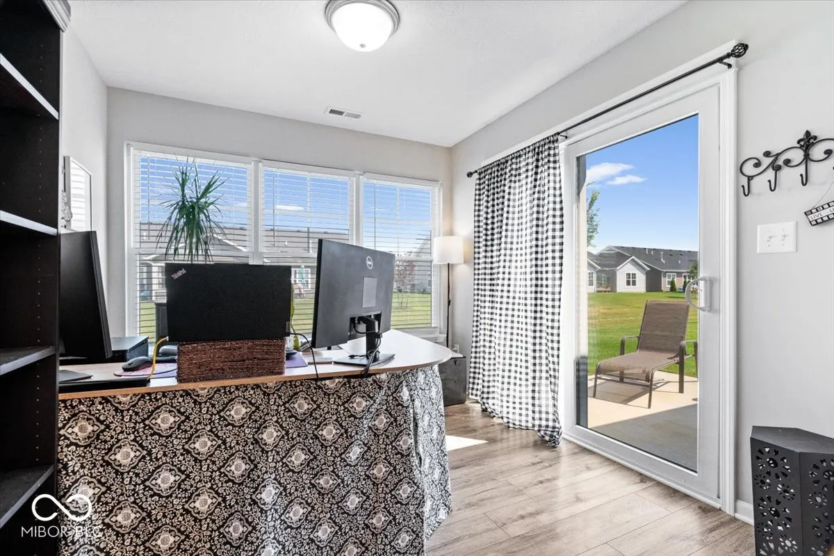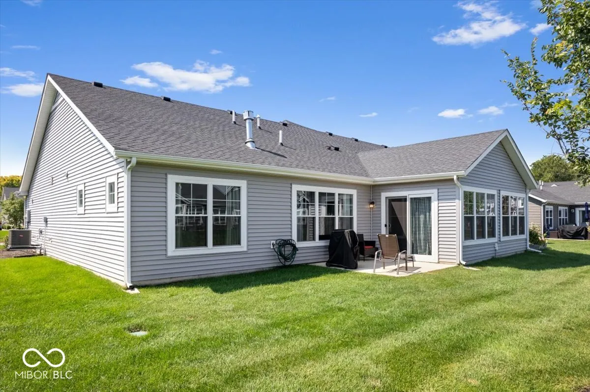 Welcome home to this like new, low maintenance paired home located in Lindley Run! Spend your time relaxing while your lawn is mowed by the HOA with irrigation system and snow removal included! Step into the heart of the residence, where an open floor plan creates a sense of spaciousness and connection, leading you into the great room, where a fireplace awaits to provide warmth and a comforting ambiance. The kitchen features a large center island, granite countertops, pantry and lots of cabinets and counter space. You will find a breakfast nook situated between the kitchen and the sunroom. This home is bathed in tons of natural light! The primary bedroom serves as a private retreat, complete with an ensuite bathroom, providing a sanctuary for relaxation and rejuvenation. Within the ensuite bathroom, discover the luxury of a double vanity and a walk in shower and large walk-in closet. The split floor plan offers a second bedroom and full bath. The patio off of the sunroom provides an outdoor space for relaxation and entertainment. Home offers extra green space found between homes not found in other properties. Lots of green space behind the home as well. This home offers a blend of modern living and comfortable design. The fabulous community offers walking trails, pool, clubhouse, playground, pond and community firepit! Schedule your showing today!