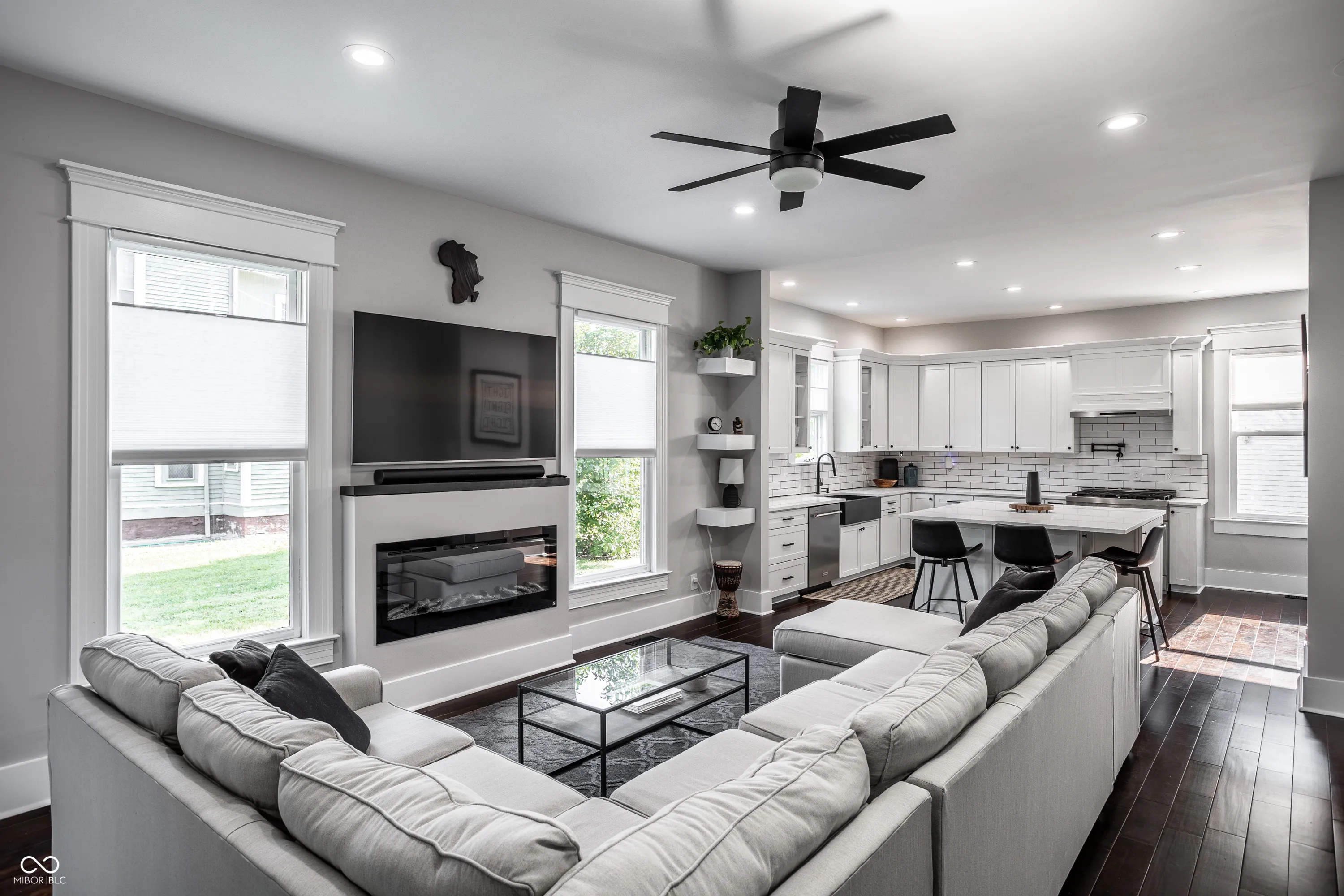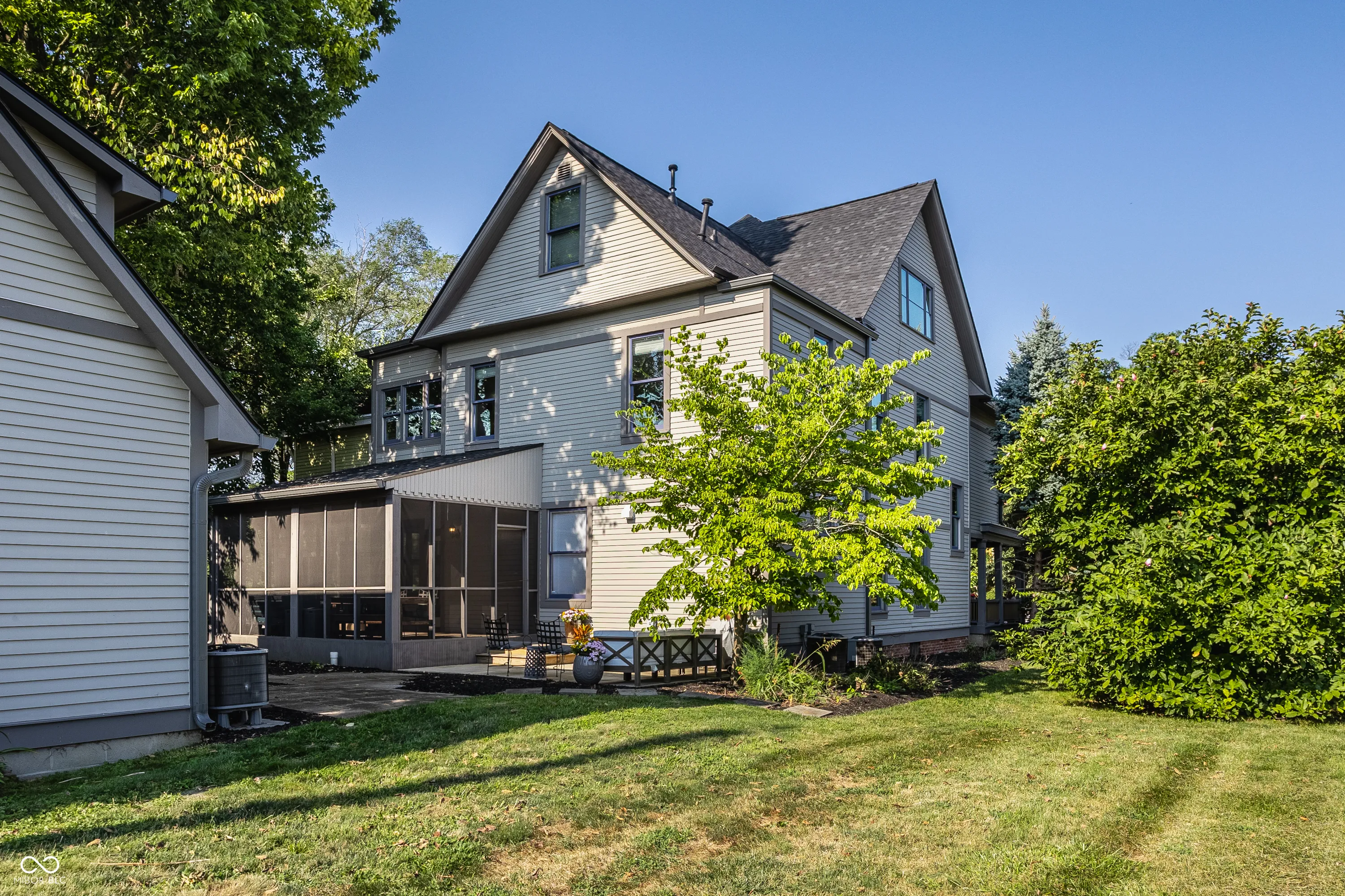 Welcome to an extraordinary residence that embodies timeless elegance and modern luxury, nestled in the coveted Herron-Morton neighborhood just minutes from downtown Indianapolis. This distinguished Victorian masterpiece-lovingly preserved and masterfully reimagined-has been meticulously renovated down to the studs with the most discerning buyer in mind. Beyond its stately facade, original architectural details dating back over 125 years-including a rich cedar shake roof, authentic wood siding, and an expansive, gracious front porch-offer a nod to the home’s storied past. Step inside and be enveloped by sophistication. A flowing open-concept layout is anchored by gleaming new hardwood floors and punctuated by refined living spaces. The formal dining room sets the stage for both intimate dinners and grand soirees, while the expansive family room transitions seamlessly into a chef’s dream kitchen-featuring top-of-the-line KitchenAid appliances, a quartz-clad center island with breakfast bar, farmhouse sink, and bespoke cabinetry designed for both form and function. Thoughtfully designed for modern living, the rear mudroom is a dream of organization with custom built-ins and storage galore. Ascend to the second level to discover a serene primary suite complete with a spa-caliber bath, soaking garden tub, oversized shower, walk-in closet, and tranquil bedroom retreat. This level also boasts three additional spacious bedrooms, a second full bath, convenient laundry area, and a private exercise studio. The finished third level offers remarkable flexibility-perfect as an in-law suite, private guest quarters, or luxe bonus space. Complete with a full kitchen, bedroom, bath, and living area, it offers self-sufficient comfort with impeccable style. A rare four-car garage is topped with a fully finished carriage house. Ideal for guests, multi-generational living, or income property. This is not just a home-it’s an heirloom.