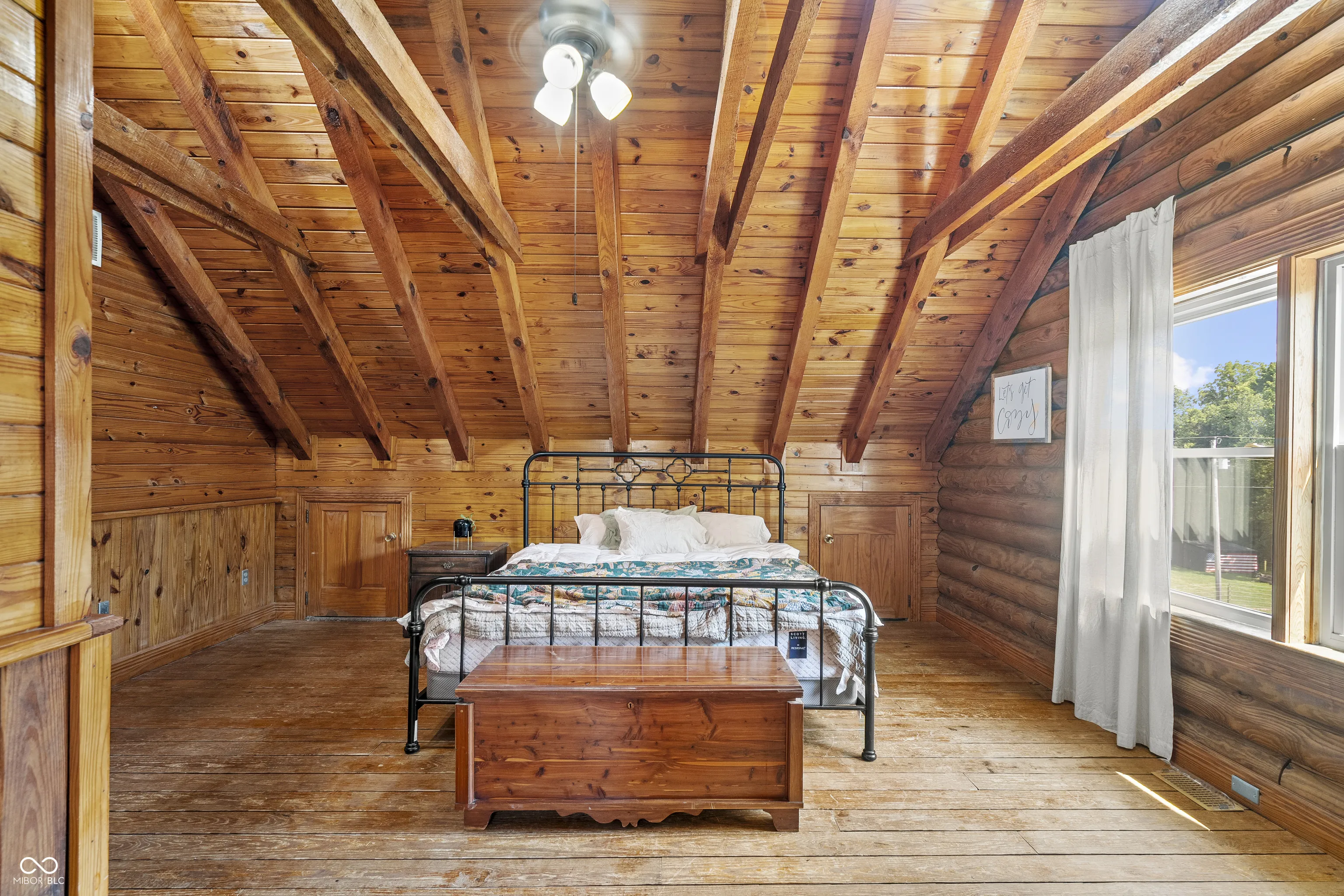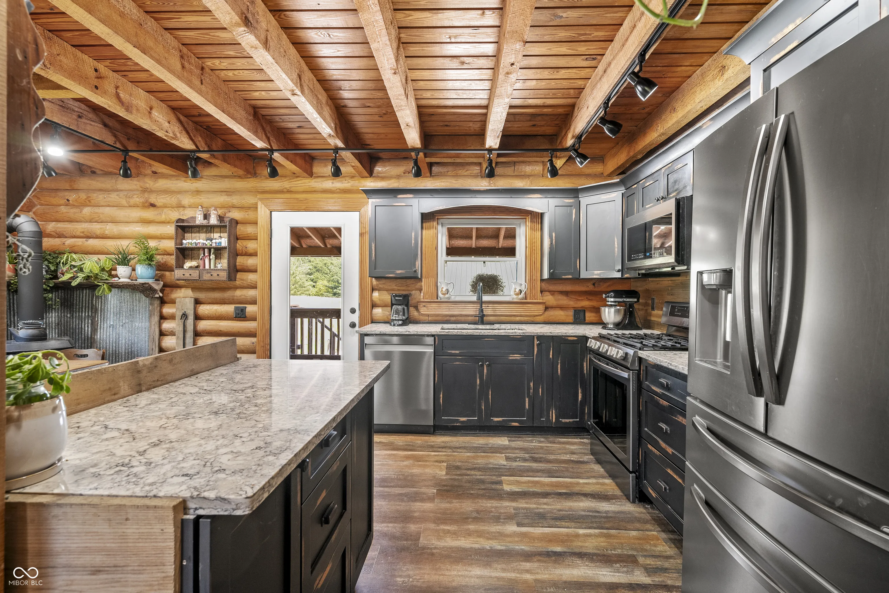 Tucked into the quiet countryside of Southern Indiana, this beautifully updated log home offers the kind of life many dream of but few find! Set on 6+ open acres w/ multiple fenced pastures, outbuildings, & lean-to structures, this property has been carefully designed for low-maintenance living. The 4-bedroom, 2.5-bath cabin has been thoughtfully updated w/ an open floorplan, soaring exposed beams, abundant natural light, new windows, a metal roof, high-efficiency appliances, PEX plumbing w/ shutoffs at every valve, soft-close Amish-built cabinets, granite countertops, a tankless water heater, & a cozy wood-burning stove. You won’t find a starter homestead here, this one is the real deal. From the moment you arrive, it’s clear every inch of this property has been intentionally planned. Outdoor spigots are strategically placed for less time on chores & more time enjoying the land. The garage & outbuildings are dialed-in offering an insulated workspace, 220V power, multiple floor drains & overhead storage perfect for gear, tools, or hobbies. The animal barn includes multiple stalls, a poured pad & water access. Every detail is labeled and well thought out, with barn fans, a tack shed & direct pasture access that make daily care efficient & stress-free. Smithville high-speed internet w/ WiFi in all 3 buildings makes remote work effortless. A full-home generator powers everything in an outage & the private propane tank, well & septic system keep your utilities manageable. Multiple peach, apple & pear trees offer seasonal harvests, while raspberry & elderberry bushes, raised garden beds, shaded gathering areas, an RV hookup & an outdoor kitchen, make it easy to host everyone. Just outside of Bloomington & a short drive from Ellettsville, Martinsville & Spencer, this Gosport homestead offers privacy & self-sufficiency without sacrificing access to town. If you’ve been searching for a move-in ready mini farm near Bloomington, this is it!