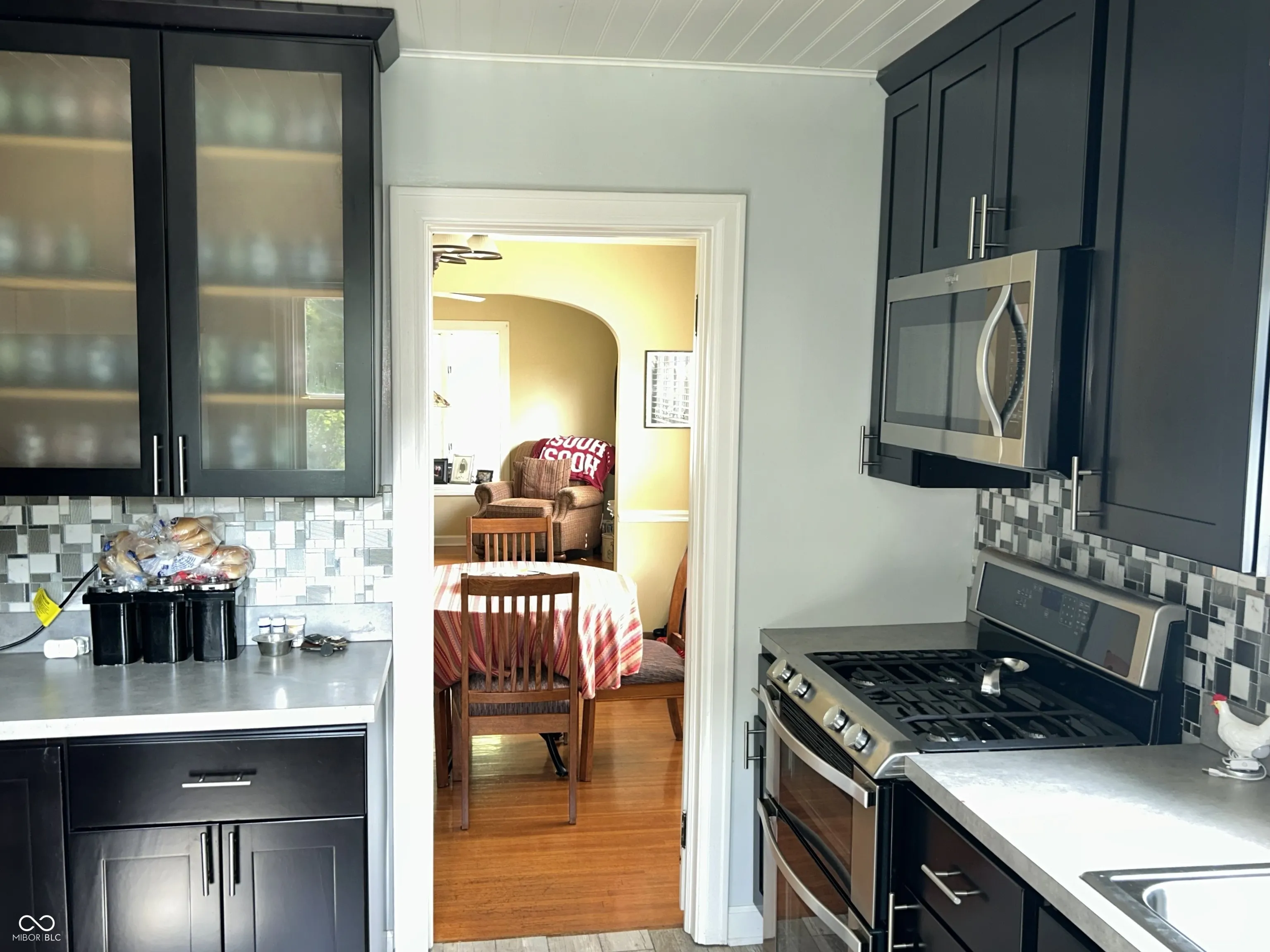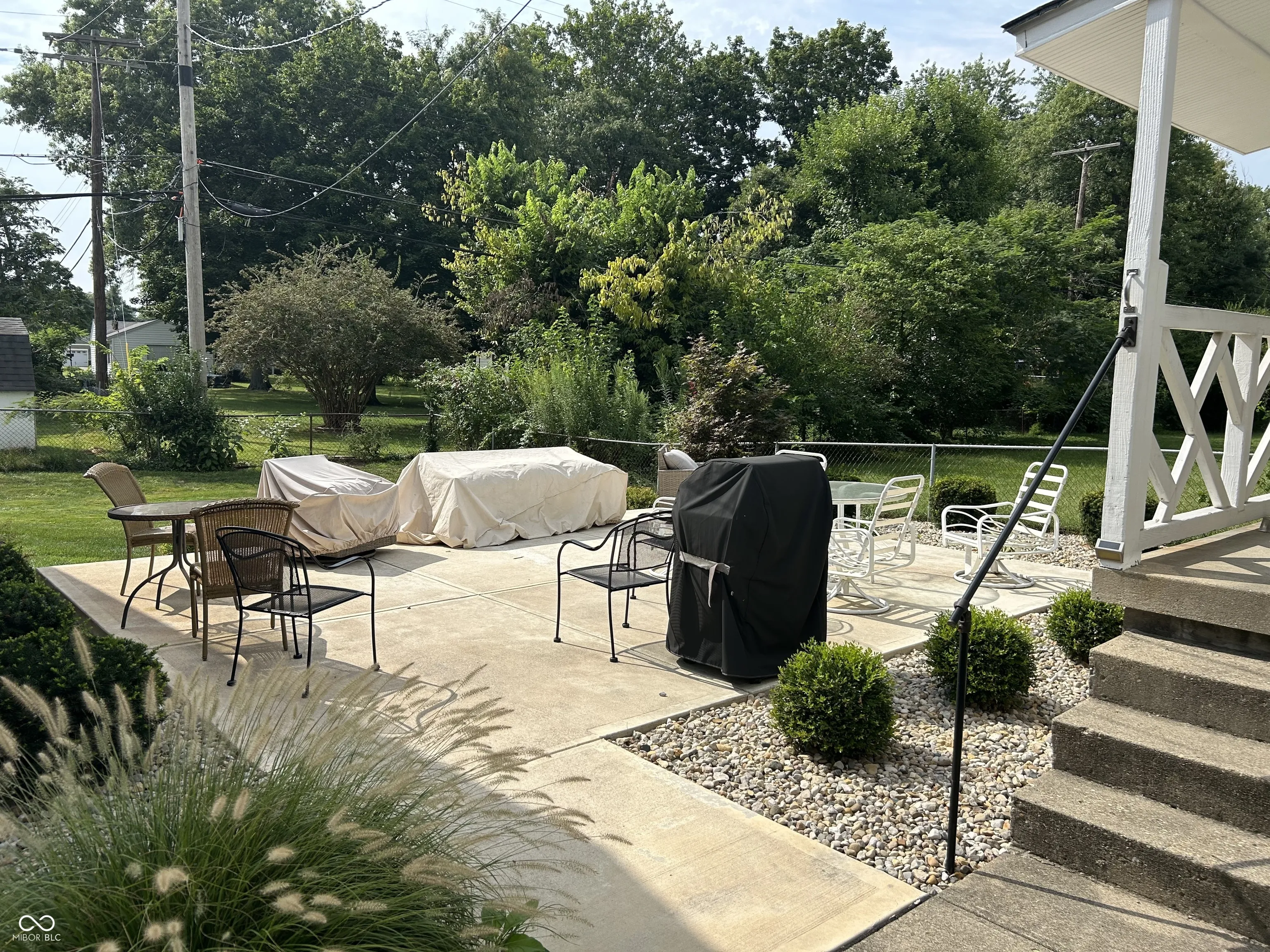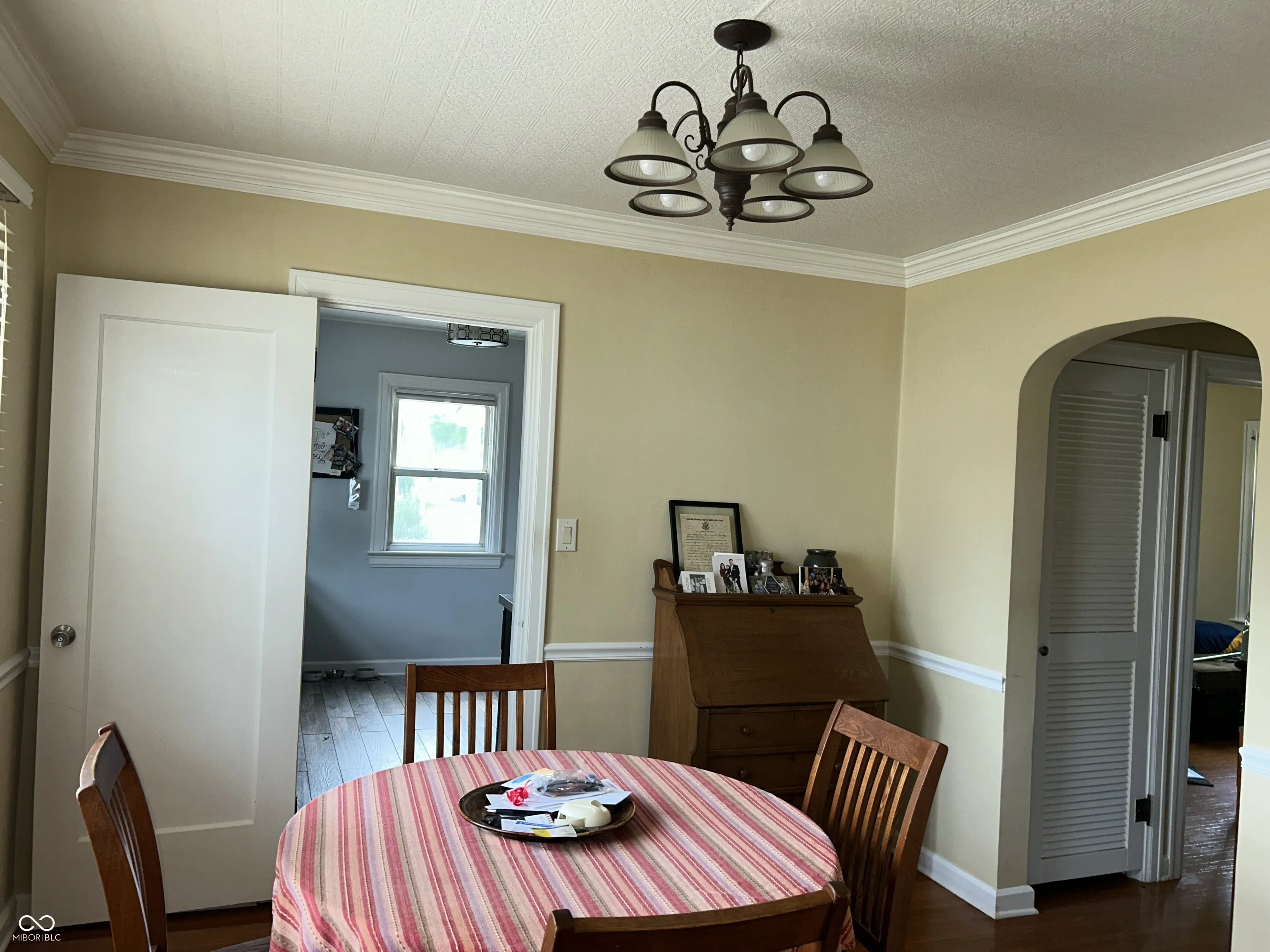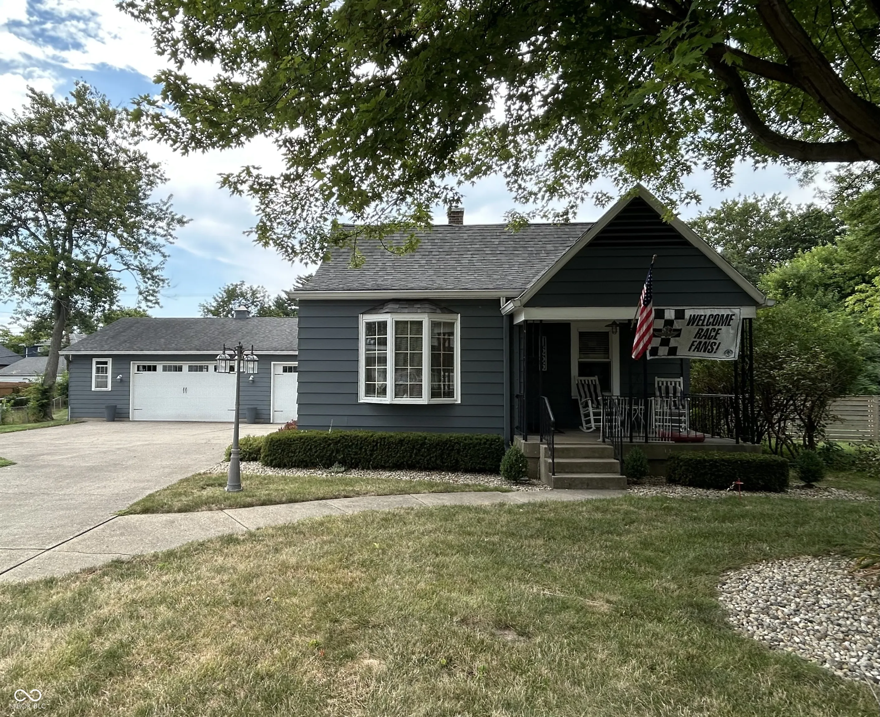 Charming 1 1/2 Story Speedway Bungalow on a Cul-de-sac features Neutral Decor, Hardwood Floors, Crown Molding, Living Room has a Bay Window, Dining Room w/Chair Rail & Crown Mold, Updated Kitchen includes Stainless Steel Gas Range w/Double Oven & Refrigerator, 2 Main Level Bedrooms & Upper Level Knotty Pine Bedroom/Bonus Room, Partial Basement with Half Bath and Laundry Area (includes Washer & Dryer), Covered Front Porch 12×8 to Enjoy the Sunrise and a New 22×17 Patio for Sunsets overlooking the Large Fenced Backyard. The Detached Garage is 30×42 with a functioning 1/2 Bath, Heat, Storage Room and 9 Ft Overhead Doors with Openers. Updates Furnace & Patio 2024, Water Heater 2019, Kitchen & Main Bathroom, A/C ’13 Living & Dining Room Ceilings are Embossed Wallpaper (Tin Ceiling look)