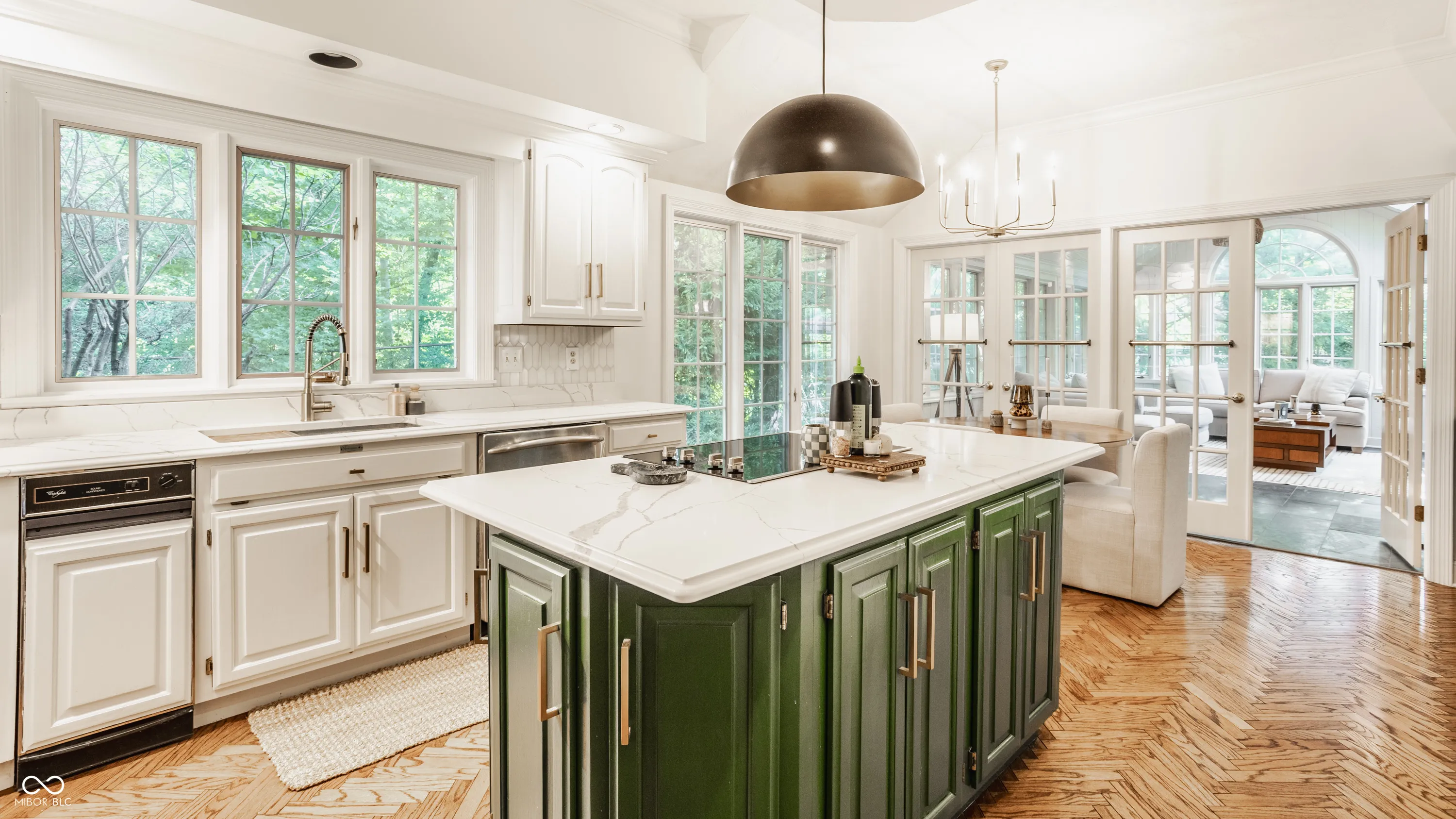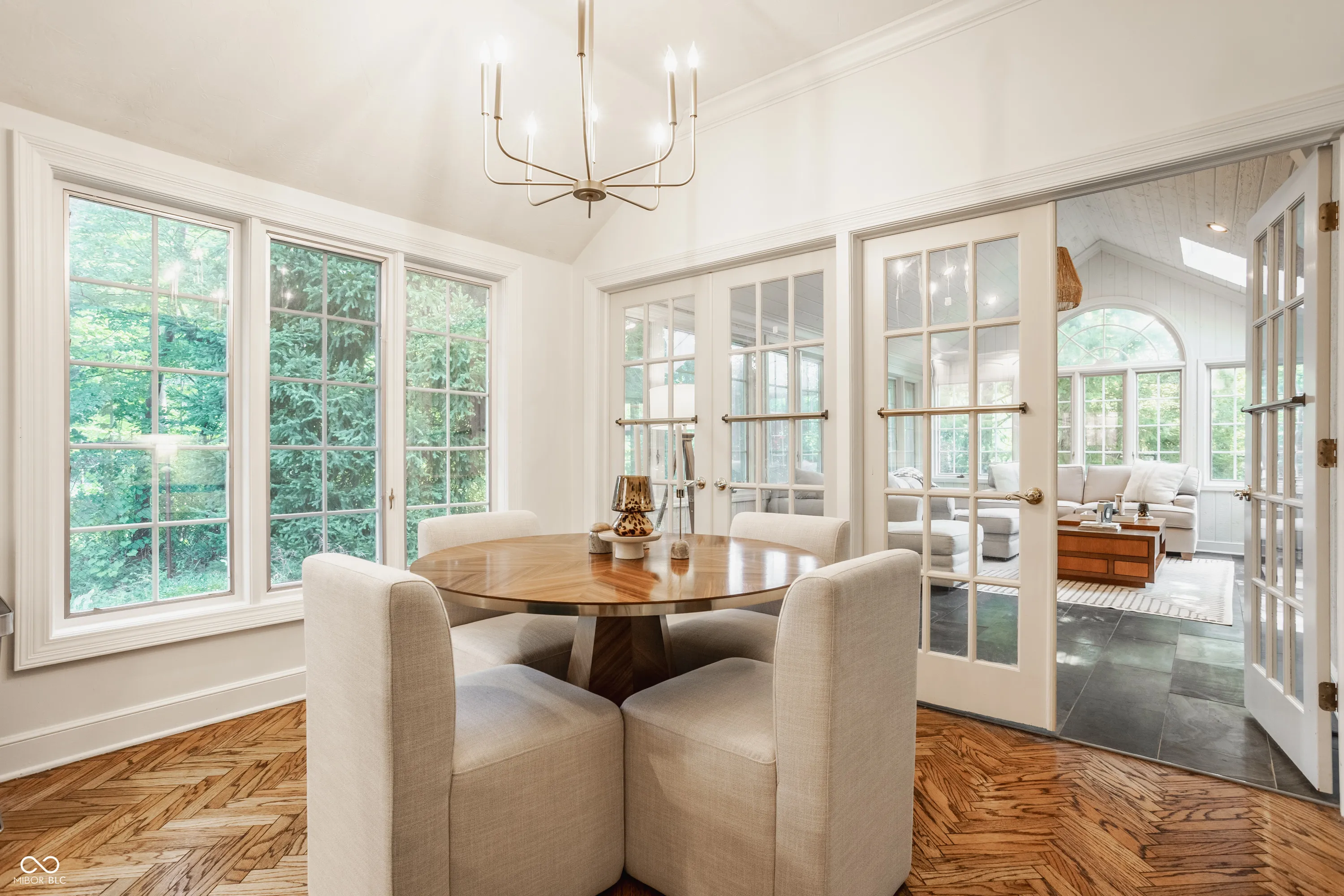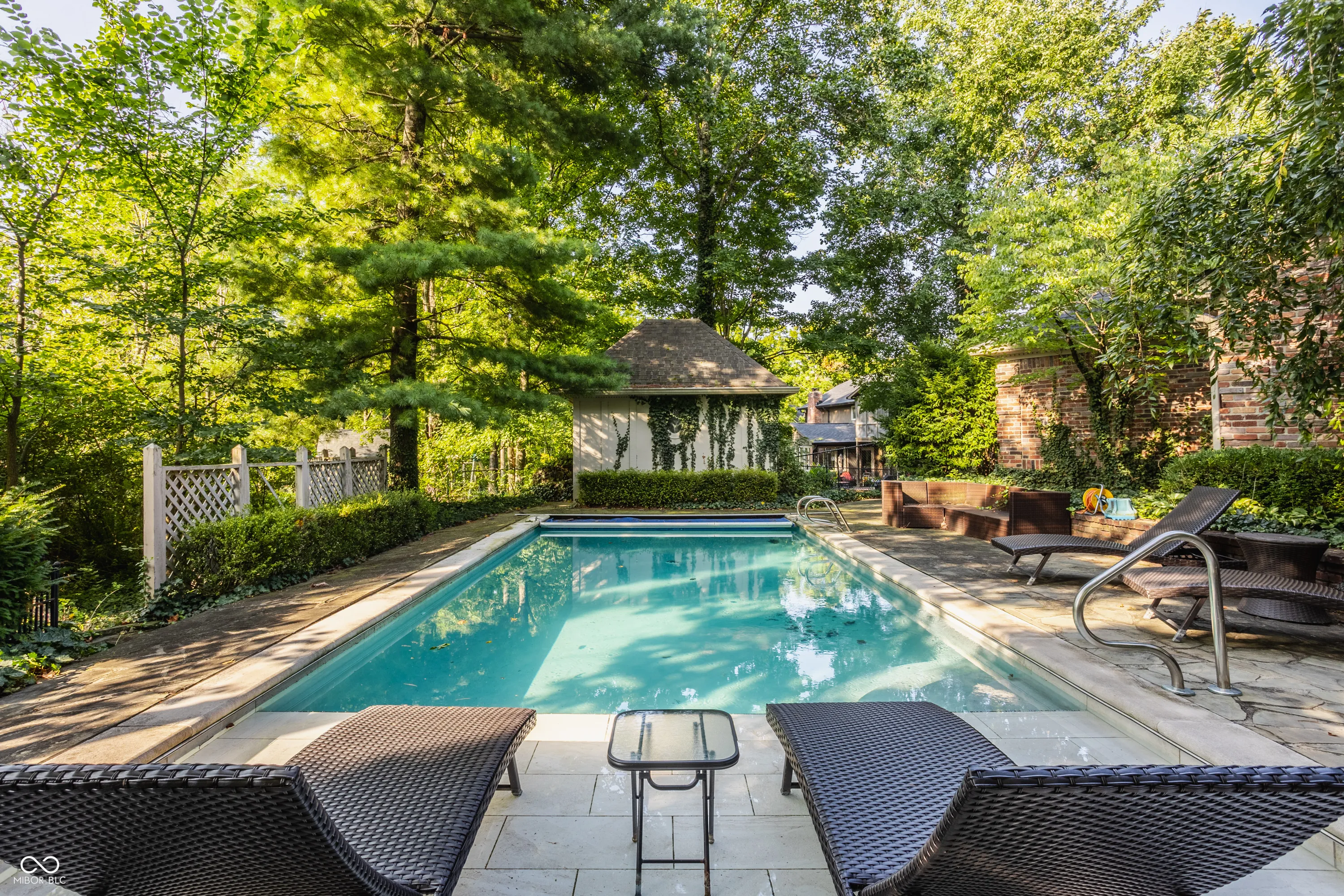 Quiet elegance meets everyday comfort in this remarkable residence. From the circular driveway framed by manicured gardens to the inviting pool and refined interiors, this home is designed to impress. Inside, herringbone hardwoods greet you in the foyer and carry through to the kitchen. The breathtaking living room showcases soaring cathedral ceilings, a stately fireplace, and a wall of windows with sliding doors that frame views of the lush gardens, patios, and sparkling pool. The chef’s kitchen is a true centerpiece with a large center island, brand-new quartzite counters, and a stylish tile backsplash. It opens seamlessly to an informal dining area and the sun-drenched four-season room-separately heated and cooled-where vaulted ceilings and walls of windows create a serene retreat. The primary suite offers the perfect end-of-day escape, featuring expansive walk-in closets and a spa-like bath with dual vanities, a soaking tub, and a separate shower. Two additional bedrooms and a full bath complete the main level. The lower level is the home’s coup de grace, boasting a spacious family room with a cozy fireplace and built-in bookshelves, plus a flexible exercise room or office and a convenient half bath. Outdoors, beautifully landscaped grounds set the stage for multiple patio areas, a pool with an electric cover, and a charming pool house-ideal for entertaining or private relaxation. All of this just minutes from Geist, shopping, dining, and with an easy commute throughout the city, this property truly checks every box.