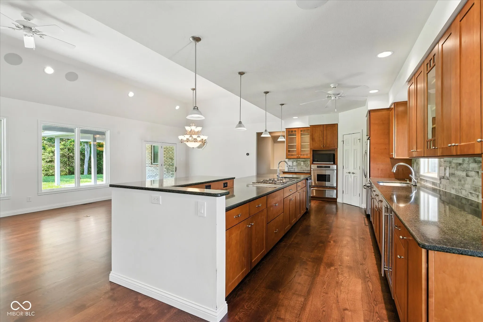 Beautiful Custom built VanDeman full brick ranch home backing up to woods! This home is stunning and full of custom features to make everyone happy. New Hardwood floors throughout the main living areas. Kitchen w/Cherry Cabinets, 14′ Island w/Granite counters, Gas cooktop w/downdraft system(23′), Blt-In oven w/warmer drawer, Uline wine refrig, Uline uncounter Bev. Refrig & a Blt-in ice machine and pantry. Tons of cabinets (even under breakfast bar overhang. Great room w/treyed ceiling, fireplace and Audio rack system to send sound to the 11″ Kilpsch speakers or to speakers on back porch. HVAC (West end of home- Bdrms.. new in 19′ & is zoned between Primary & secondary bedrooms AND Great room, kitchen and 1/2 bath area system new in 21′) ALL bedrooms with new carpet and paint. Home is ADA ready w/zero threshold for exterior doorways, interior doors and Primary shower. Primary bedroom w/Trayed ceiling (w/reflective light), tons of windows for natural light and the view of nature and 2 HUGE walk-in closets (one w/blt-in safe). Primary bath w/lots of vanity cabinet & counter space. A curb-less walk-in shower is big & part of the wet space including the garden tub. Bedroom #2 w/wlk-in closet & has direct access to the full bathroom.(see detail sheet re:storage cloest). WORKSHOP is 24×16 & has It’s own HVAC system, cabinets, 5-220V outlets and tons of lighting. Back porch is 10’deep & a view that shows an infinite view from your yard to the forest behind you! Below the workshop is a 24 x 16 basement/stoage room w/separate 100 amp box & that also houses a backup generator for the home. NEW Roof 24 (50 yr shingle), Exterior painted 2024 and 3/4 of the windows replaced between 2024-2025. Home has Lutron Caseta Lighting system as well! Plus a Poured paid w/drains under deck for swim spa… LIST OF ALL FEATURES, IMPROVEMENTS AND DATES ARE ATTACHED. NO HOA either