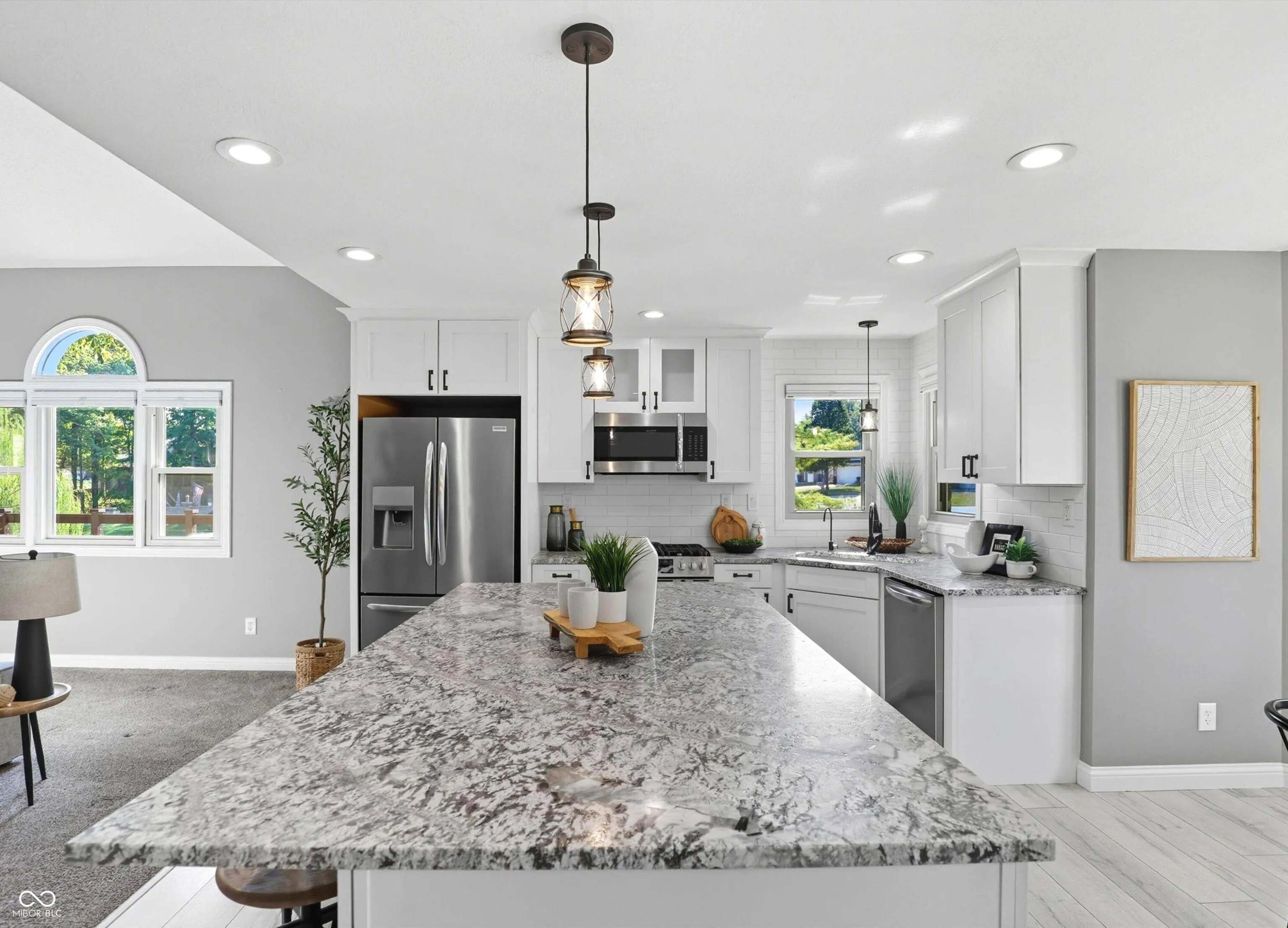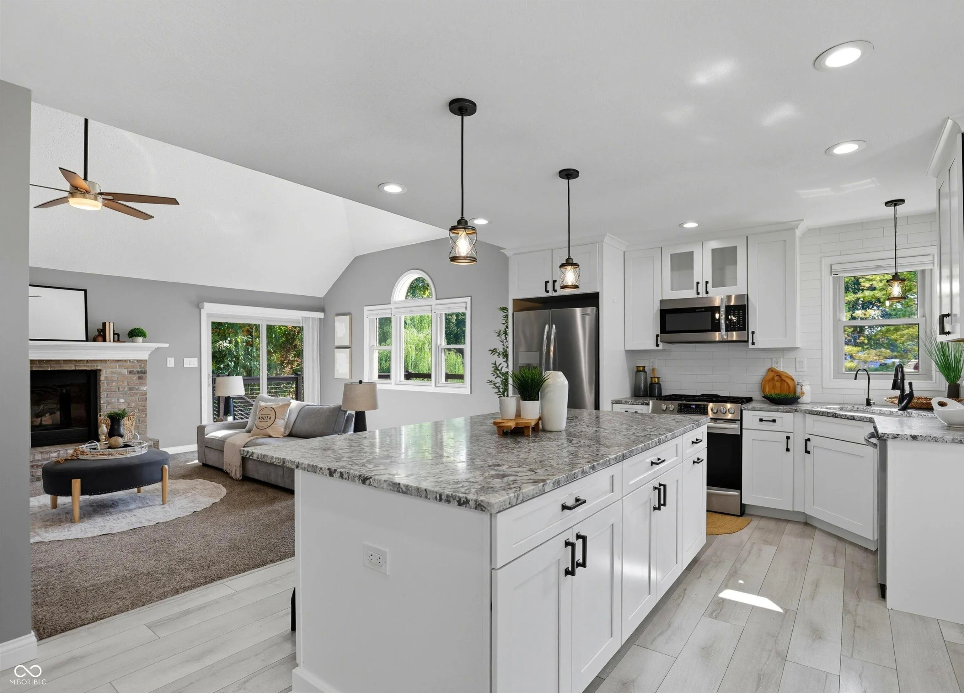 Check out this Morse Lake Beauty!! All Brick Ranch with Finished Walkout Basement, 3 Car Garage, Huge Corner Lot and a few EASY steps down to your Dock!! Easy in and out to main body of water! Over 280K in upgrades includes recently dredged cove and so much more!! This home is Located in Desirable Neighborhood of Morse Landing with NO HOA, This Amazing Updated Home is a Rare Find & Move-in READY. Step inside and you will see the Love and the Heart of this home….Crisp & Clean, Bright & Open. You will LOVE the totally updated Kitchen, a culinary enthusiast’s DREAM w/upgrade appliances, Gas Stove, Granite countertops, tile backsplash, complemented by a Huge kitchen island, perfect for meal preparation or casual dining at the Breakfast bar or Breakfast rm. The Amazing Living rm is a sanctuary of Comfort and Style, defined by a Brick hearth Gas fireplace, promising warmth on cooler evenings. You will love the space w/vaulted ceilings, amplify the sense of space creating an inviting atmosphere. Retreat to the Primary bedrm, where the tray ceiling adds architectural interest, crafting a serene and sophisticated ambiance. Relax in your totally updated bath that offers a spa-like experience with a double vanity, Custom tiled walk-in shower w/rain shower, separate soaking tub that offers a private oasis for relaxation and rejuvenation. Check out the Large Finished walk-out Basement w/wood burning fireplace, full bath, Bar & office area. You will enjoy the evenings relaxing on your updated large deck overlooking the tree-tops and a peaceful Lake View, OR… enjoy entertaining on your lower level custom paver patio and sit around the campfire taking in the peace. This amazing home offers a blend of Sophisticated interior elements & alluring outdoor features, offering a unique opportunity to experience refined living. From Updated Luxury baths, kitchen, Paint, trim, carpet, furnace/Ac, outdoor space, dock, lift & more! You will not find this many updates at a price like this