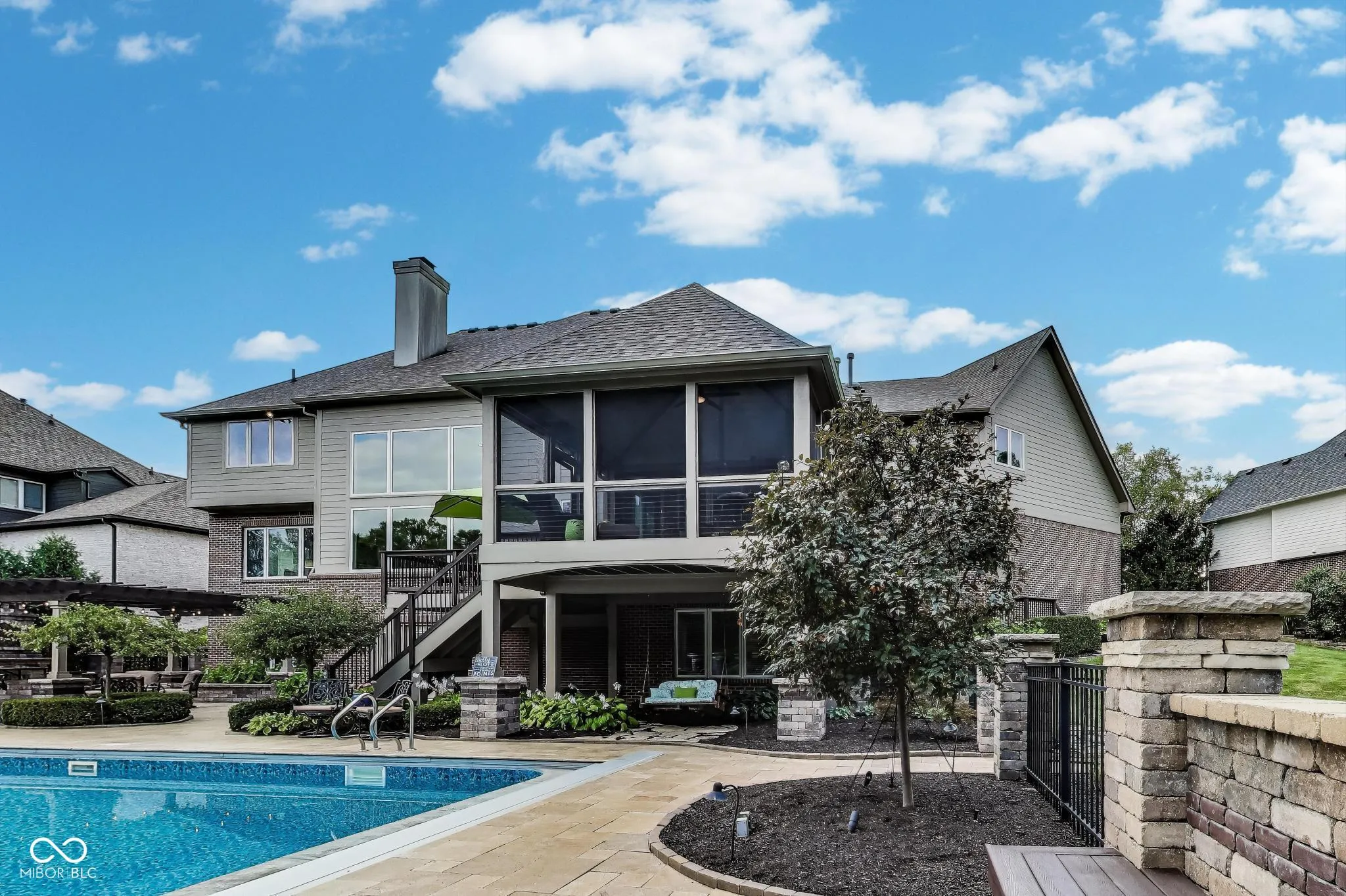 Welcome to 13843 Coldwater Drive, a stunning residence set on a private wooded & creek lined 1.03 acre lot in the Woods at Williams Creek. Meticulously maintained & thoughtfully updated, this home blends timeless elegance with modern comfort. Soaring ceilings, crown molding, & striking architectural details create a grand first impression. White oak hardwoods flow throughout the main level, connecting spacious & well designed living areas. The two story great room features a dramatic wall of windows, double sided fireplace, & custom built ins, creating a balance of warmth & sophistication. The dedicated office offers a refined work from home space, while the adjacent sunroom with fireplace & serene views doubles as a second office or cozy retreat. The formal dining room is perfect for gatherings, & the gourmet kitchen impresses with updated SS appliances, a walk in pantry, large center island with seating, & a casual breakfast nook. A cozy hearth room with gas fireplace opens to the screened lounge that overlooks the backyard oasis. Dual staircases lead to the upper level where the spacious primary suite serves as a true sanctuary. The updated spa inspired bath includes quartz countertops, dual vanities, a jetted soaking tub, towel warmer, dual head shower, & a large custom walk in closet. Four additional large bedrooms, each with its own designated vanity & connected by Jack and Jill baths, complete the upper level. The finished lower level is designed for entertaining, featuring a wet bar, multiple recreation areas, the sixth bedroom, full bath, & an oversized storage room. A walkout leads to the spectacular outdoor living space featuring a sparkling 30 x 15 heated pool, travertine pavers, a pergola covered outdoor kitchen with granite countertop, mini fridge, smoker, fan, & fireplace. Lush landscaping frames this ultimate backyard retreat. The 4+ car garage with epoxy floors, built in storage, & workbench offers ample space for cars & storage. A must see home!