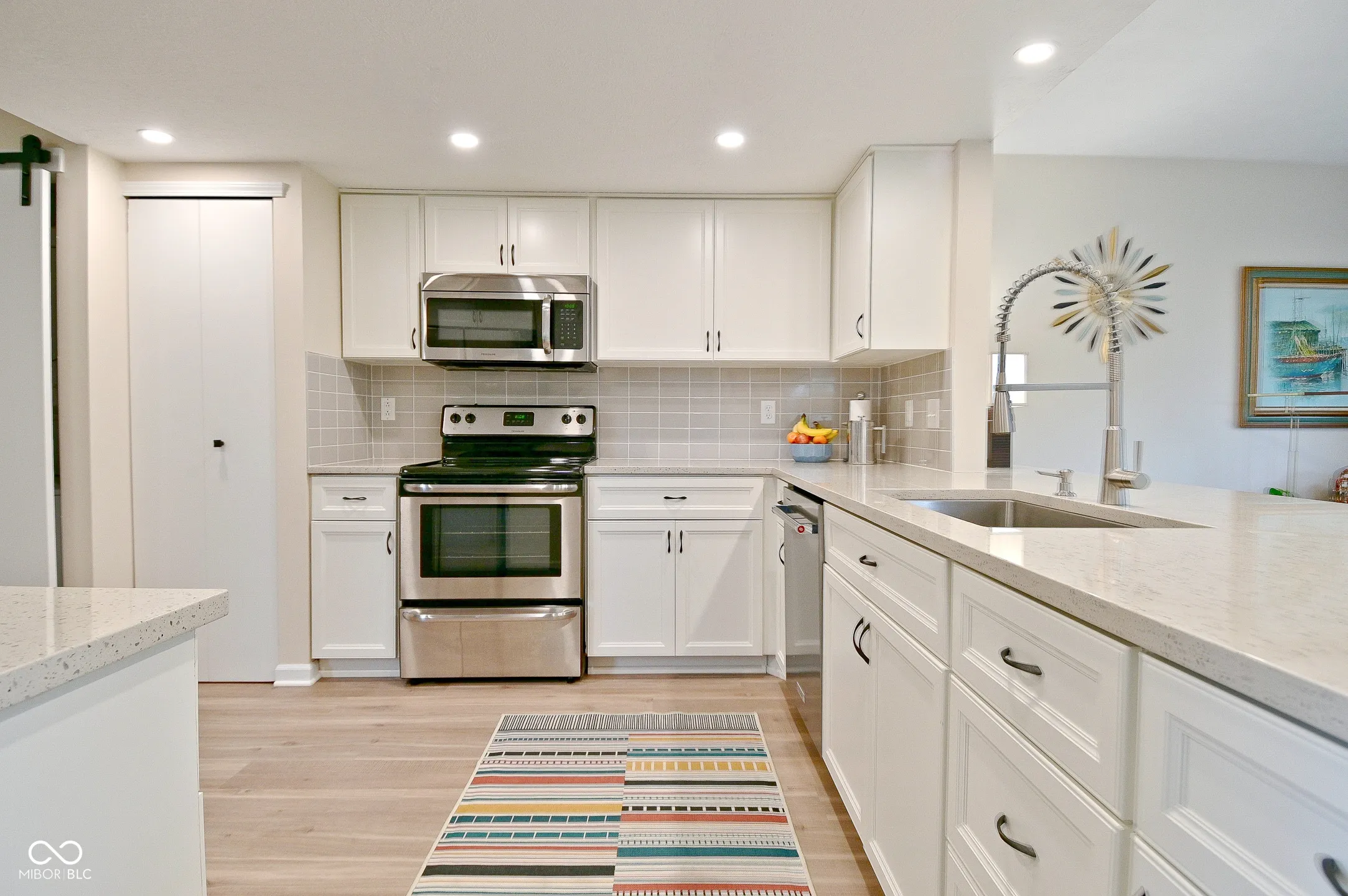 Stunning renovated 3-bedroom, 2.5-bath condo located in the Sun Lakes at Bayside community of Indianapolis. This home has been updated with fresh, modern finishes and thoughtful design to create a move-in ready space that feels both stylish and comfortable. Step inside to an open and airy floor plan featuring brand-new flooring, updated lighting, and a stunning kitchen with quartz countertops, stainless steel appliances, and beautiful cabinetry. The spacious living and dining areas offer the perfect flow for entertaining, while a private patio just off the main living space provides a quiet retreat. Upstairs, you’ll find a generous primary bedroom with an en-suite bath and ample closet space, along with two additional bedrooms and another beautifully updated full bath. A convenient main-level half bath, attached garage, and private entry add to the home’s functionality and charm. Located in a well-maintained, walkable community near shopping, dining, parks, and major highways, this Sun Lakes at Bayside gem offers modern living with minimal maintenance-perfect for busy lifestyles or anyone ready to enjoy easy, turnkey living.