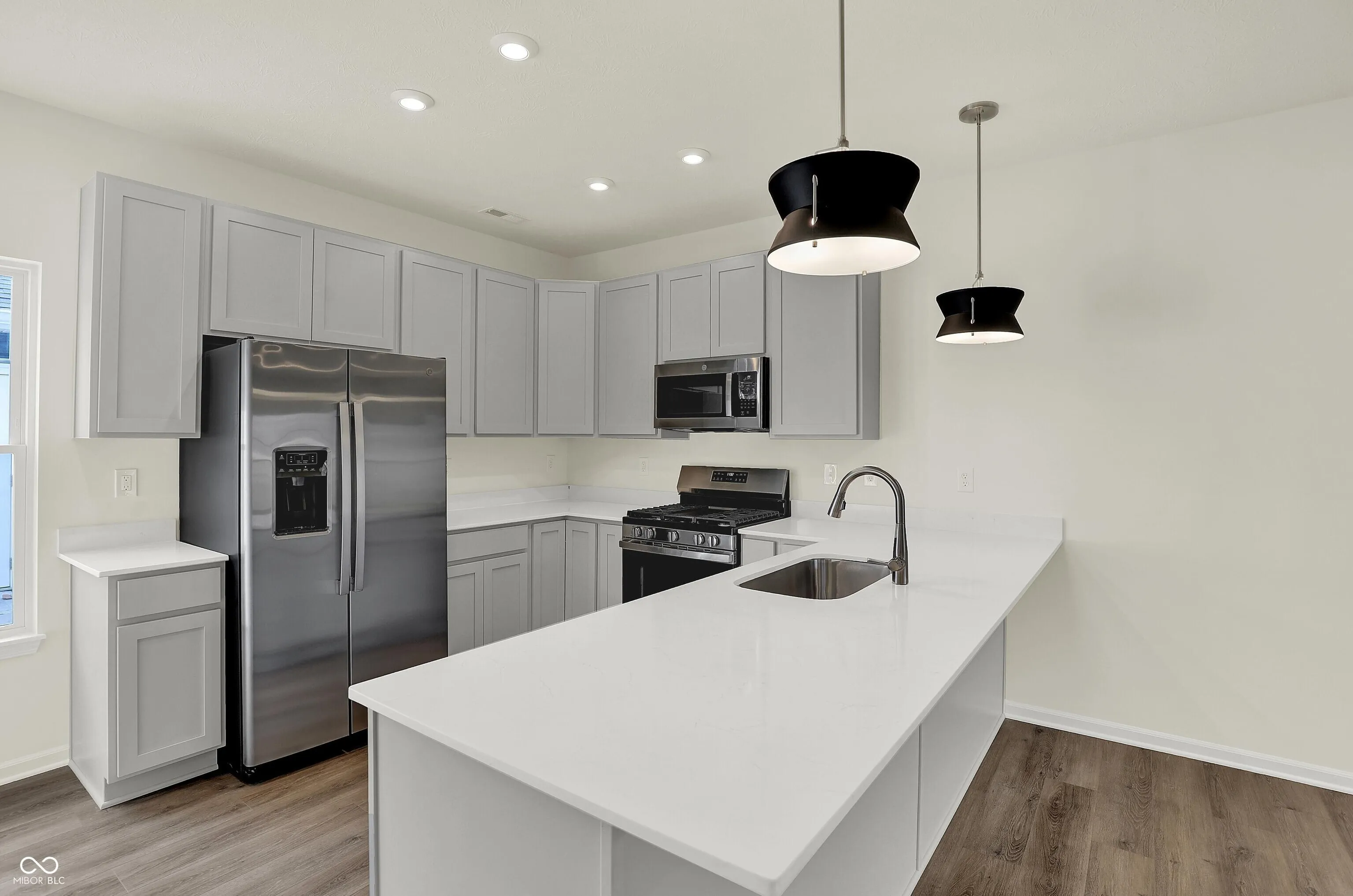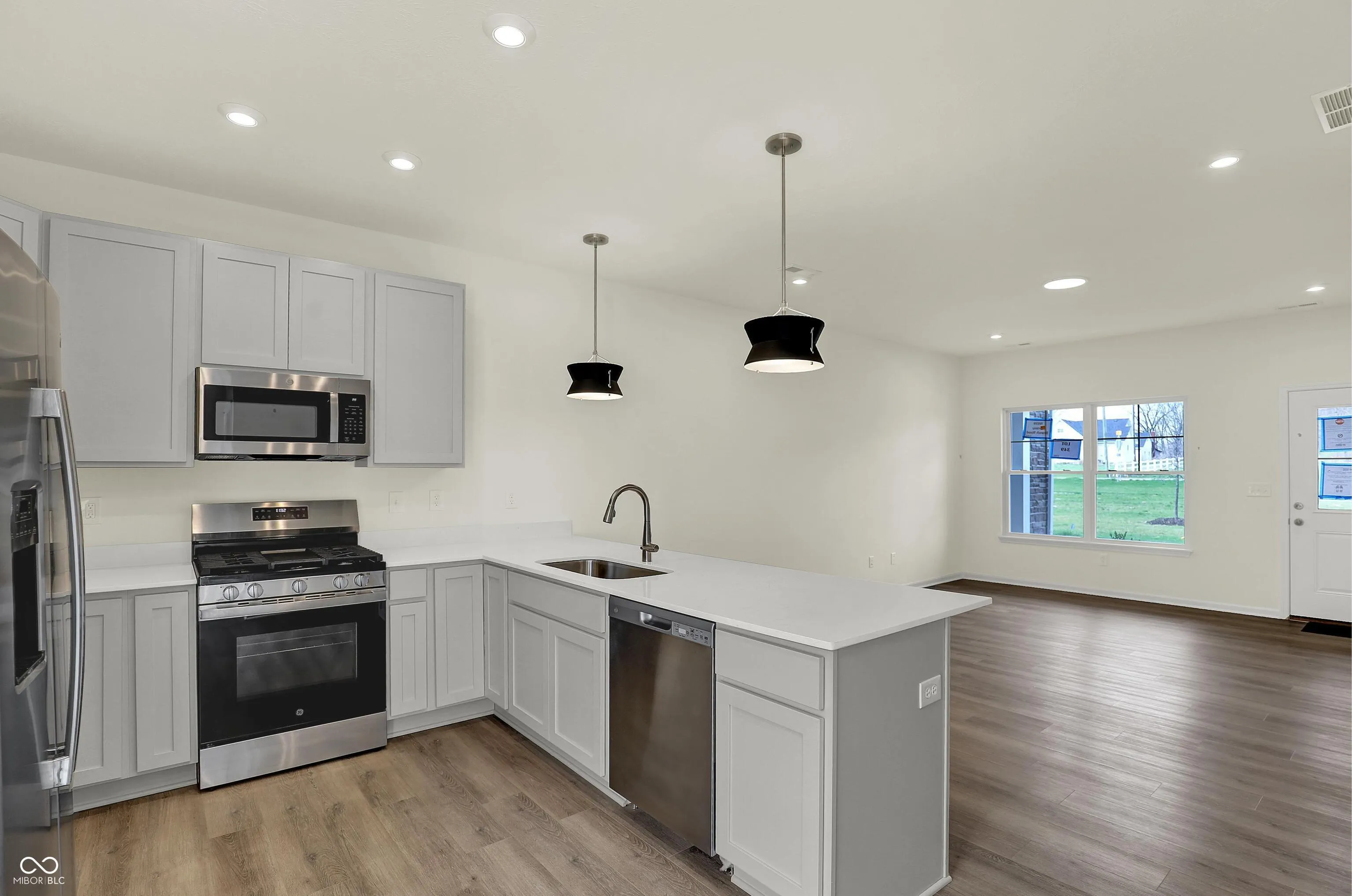 Olthof Homes proudly presents the Henning, a charming 2-story townhome perfect for those seeking an affordable, low-maintenance lifestyle in the Lindley Run community. This delightful residence offers 1,197 square feet of well-designed living space, featuring two bedrooms and 1.5 bathrooms. The open concept main floor boasts a generous great room and a kitchen that serves as the focal point, complete with luxury 42″ white painted maple cabinetry, GE stainless steel appliances, granite countertops, and a large peninsula. Enjoy the convenience of a second-floor laundry, smart home system, private patio, and a two-car garage. Upstairs, both bedrooms come with large walk-in closets, complemented by a full bathroom and linen closet. The home also includes 9′ ceilings on the first level and soft-close drawers in the cabinetry. Step outside to discover paved walking and bike trails, a pond, dog park, neighborhood pool, and playground. Our high-performance, energy-efficient homes are backed by a 10-year structural warranty, a 4-year workmanship warranty on the roof, and energy-efficient Harvey windows with a North Central Energy Star Rating, all supported by our exceptional customer care program. Make the Henning your new home today!