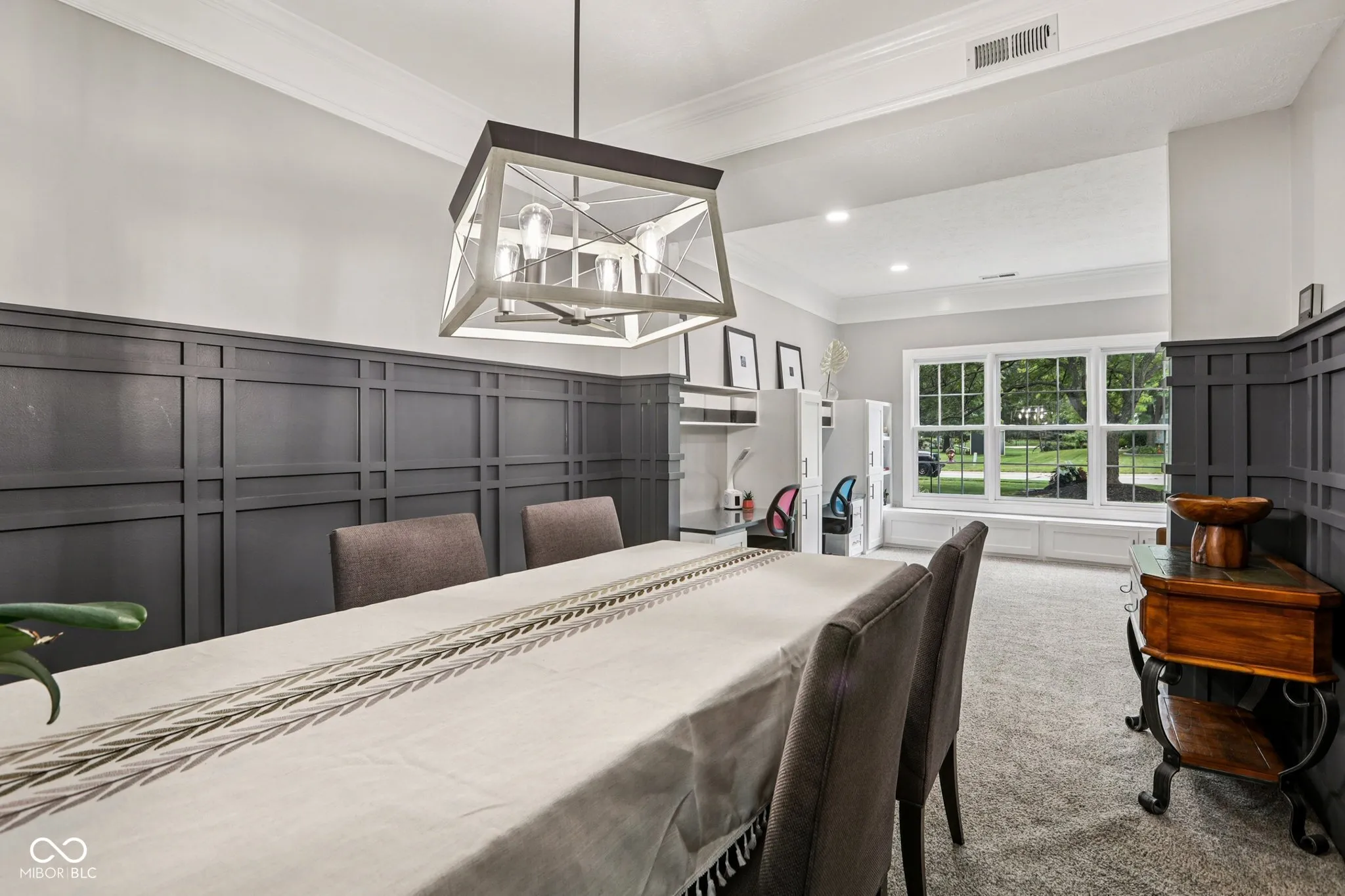 Welcome to this one of a kind home resting on a 1/2 acre cul-de-sac lot in a desirable Carmel neighborhood! Step inside and experience the custom features in every room! The living room welcomes you with perfect quiet space enhanced with built-ins and crown molding that flow into the formal dining room which is wrapped in custom woodwork! The cook will love the completely remodeled kitchen offering custom cabinets, granite counters, tile back splash, tile floors and a trendy coffee bar! Included stainless appliances complete the kitchen in this open floor plan. The generous sized great room is draped in sunlight and showcases a wood burning fireplace, perfect for cozy evenings! Around the corner you will find a bright office space with cathedral ceilings and additional flex space complete with a golf simulator and built-ins that offer both functionality and aesthetic appeal. Retreat to the primary bedroom offering an ensuite with double vanity, tiled walk-in shower and a closet to die for! 3 Additional bedrooms & convenient upstairs laundry complete the 2nd level. Downstairs boasts a family room with an electric fireplace and fresh ambiance! (Don’t miss the secret play space) Step outside to discover beautiful outdoor living space & covered patio perfect for entertaining! The fully fenced backyard provides privacy with no back yard neighbors! Enjoy the benefits of being extra close to the Monon Trail keeping you active outdoors! This Carmel residence offers a blend of comfort, style, and entertainment, creating an exceptional living experience.