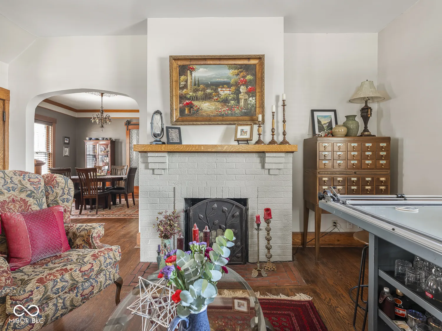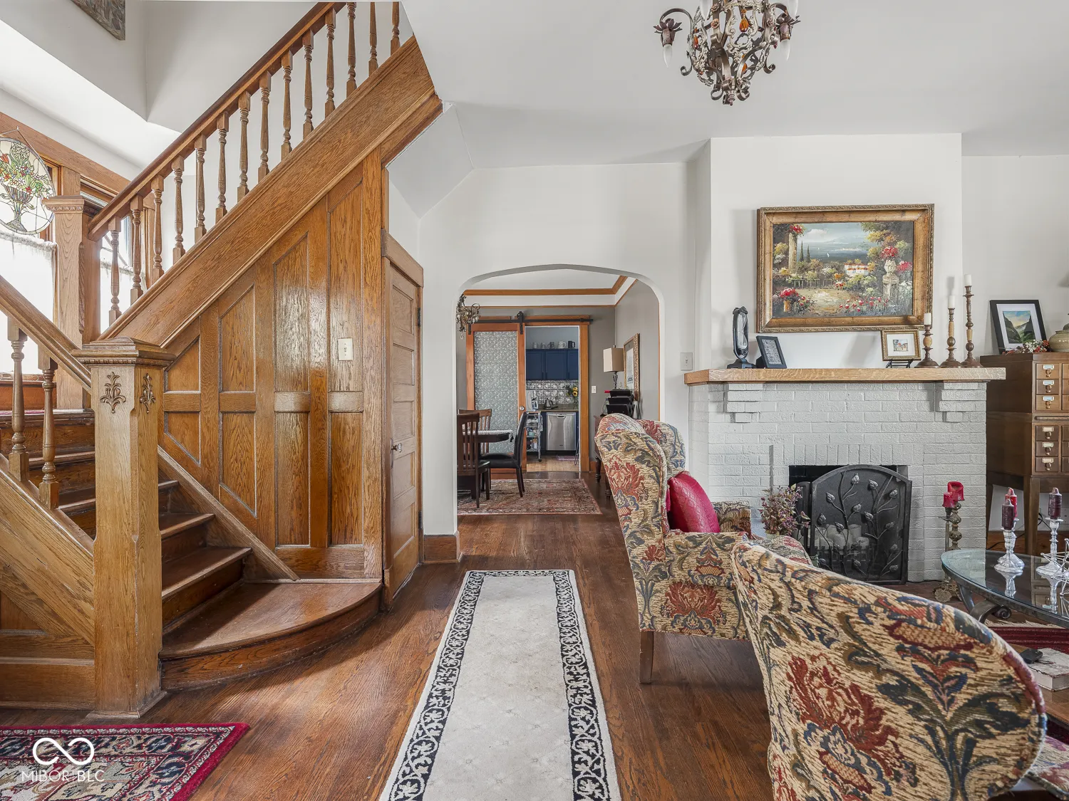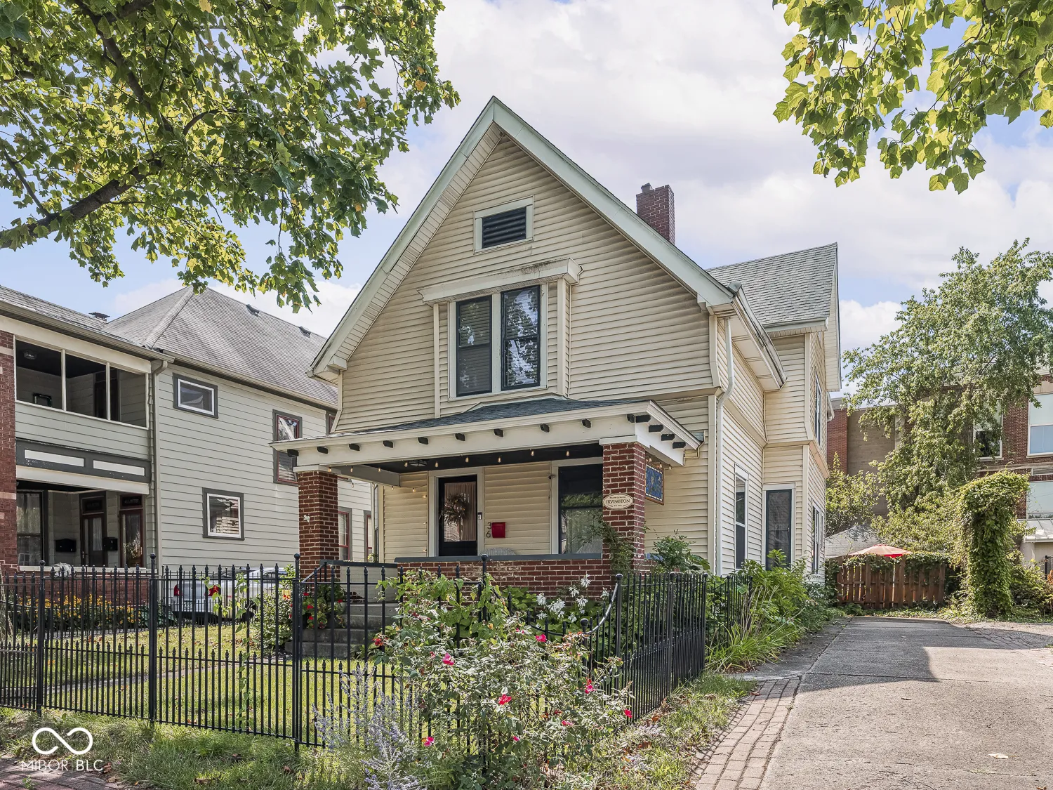 Featured in the 2022 Benton House Home Tour this Updated Irvington 2 Story Home features an Amazing Walkable Location, Hardwood Floors throughout, Original Natural Woodwork including Amazing Entry/Stairwell, as well as a Lovely Paneled Den/Library on the First Floor. Updated Kitchen with Stainless Appliances and Gas Cooking. Main Floor Laundry/Mudroom. The 2nd Floor features a Large Primary Bedroom, 3 Additional Bedrooms, An Updated Bathroom and tons of Storage including a Walk-In storage Area. In the thoughtful Rehab done in 2016/17 Improvements included New HVAC, 200 Amp Service, New Plumbing Lines, New Water Softener, Refinished Floors, Rear Privacy fence, Metal fence in front, and Gas Line run to the fireplace. Back Yard features include a Hot Tub, Entertaining Area with lovely landscaping including Blackberries, Raspberries, and a Peach Tree. Garage is currently used for storage but can be accessed for parking by opening the gates in the privacy fence. 2025 Improvements include a New Roof, Chimney Tuckpointing and Cap, 1 New A/C Condenser, Hot Tub Cover and Additional Blown in Insulation.