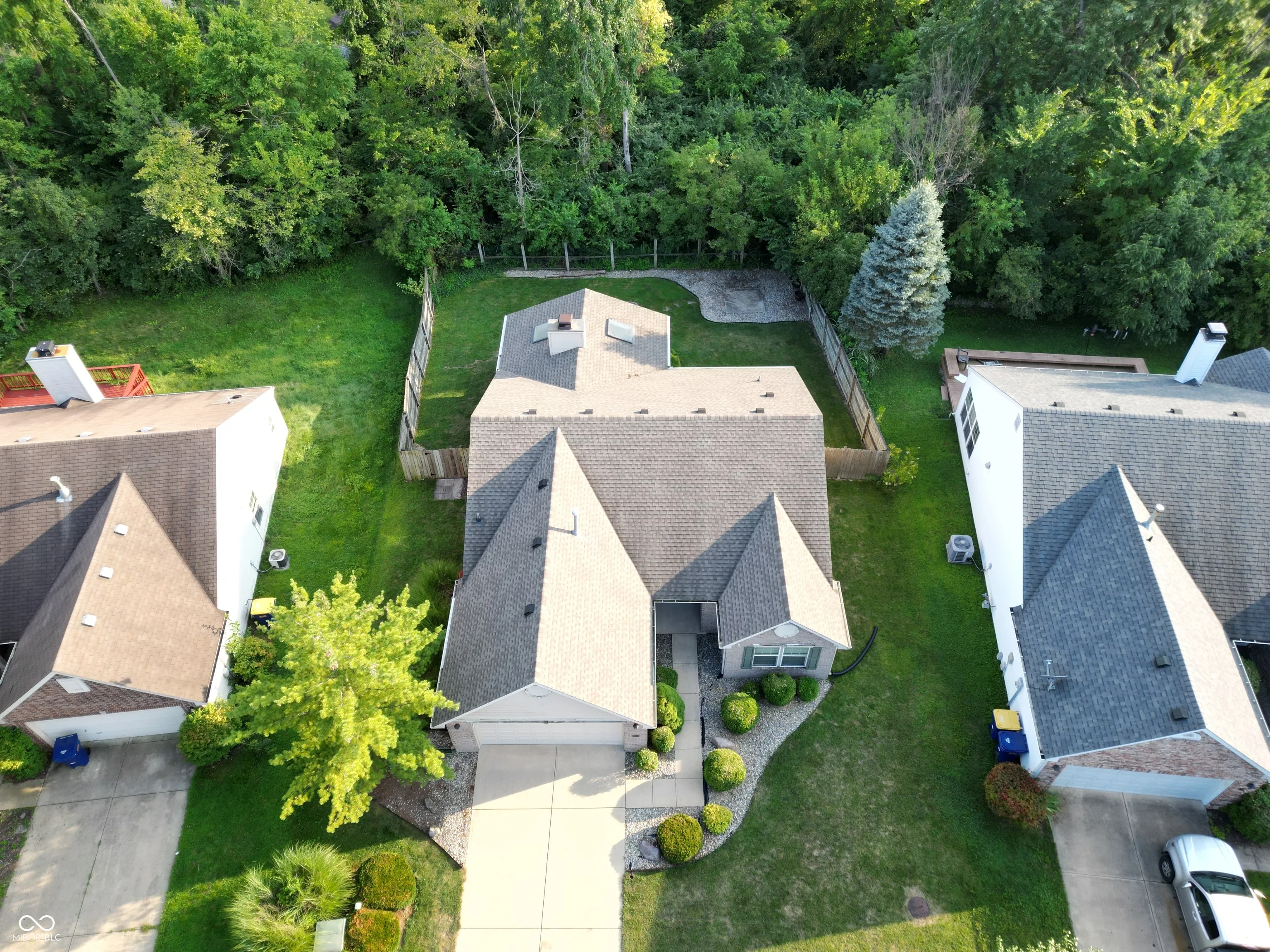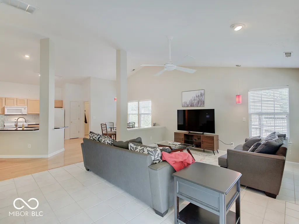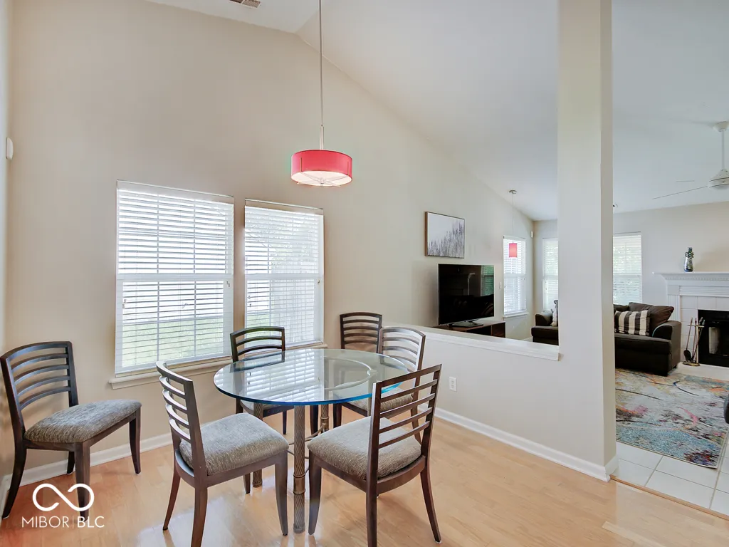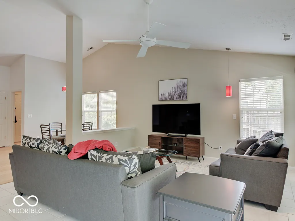This is the ranch you’ve been waiting for! Super open floor plan with the kitchen and great room wide open to each other with enormous cathedral ceilings – feels huge! Hardwood flooring extends from the entry through the spacious kitchen featuring granite counters, tile backsplash and a large dining/breakfast room! The great room has plenty of natural light and is large enough to accommodate multiple seating/tv arrangements! The living area extends out back to the large, fully covered porch with skylights, fan and bench seating. Oh, and it’s totally private with 6′ fencing on both sides and it backs up to woods with no homes behind – fully fenced and ready for pets! The primary suite features another cathedral ceiling and a remodeled bathroom with a custom walk-in tile shower and dual vanity plus a spacious walk-in closet. Yet one more cathedral ceiling in one of the two additional bedrooms! It’s a short walk to the neighborhood pool on the walking trail! Super clean, neutral and ready for move-in!