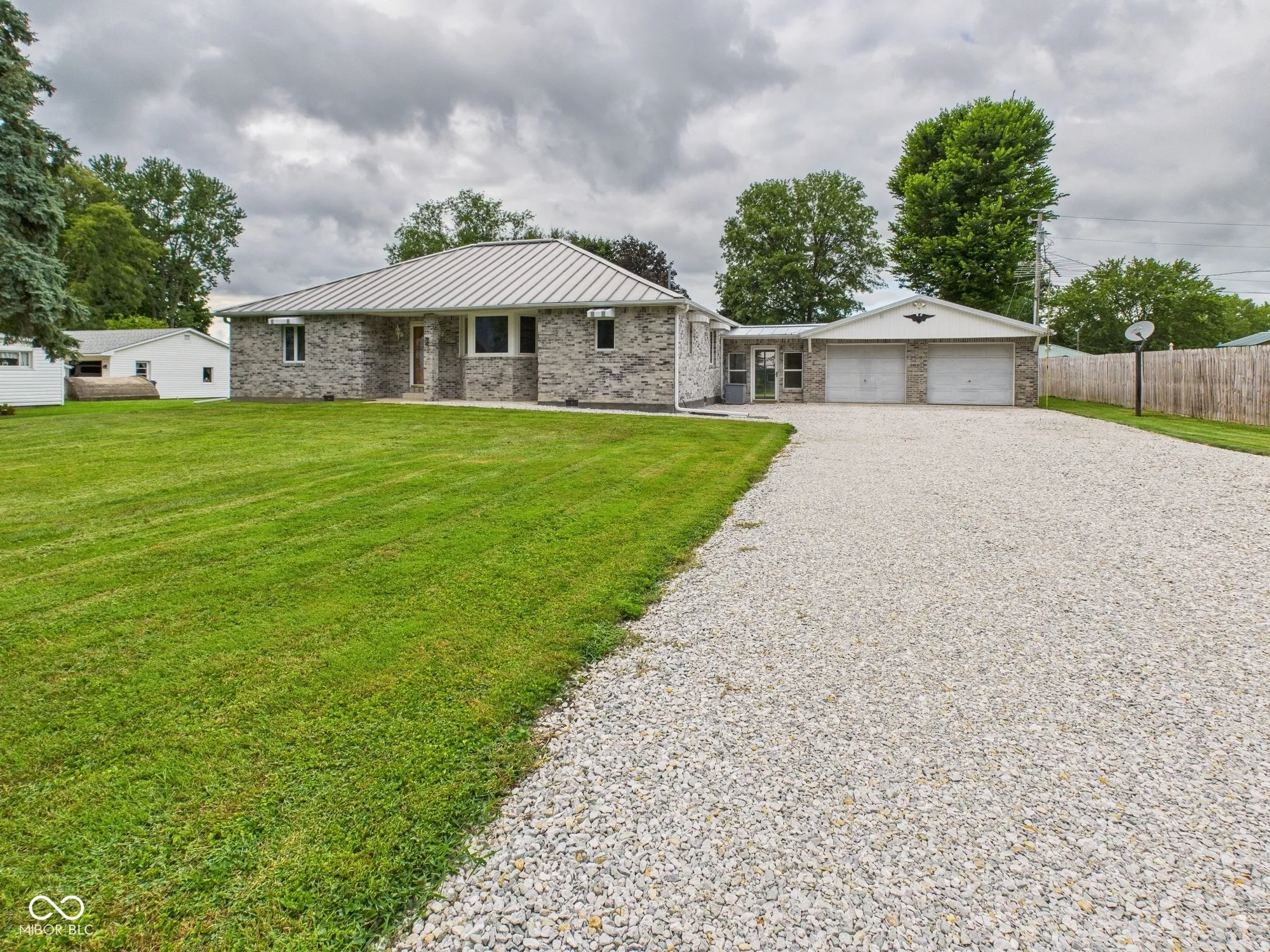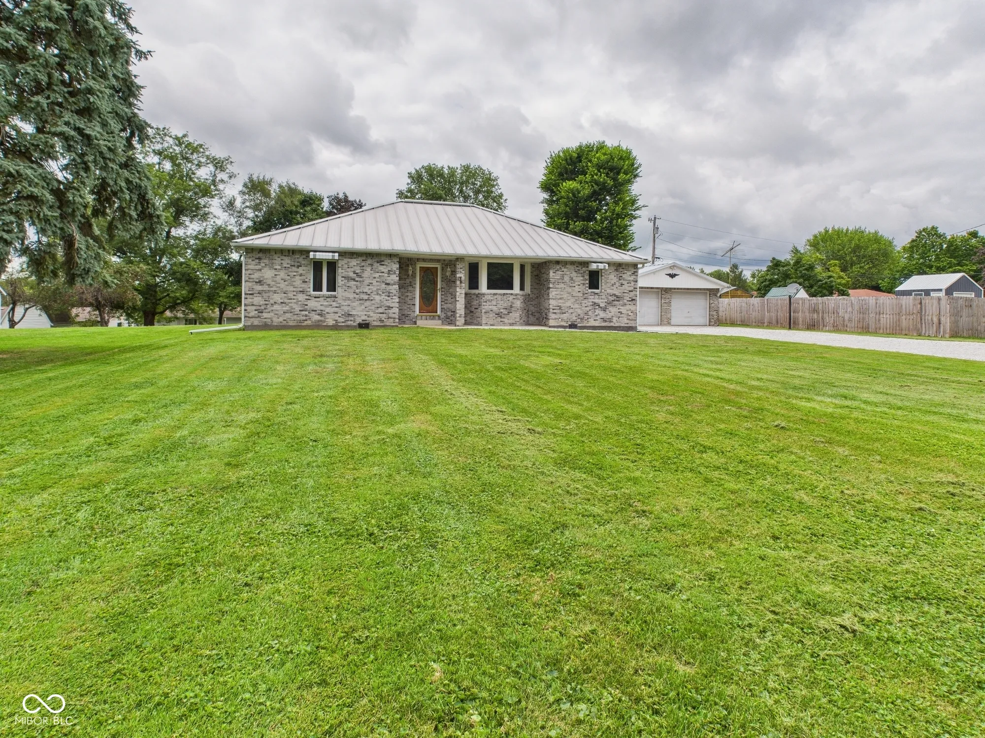 Very nice 3BD, 2BA, 1724 sf all-brick ranch in Frankton, on a .38 acre lot with huge 2 car Garage w/workshop space! Open floorplan w/gas fireplace and bay window in the spacious Living Rm and cherry wood in the versatile Family Rm! Enjoy oak woodwork and celing fans throughout the home! Large eat-in Kitchen features oak cabinets, a breakfast bar and formal Dining Area. Primary BD is a true retreat, while BD’s 2 & 3 are also generously sized with great closet space. The Main Hall Bathroom offers both a walk-in shower & heated Jacuzzi tub, while the second Bathroom is thoughtfully designed w/grab bars and a roll-in tiled shower. For added convenience, all doorways are wheelchair accessible. 10×10 bricked interior Sun Porch provides fire break protection, located just off the Laundry Rm, connects to the Garage and provides access to both the front and expansive backyard. Fiber optic internet connected! Buried utilities, durable standing seam metal roof on house and Garage, inverted quion brick corners, 50 gallon water heater, thompson water sealed plywood subfloor, 12 gauge wiring, back up gas heat, a whole-home Generac generator, house is completely fastened from roof to ground with straps to solid poured foundation blocks provides safety in severe storms, all this is above a normal built house!