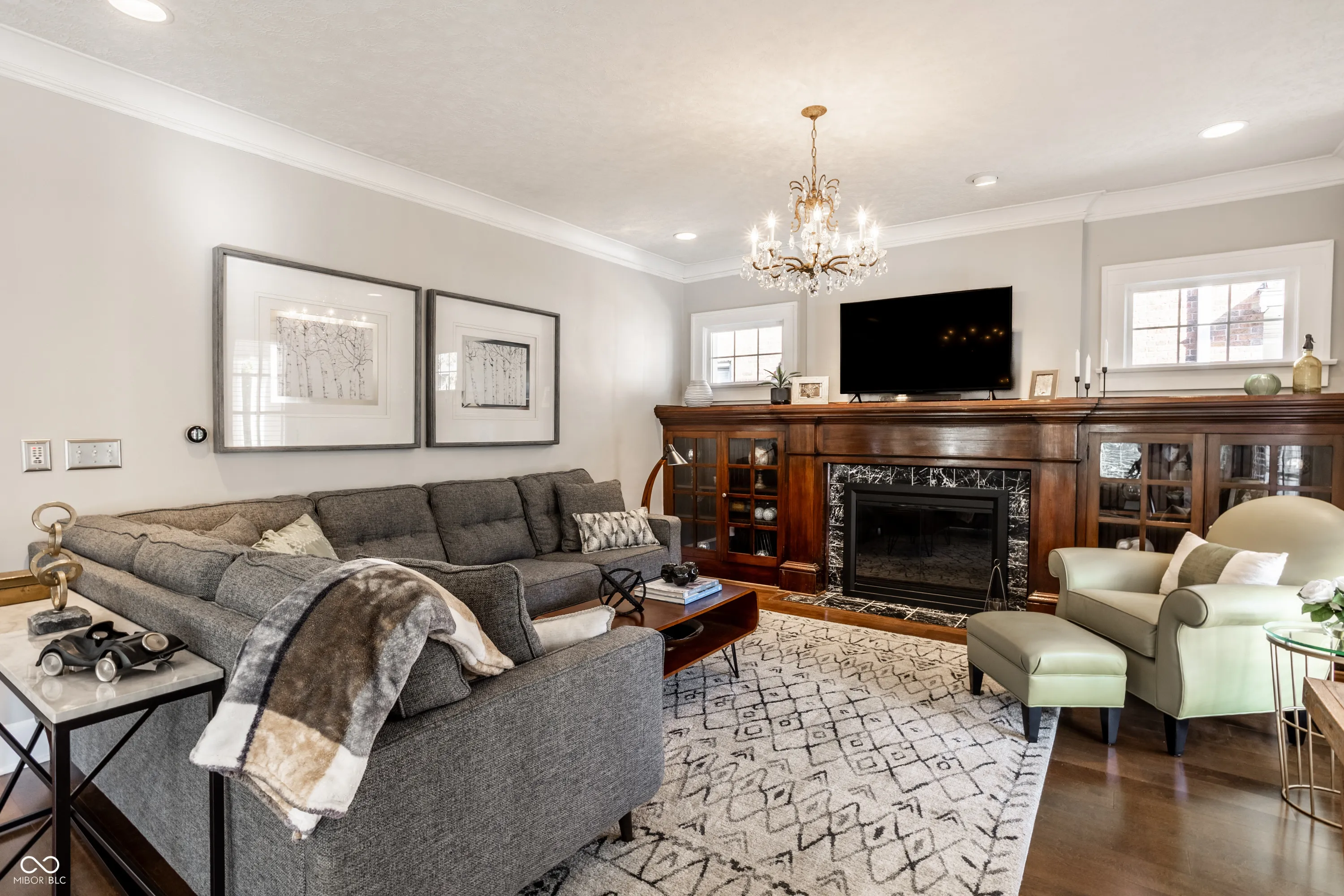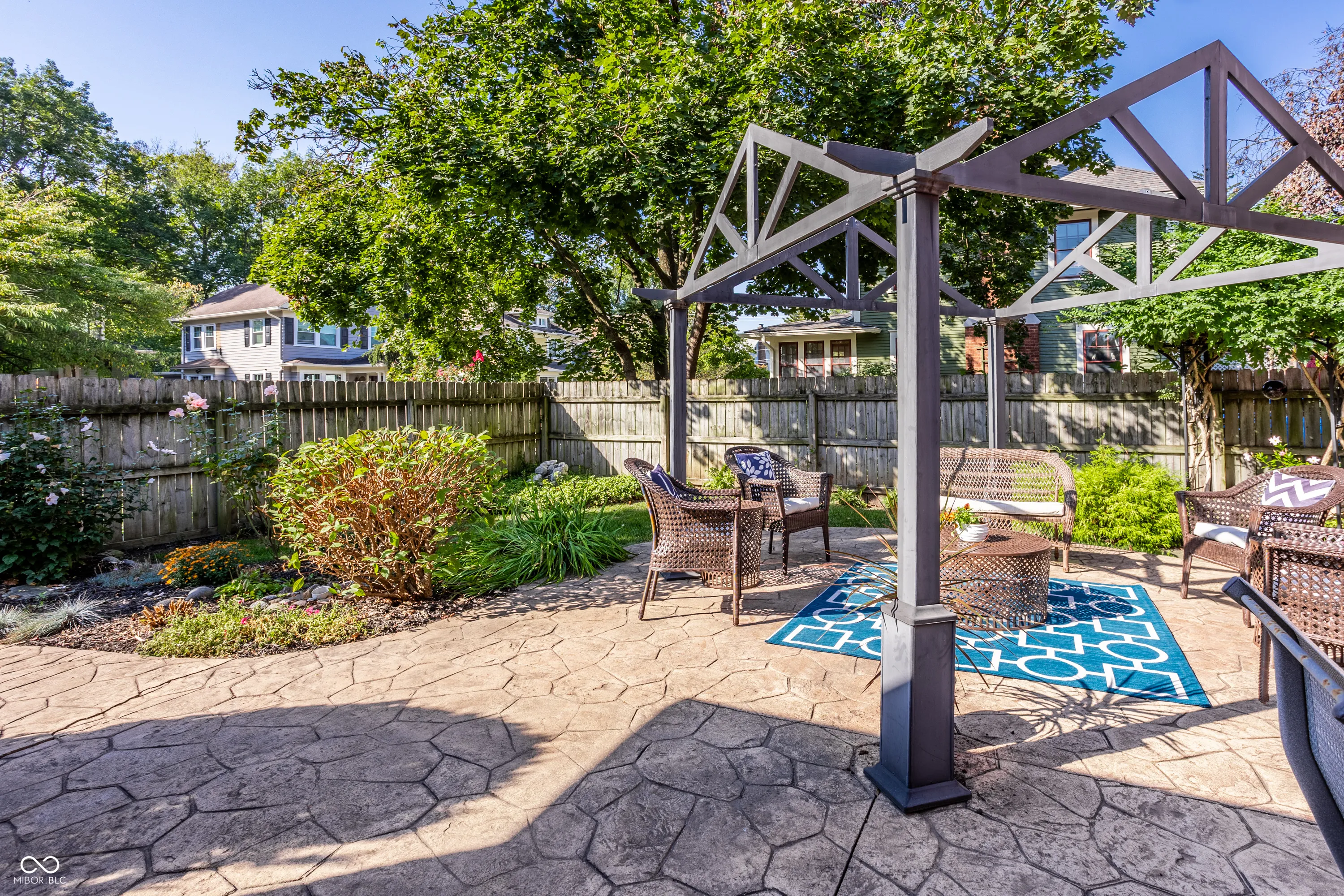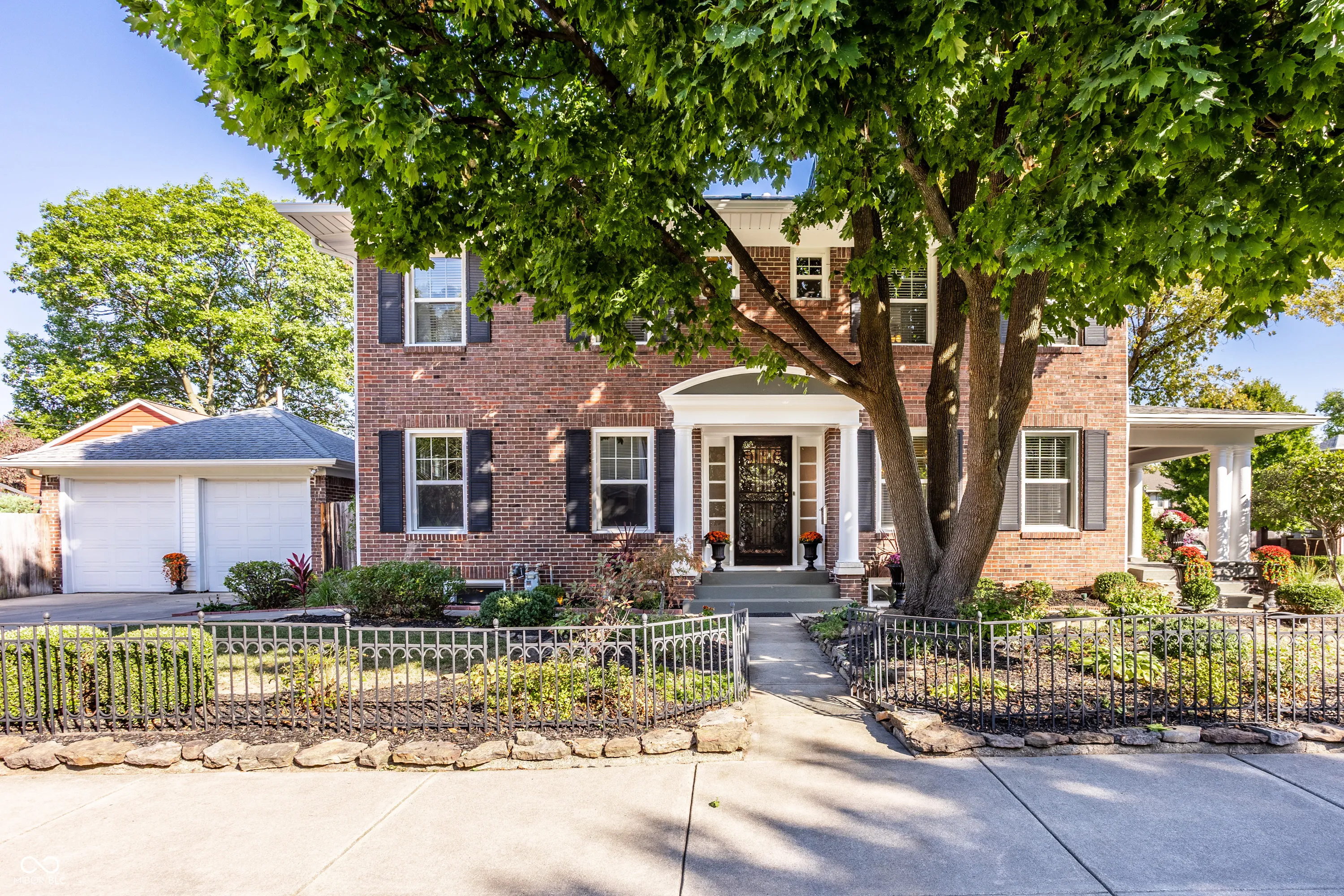 Who’s ready to move? This two story brick colonial is prepped & ready to go. Excellent finishes throughout. Three bedrooms/2.5 baths with updates. Exquisitely landscaped with perennials & a few annuals. Mature & sm trees for shade/interest. Dramatic side entrance greets you with LR & DR to either side. Formal LR is huge with dual French doors to covered front porch & gas FP ready for this Fall. Crown molding, chandeliers plus updated window. Richly stained mantle & built-ins to either side of the FP. There’s an audio system that runs almost throughout the home incl front porch & phenomenal rear courtyard where you’ll find the stamped concrete patio & pergola. So many lovely evenings have been spent here entertaining & relaxing in this ultimate oasis. Only the true host/hostess will appreciate the joy of the formal dining room. It, too, includes audio, crown molding and swift access to the kitchen. Hang on to your hats when you experience the generous kitchen not often found in historic properties. Unique concrete counters & higher end appliances prevail. Pull up bar for the quick bite and absolutely invaluable when throwing a party. Lots of open circulation as you know everyone always ends up in the kitchen! Deep pan sink, glass back splash, beverage cooler as well. Perfect grill spot just outside the back door. Basement is pristine. W/D incl. Your blank canvas but please consider filling the middle space with your personal wine vault. Upstairs has stunning refinished original hardwoods, loads of light, window blinds and perfect finish. Don’t miss the landing window seat! Dual HVAC/owned softener. WH one year old. 2car garage w big windows/2openers. EASY access DT (10min), Broad Ripple (about 10), & Butler U. Make your appointment today to see this GEM!