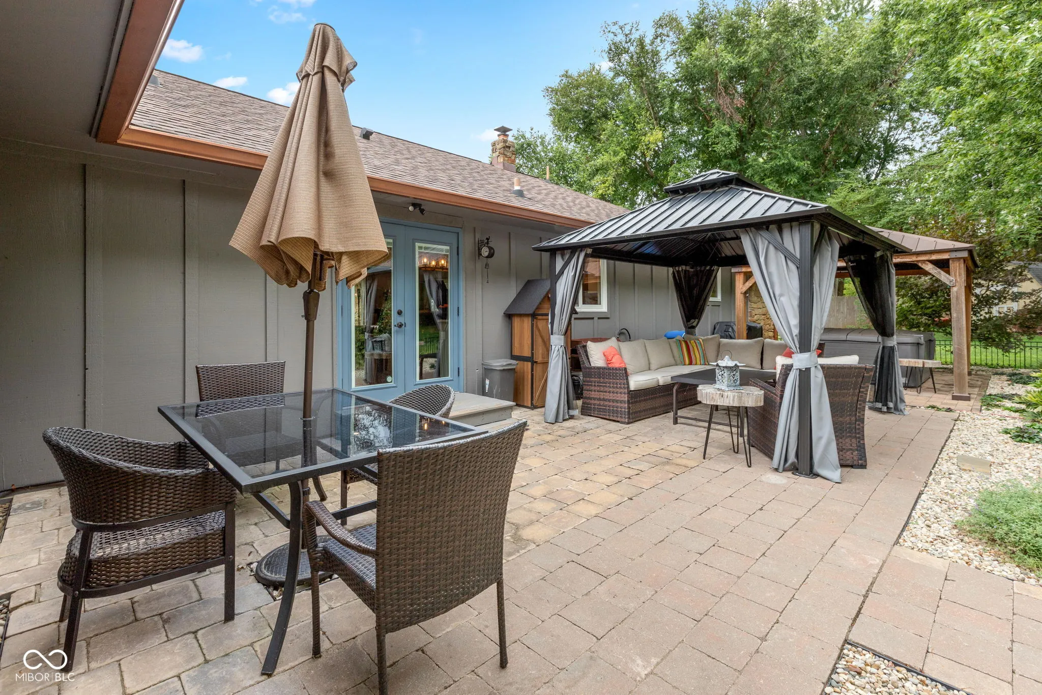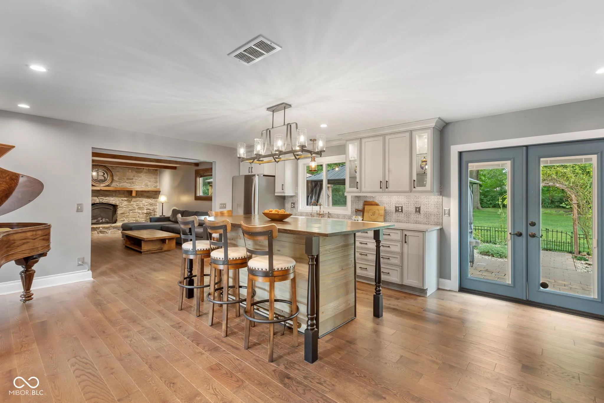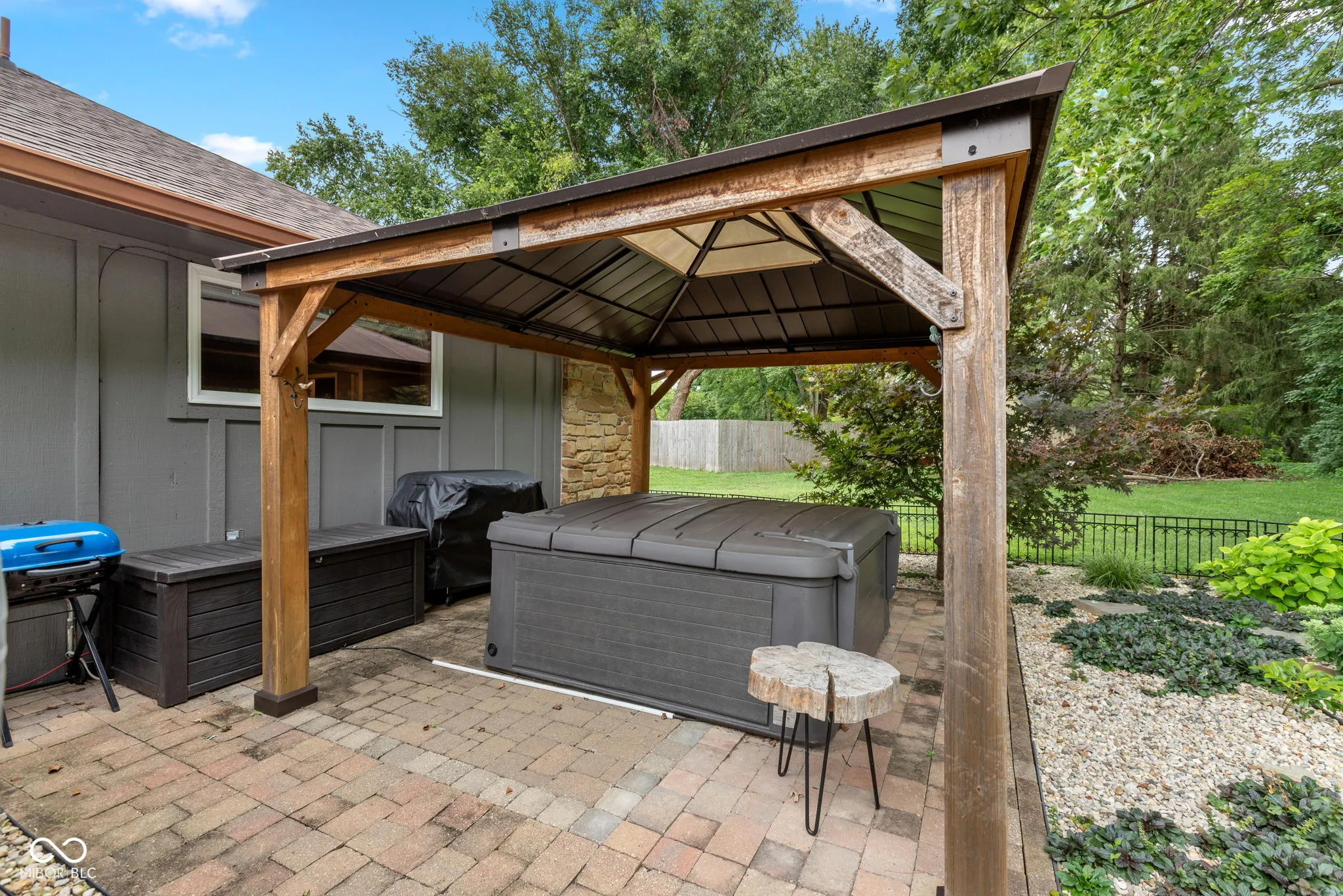 Welcome to 377 N Windmill Trail, where timeless stone architecture meets refined modern living in Greenwood’s coveted Windsong community. This 4-bedroom, 3-bath ranch offers the rare ease of single-level living without compromise-designed for those who value both beauty and comfort. From the moment you arrive, the curb appeal captivates with mature trees, charming window boxes, and a welcoming front entry. Inside, natural light spills across wide-plank hardwoods, drawing you into an open, flowing layout. The chef’s kitchen is a true showpiece-anchored by an expansive island, custom cabinetry, copper fixtures, and designer tile-opening seamlessly to a cozy fireside living room with wood-beamed ceilings. The primary suite is a private sanctuary, where elegant crown molding and tranquil views set the tone for rest, and the spa-worthy bath delights with marble finishes, double vanity, and a walk-in rain shower with dual showerheads. Each additional bedroom offers thoughtful design and flexibility for guests, hobbies, or home office needs. Outdoors, retreat to your own backyard haven. Entertain beneath the covered patio, unwind in the hot tub beneath a custom pergola, or simply enjoy the manicured landscaping and peaceful surroundings. The flower garden is complete with an irrigation system which insures the flowers/plants will continue to thrive with minimal effort. Every detail has truly been carefully curated to blend style with livability. Set in a desirable, established neighborhood just minutes from Greenwood’s best shopping, dining, and amenities, this home is more than a residence-it’s a lifestyle. A rare opportunity to enjoy single-level elegance in one of Johnson County’s most sought-after communities.