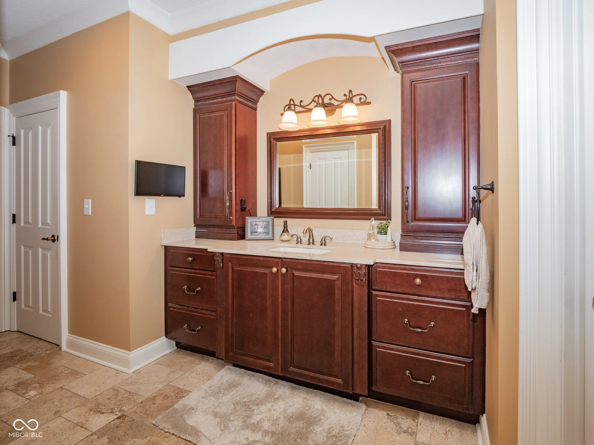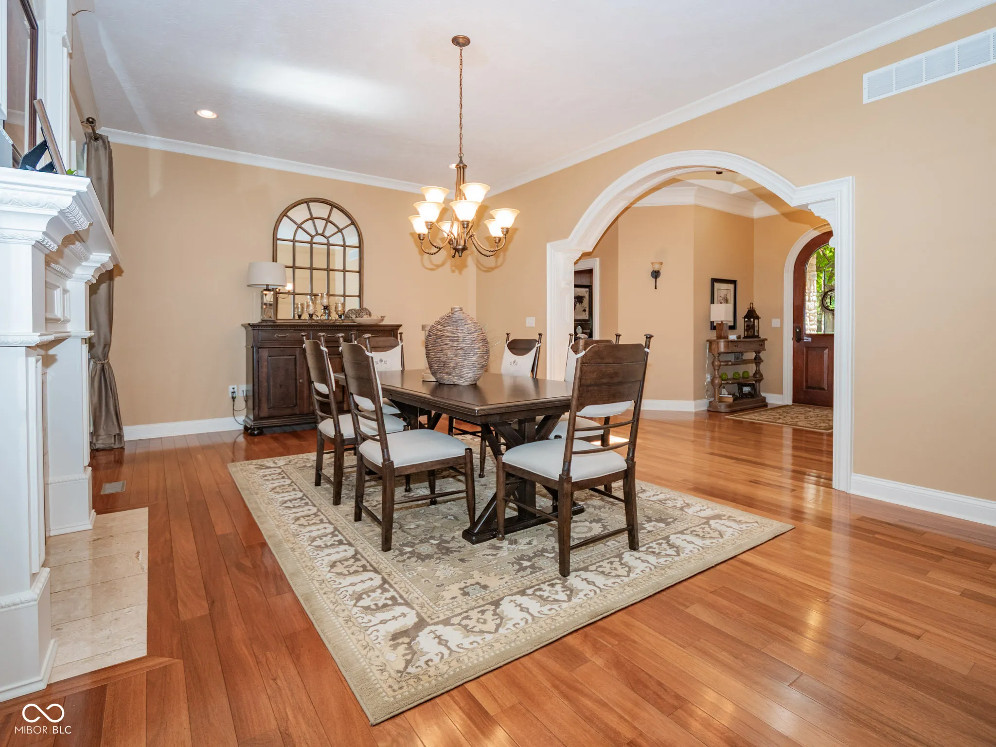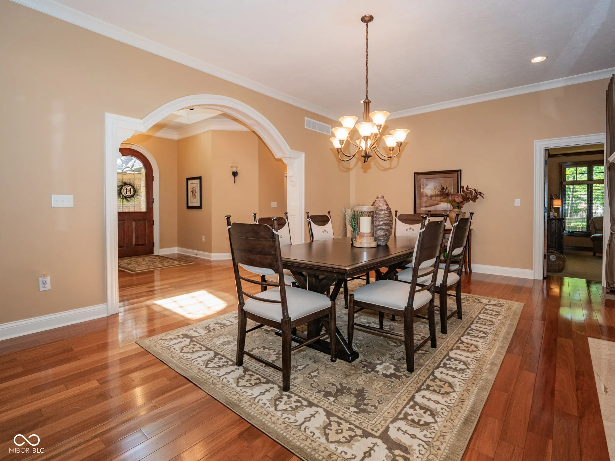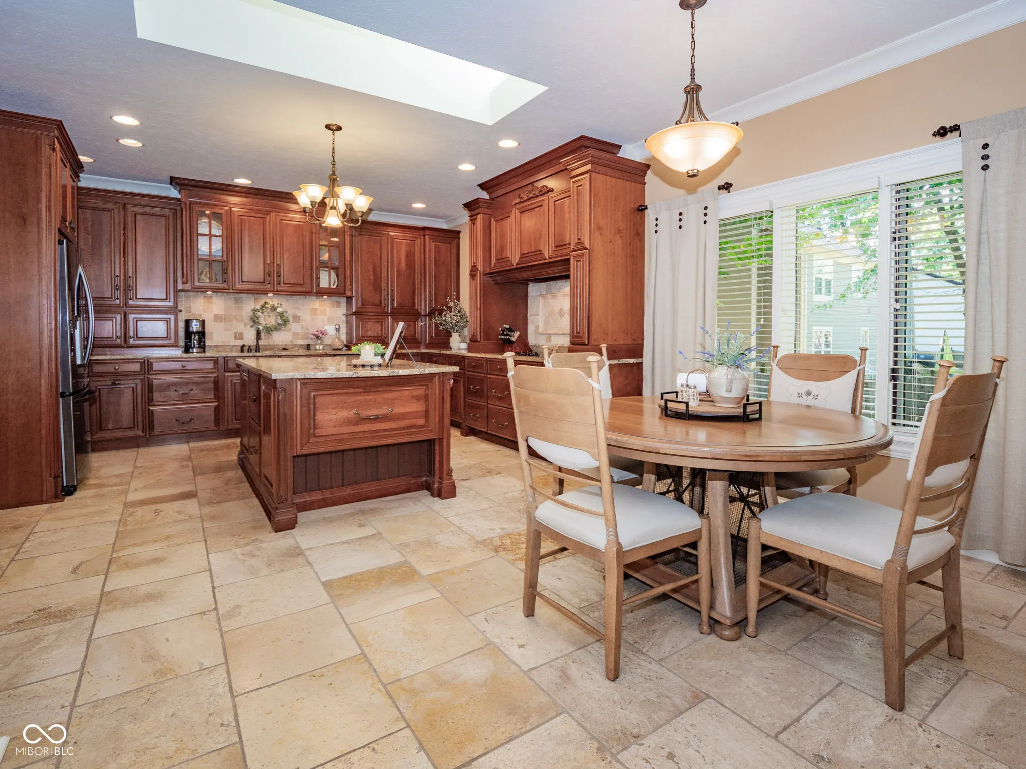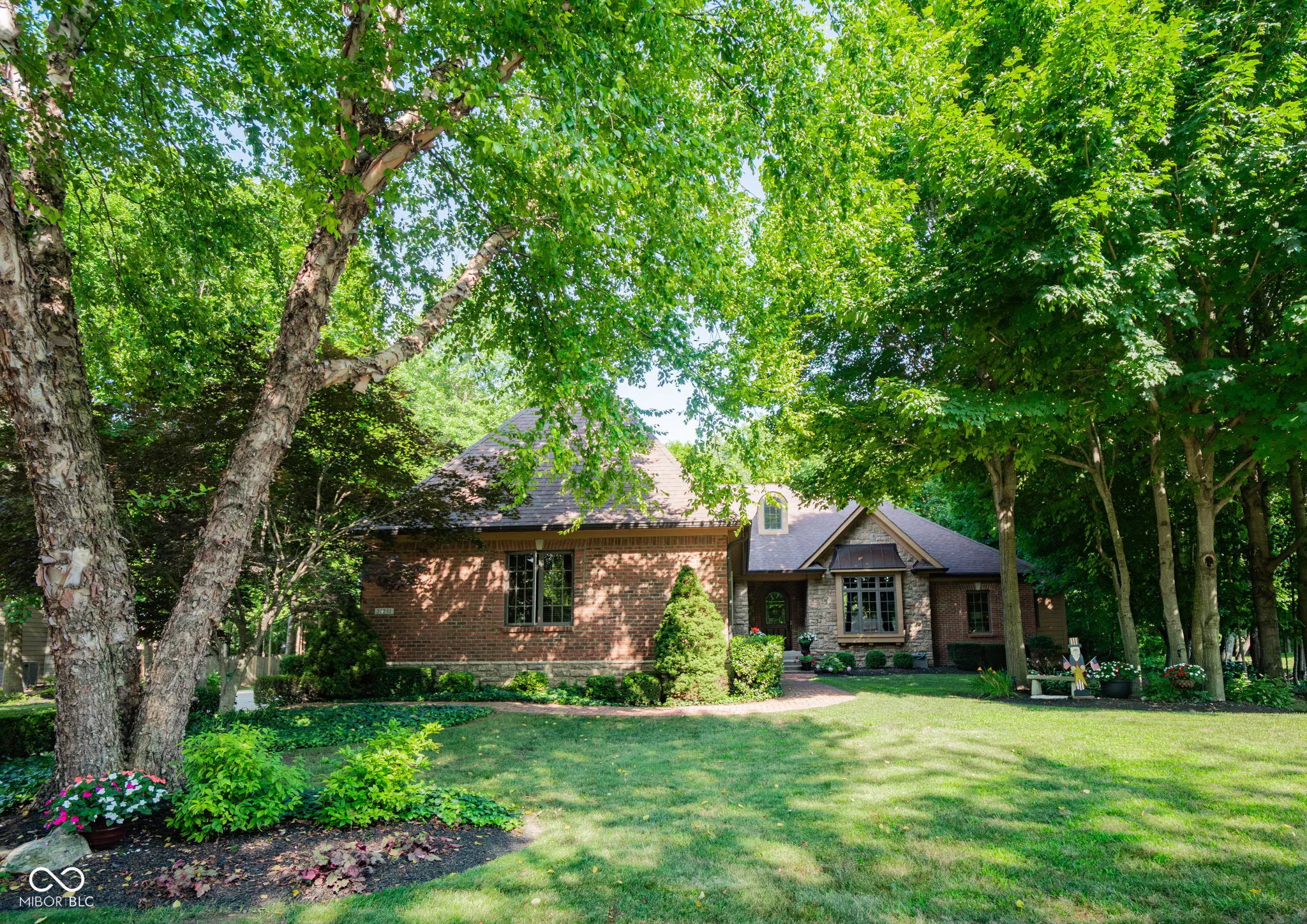 Luxury Living Meets Thoughtful Design in This Custom-Crafted Home near Morse Reservoir. Architectural artistry abounds in this 4-BR, 3.5-BA, one-level home,showcasing stunning upgrades and a beautifully finished lower level. Set on a lushly landscaped 3/4-acre lot, the property offers a 3 car garage, and peaceful privacy, complete with a charming “secret garden” tucked amid the trees. As you arrive, accents of brick, stone and copper capture your attention as well as a stunning arched wooden entry door, hinting at the craftsmanship found inside. A bright open floor plan welcomes you with elegant details–an arched entry to the formal dining room is adorned with custom mill work and a cozy fireplace. The floor-to-ceiling windows frame serene views of the covered porch and inviting patio, perfect for outdoor entertaining or relaxing evenings. At the heart of the home, a warm hearth room with fireplace opens to the delightful eat-in kitchen where granite countertops, an expansive center island, and signature cherry cabinetry meet superior functionality. Thoughtful storage solutions include a spacious pantry, custom pull-outs, spice drawers, dual trash cabinets, and hidden electrical outlets-a true cook’s dream. The wood-paneled library with built-in bookcases offers a sophisticated home office or quiet reading retreat. The primary suite provides a sanctuary with tray ceilings, a spa-inspired bath featuring a travertine walk-in shower, soaking tub, and a custom walk-in closet complete with built-ins and optional in-closet laundry hookups. 2nd bedroom on main level. The finished lower level expands your living space with full kitchenette-including a bar and eating area-plus a spacious great room, rec area, two generous bedrooms, a full bath, ample storage and a laundry room. Combining warmth, elegance, and livability, this exceptional home is perfectly designed for empty nesters or multi-generational living, offering both comfort and sophistication at every turn.