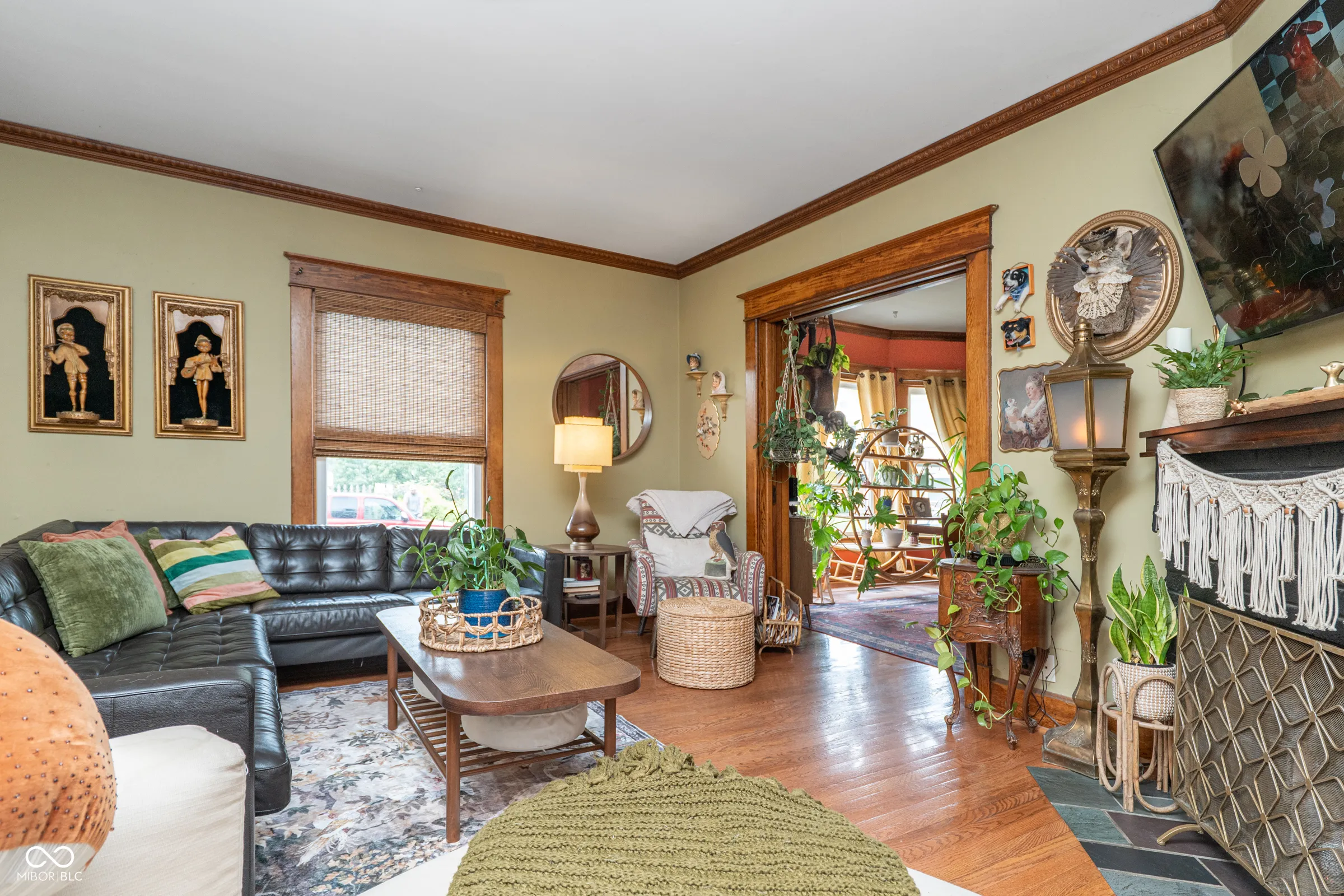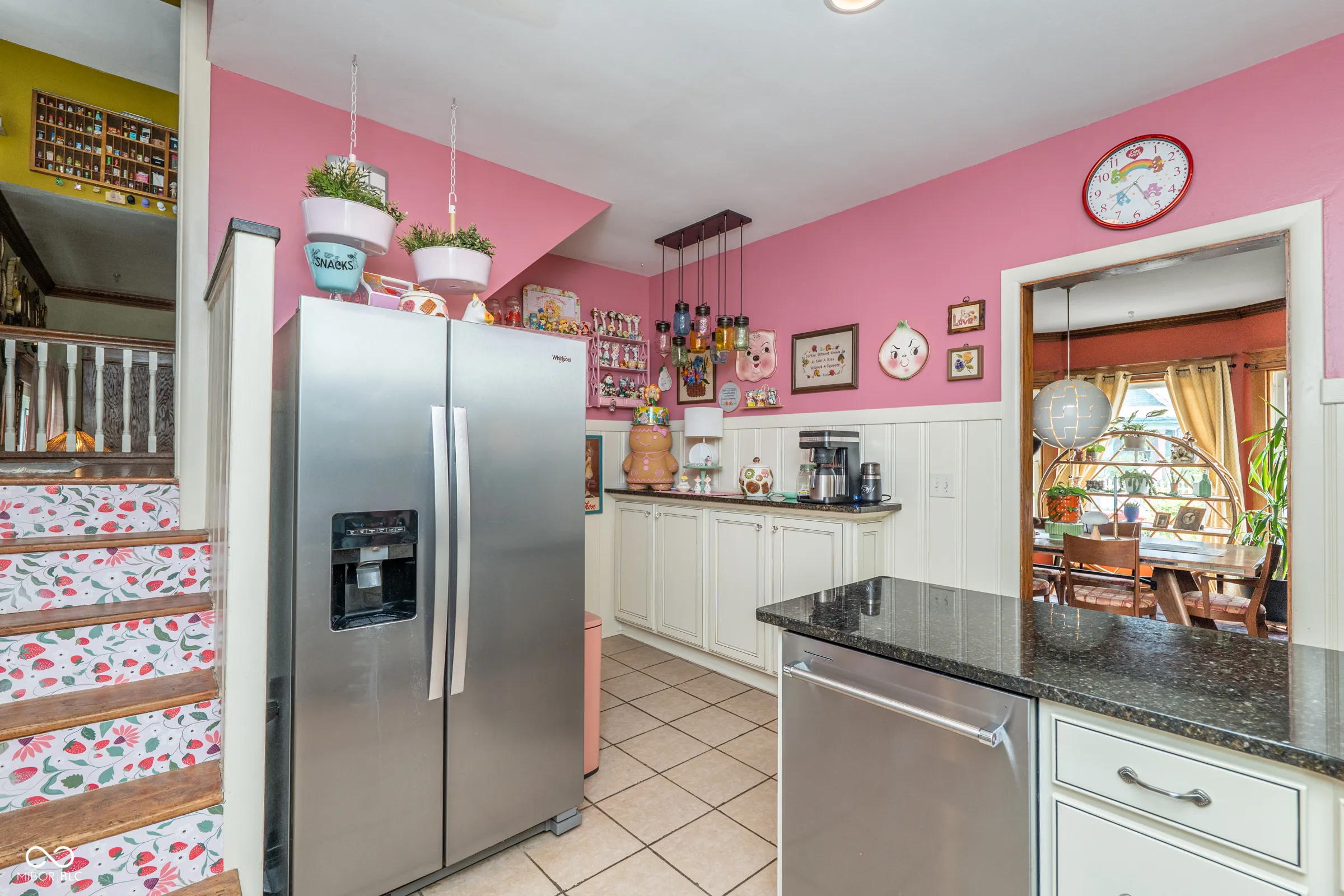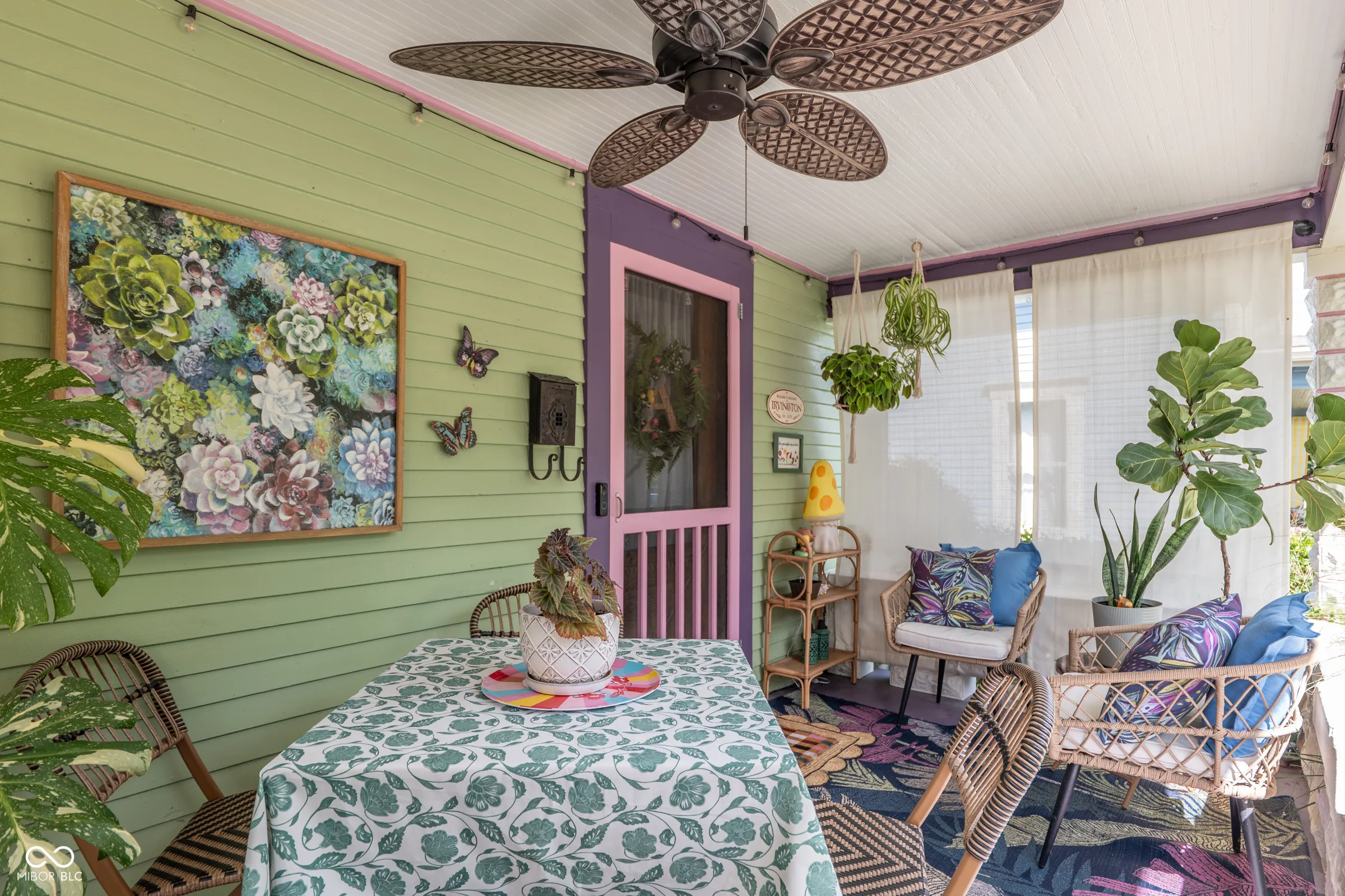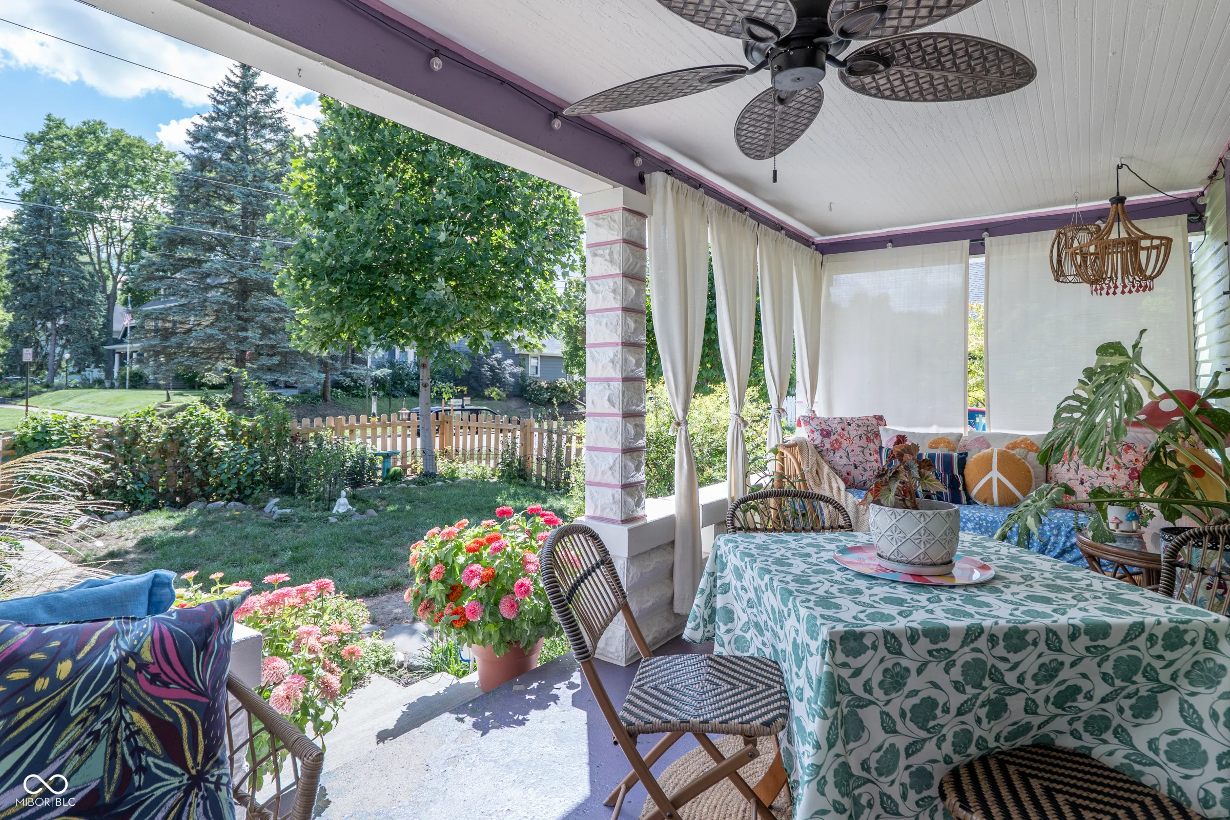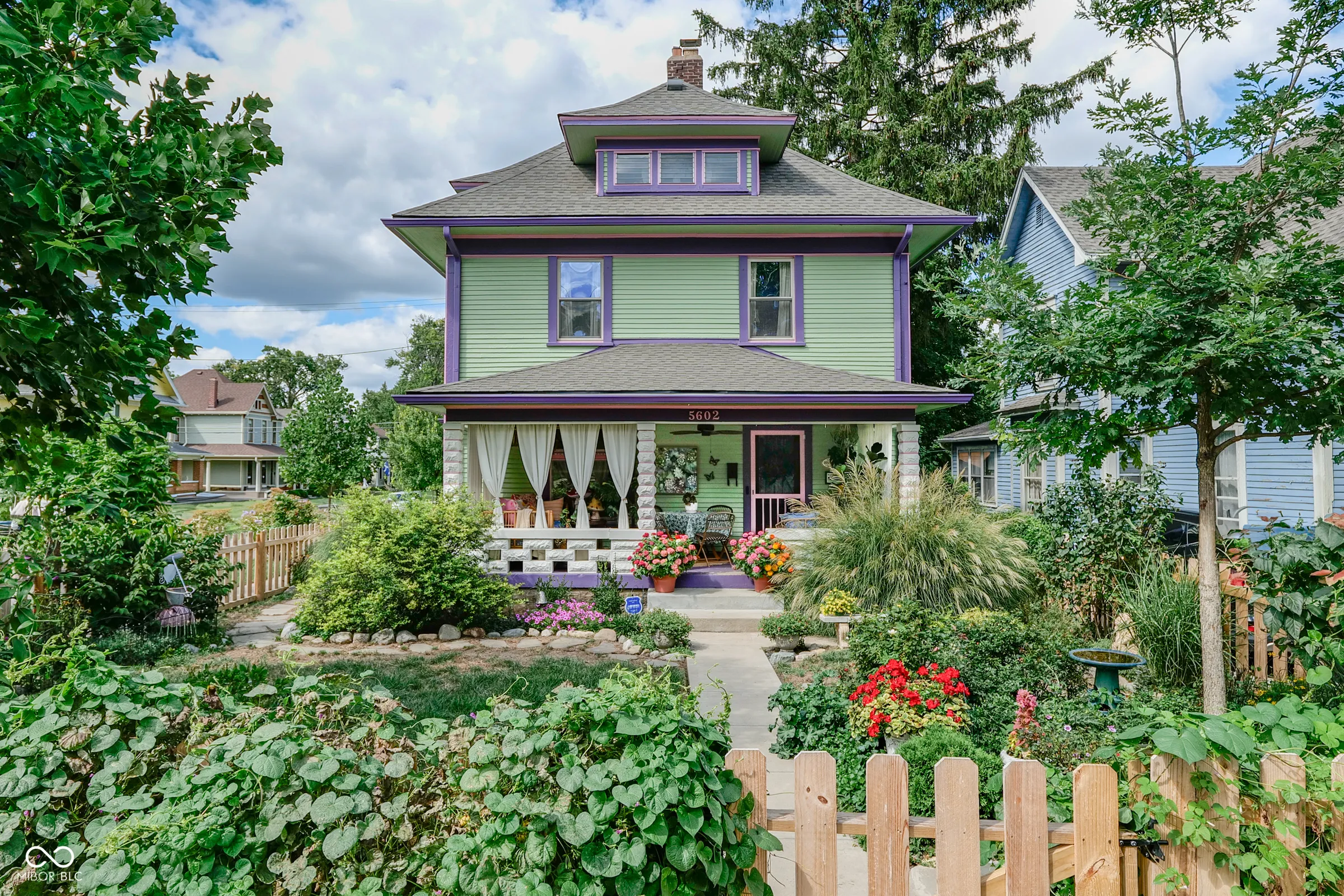 Cheerful, colorful, and full of historic charm, this Irvington home is a true standout! The lushly landscaped front yard turns heads and sets a storybook scene as you make your way to the covered front porch – an ideal place to relax and enjoy the prime neighborhood setting. Step into the welcoming entryway with eyecatching woodwork and a split staircase leading both upstairs and to the kitchen. The main floor unfolds into a cozy living room anchored by a fireplace, a dining room with gorgeous unpainted built-ins, and a bright, personality-packed kitchen. A handy half bath and a mudroom with main-floor laundry round out the main floor. Upstairs, you’ll find three comfortable bedrooms and a spacious full bath with classic finishes and a walk-in shower. The finished attic offers even more flexibility – perfect for a guest suite, lounging, or creative space – with its own full bathroom and storage. The property also features a 2-car garage, and the full fence, paved patio, exterior paint, and roof are all newer. And the best part? You’re in the heart of Irvington’s historic district, just a short stroll from shops, dining, and everything this beloved neighborhood has to offer. With just the right blend of whimsy, character, and updates, this home is ready for its new stewards.