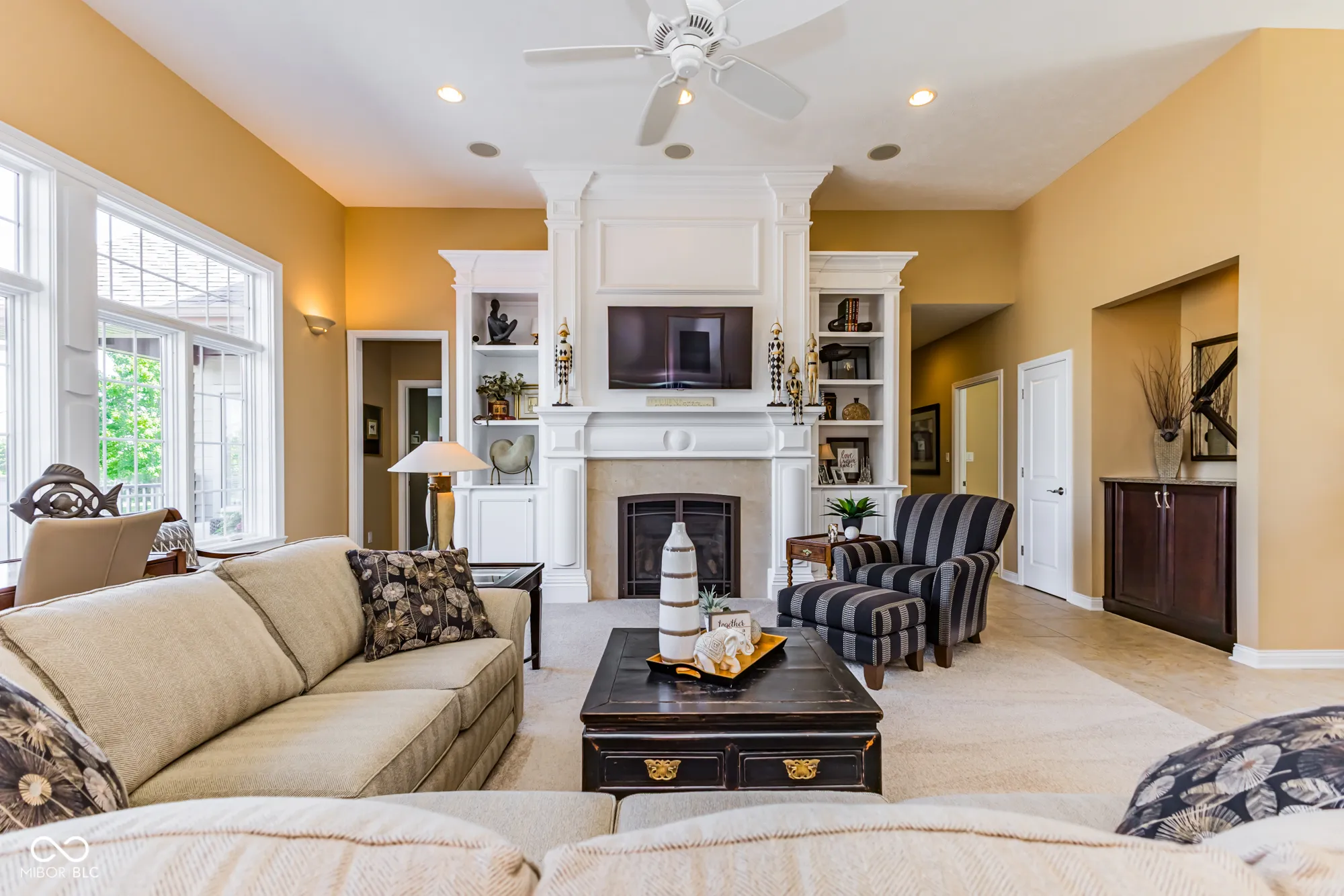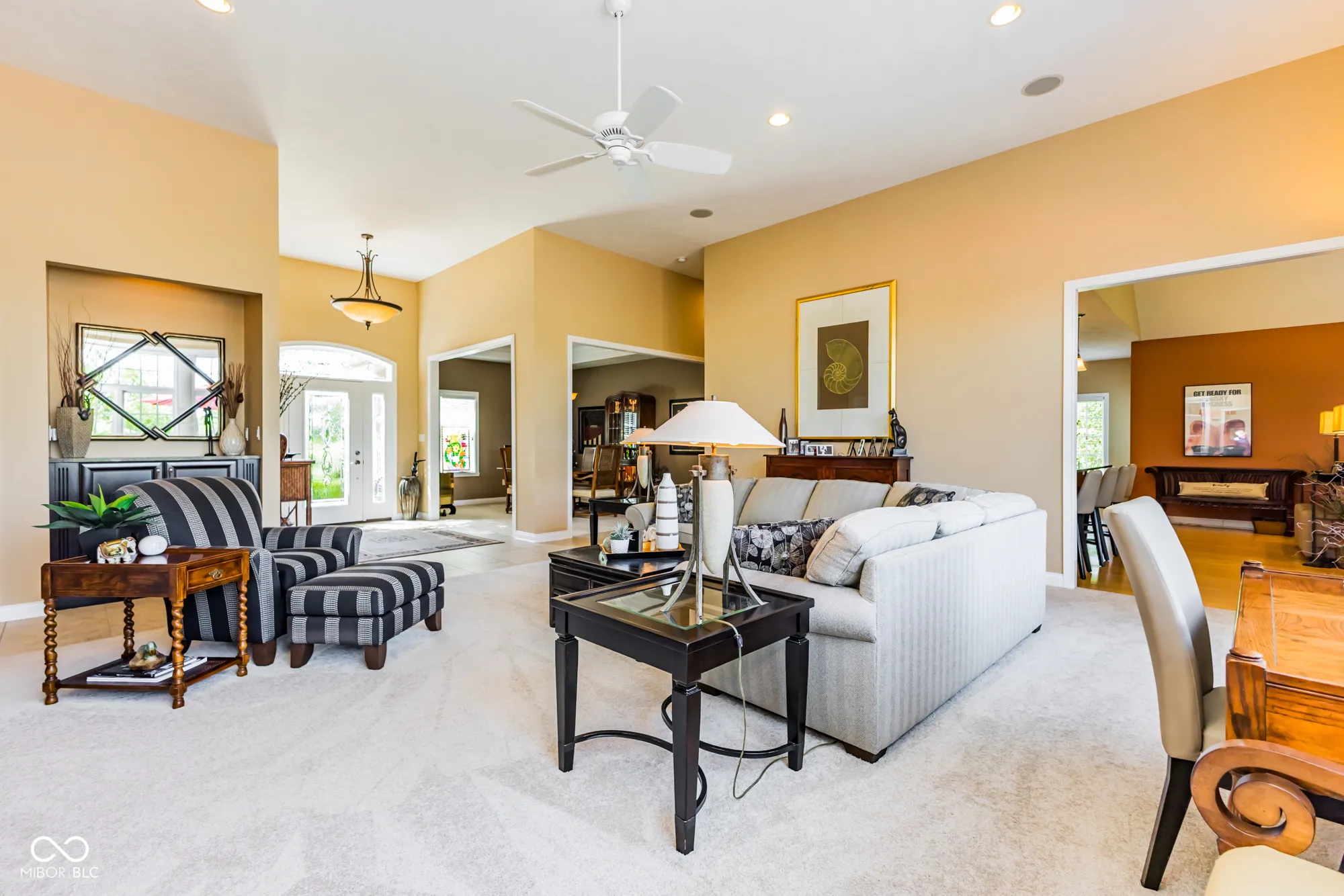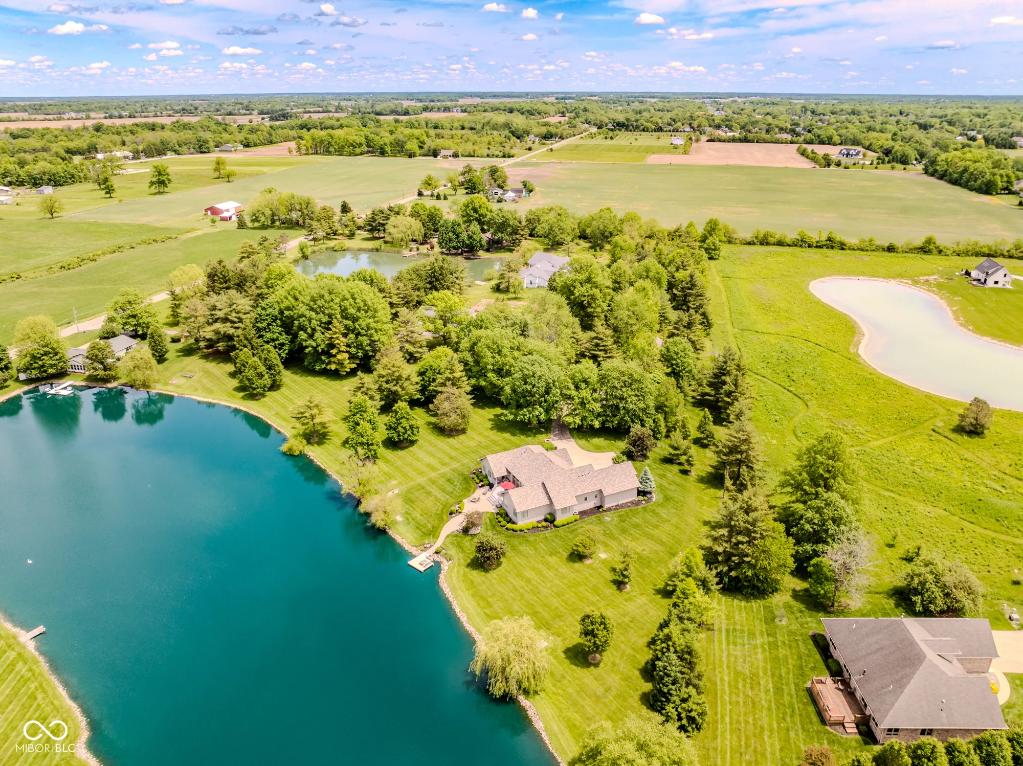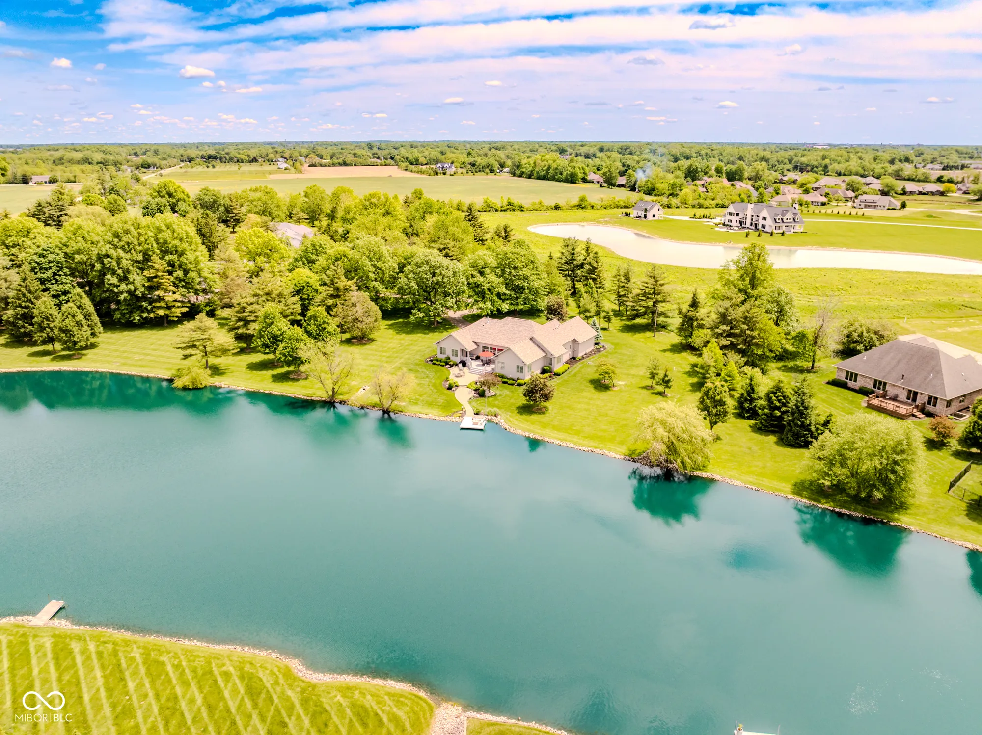 The ultimate in custom craftsmanship & privacy….An entertainer’s haven! This rare, 3 bed/2.5 bath open concept single story gem (built 2013) is located in a gorgeous, tranquil setting; adjacent to Heron Pointe. Your own peaceful retreat awaits you with 4.71 acres, beautiful fully stocked pond and 24×20 pole barn and land area for animals. It feels like a year round vacation with brilliant sunsets & resort like scenery across the pond. Upon entering, you’ll notice pond views from most of the rooms. The inviting foyer/formal living room offers 12 ft. ceiling with custom built gas fireplace & custom bookcases/shelves and a separate large family room (open to kitchen) has a soaring (15 ft.) vaulted beam ceiling. There is plenty of room for cooking in the striking kitchen w/quartz countertops, fabulous 10×8 walk-in pantry, bar space for 4 bar stools & an eat-in dining area. This same end of the house is ideal for meticulous organizers w/a large laundry room, plus a desk craft countertop area and built-in cabinets. You will treasure the smart floor plan with a glorious master retreat (with separate walk-out door to the deck) offering crown molding, 10×8 walk-in closet, separate vanity sinks & massive 9×5 tile walk-in shower. Additional touches include fabulous crown molding, custom trim, built-in display areas & cabinetry. Secondary bedroom has it’s own walk-in closet & is connected to bedroom three via Jack & Jill bathroom. NEW ROOF April 2024 (with ltd 30 yr. shingle warranty transferred to buyer), new water softener May 2025, exterior paint 2020. Car enthusiasts, hobbyists & animal lovers will love the 24×20 pole barn located on the back 1.5 acres. Other outdoor highlights include: 900 feet of field lake shoreline and dock, numerous trees, large paver patio with gas firepit, massive composite deck, & accent post lights at driveway & walkway from patio to dock. Fantastic location in a country setting yet just a few minutes to town and 332/I69.