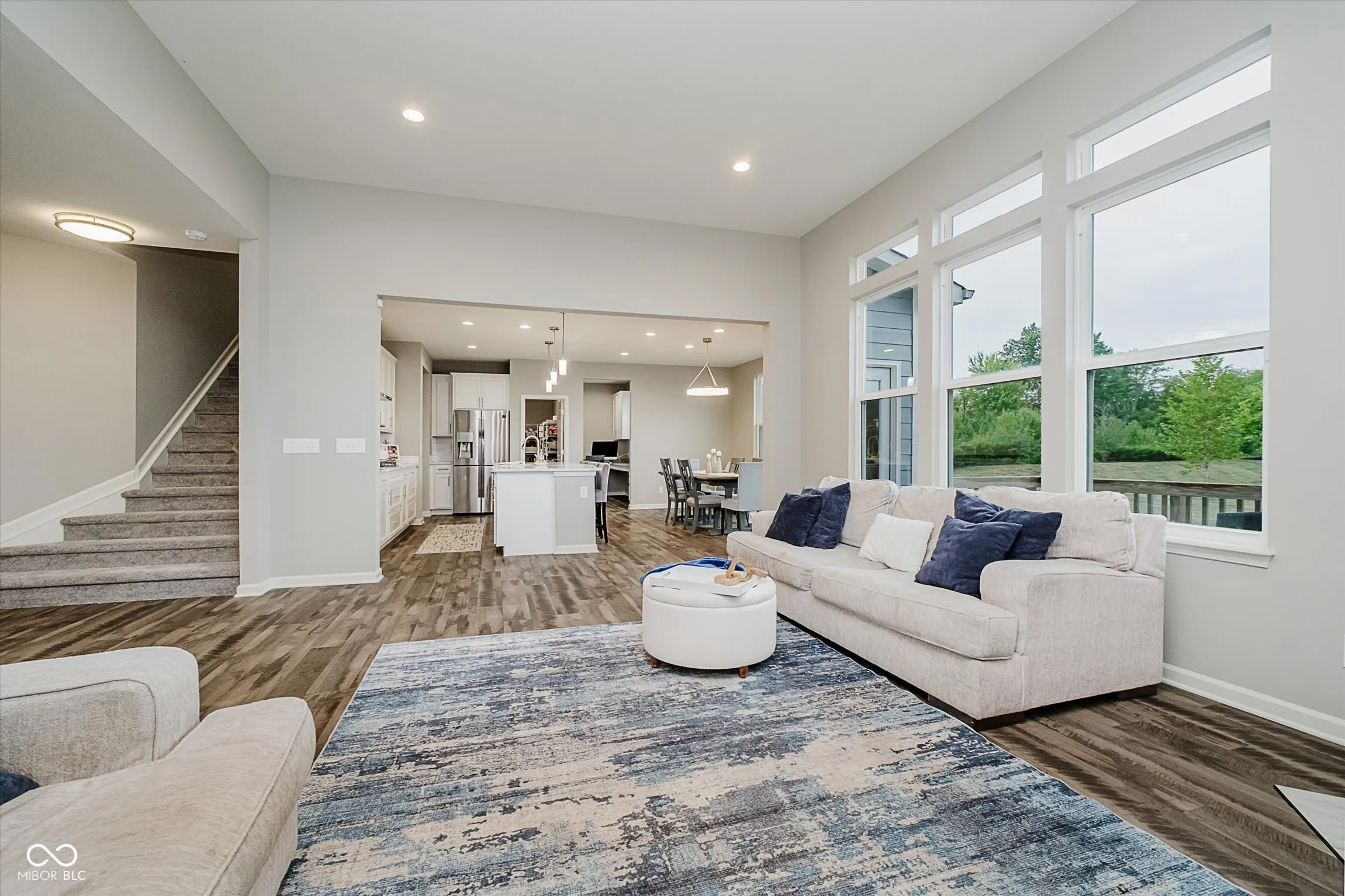 Seller is offering a 2/1 rate reduction-see your agent for details. Back on the market due to no fault of the seller. Welcome to this stunning 5-bedroom home, just five years young, located in the desirable Copper Run neighborhood of West Carmel! Designed for comfort and style, it features a chef’s kitchen with stainless steel appliances, a large center island, walk-in pantry, and a charming cafe-style dining area. The spacious great room boasts 11- foot ceilings and walls of windows that flood the open floor plan with natural light. Just off the kitchen, you’ll find a versatile Personal Planning Center/office in addition to a separate den, offering flexible work or study spaces. Fresh paint throughout the entire home, brand-new carpet in all bedrooms and the upstairs rec room, plus updated lighting in kitchen, den and upstairs hallway make this home move-in ready. The upstairs game/rec room adds even more space for fun activities or relaxation. The lot itself is a true standout-bordered on one side by open space with no neighboring home, and facing a serene, forest-like private property. Enjoy an abundance of green space in the backyard with a pond in the distance, along with the peace of no through traffic. Relax on the newly stained deck and take in the tranquil views. The unfinished basement offers incredible potential with a rough-in for a full bath and a large egress window for natural light- ready for your personal touch. All of this is paired with award-winning Carmel schools, including Indiana’s #1 ranked elementary and middle schools. Don’t miss the opportunity to make this exceptional home yours.