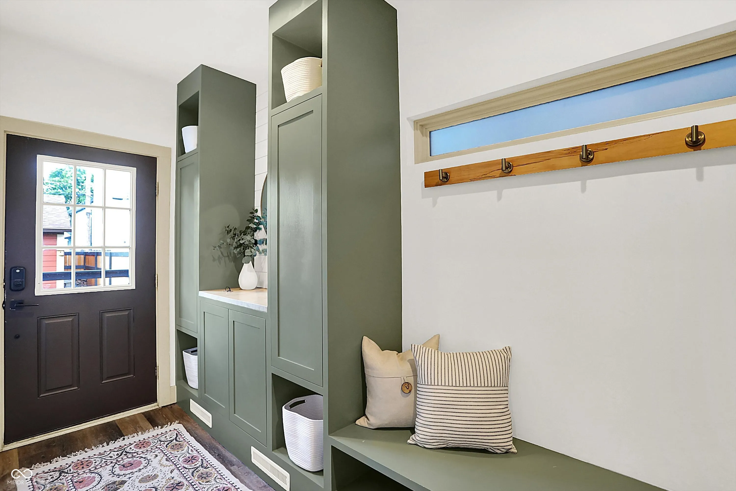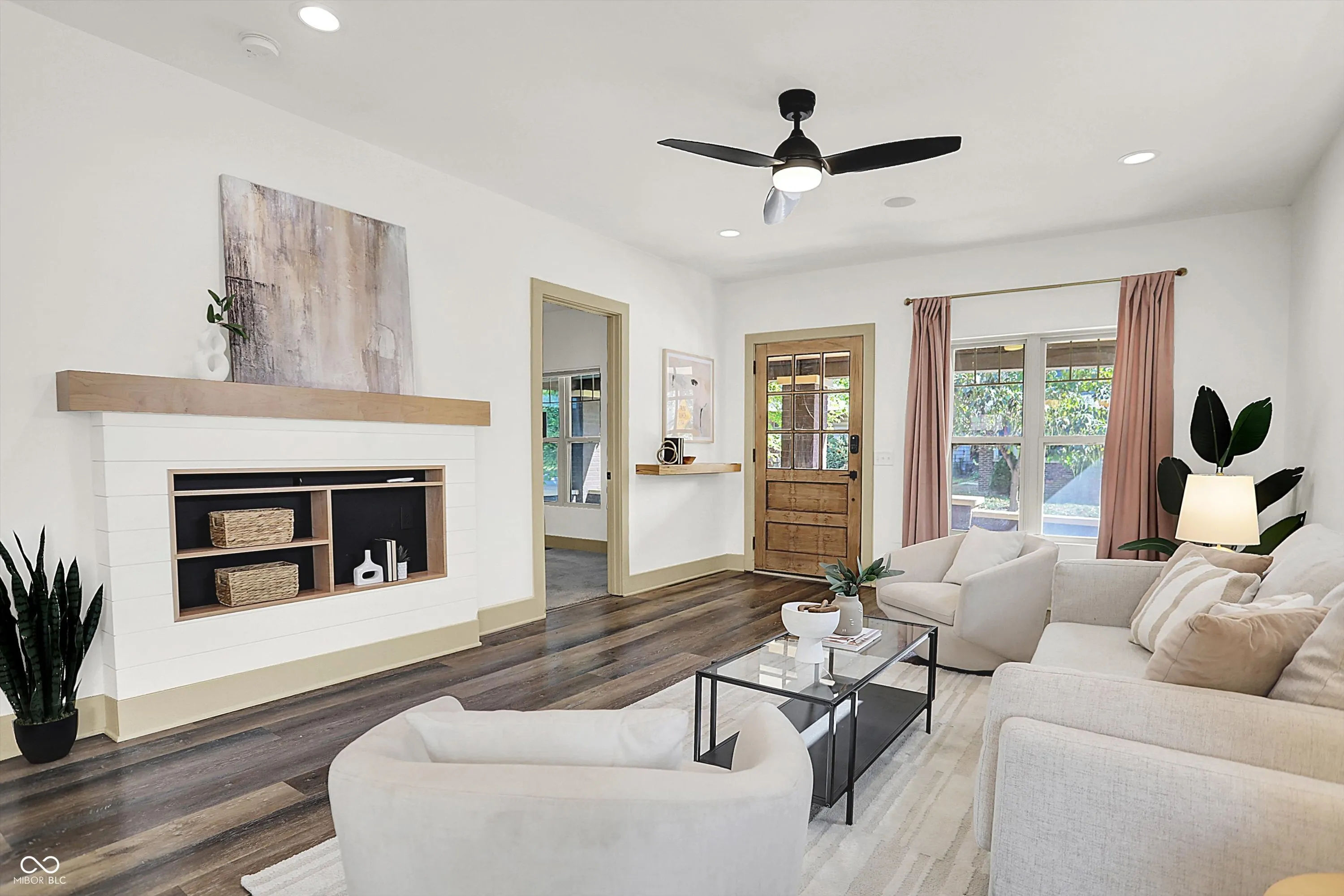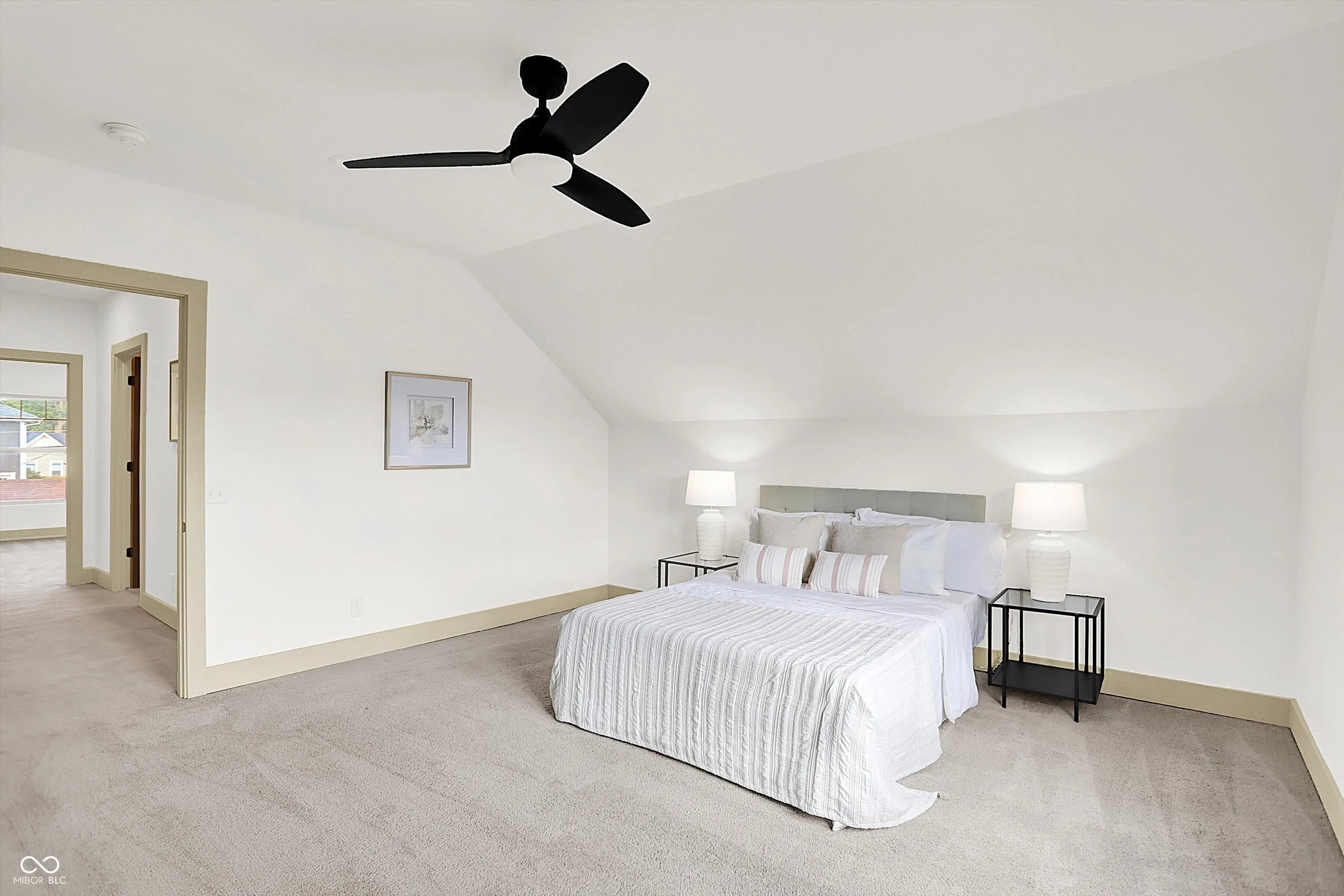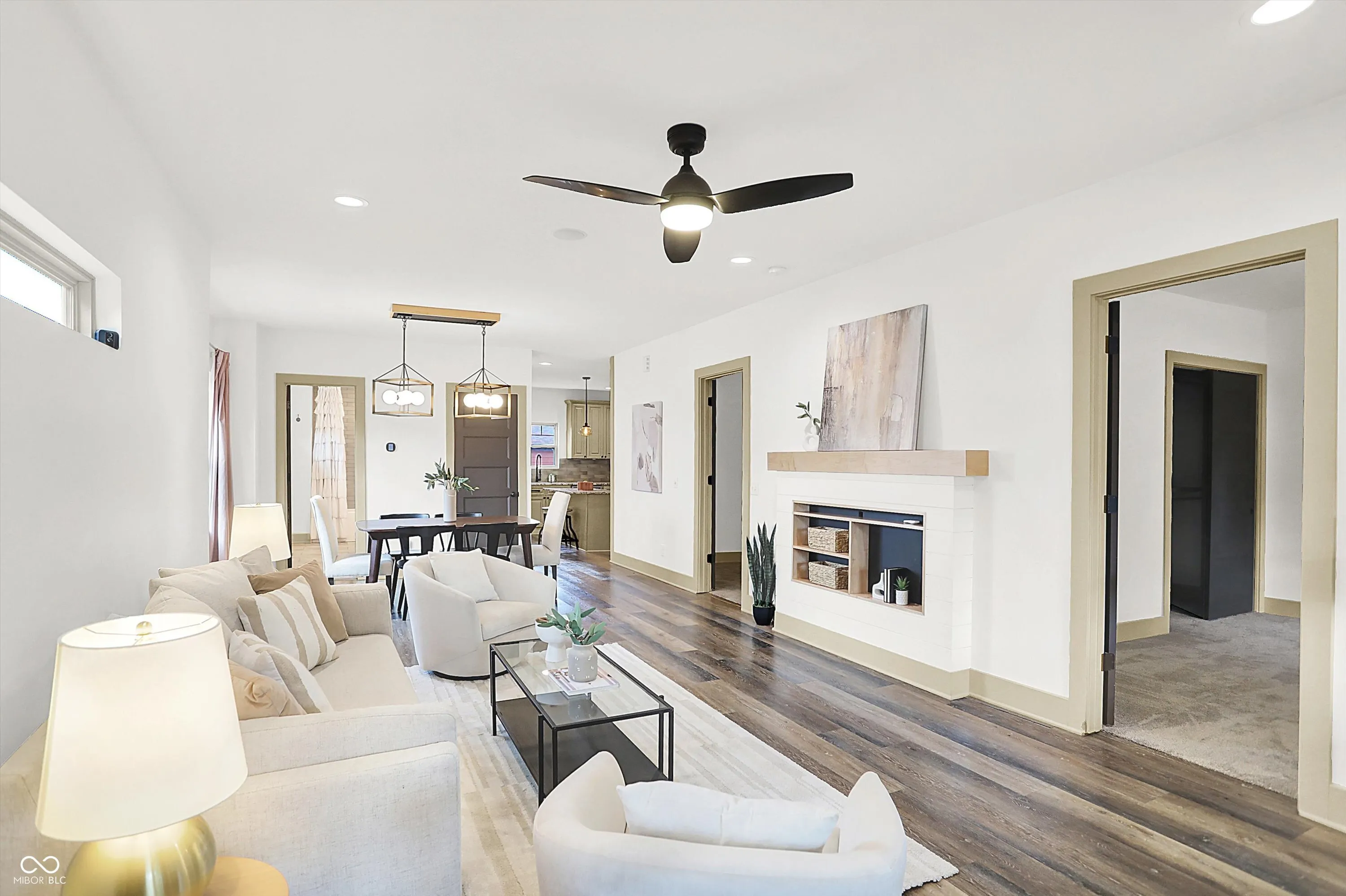 This home screams modern charm! Welcome to this updated 4 bedroom, 2 bath home in Bates-Hendricks. Inside, you’ll find an open and inviting layout with two bedrooms and a full bath on the main level plus two more bedrooms, second full bath, and a loft upstairs. You’ll love the spacious primary bedroom! The updated, large full bath upstairs features a double-sink vanity, garden tub, and tiled shower for a true retreat. The updated kitchen (2018) blends style and function with beige cabinets, granite countertops, a center island, stainless steel appliances, and a wine/bar refrigerator. Vinyl hardwood flooring runs throughout the living, dining, kitchen, and mudroom areas, while the main-floor bedrooms feature brand new carpet (2025). The mudroom/laundry combo is complete with custom built-in shelving for added storage. Enjoy the outdoors with a large covered front porch and a spacious back deck with a built-in grill, surrounded by custom fencing for privacy. An oversized one-car garage with bump-out adds even more versatility. Additional updates include a new roof, furnace, A/C, water heater, and appliances (all 2018), composite siding, built-in surround sound system, and modern finishes throughout. Located in Bates-Hendricks, this home is minutes from Fountain Square, Garfield Park, Lucas Oil, Gainbridge, and all that downtown Indy has to offer. Perfect for those who want both convenience and character in their next home.
