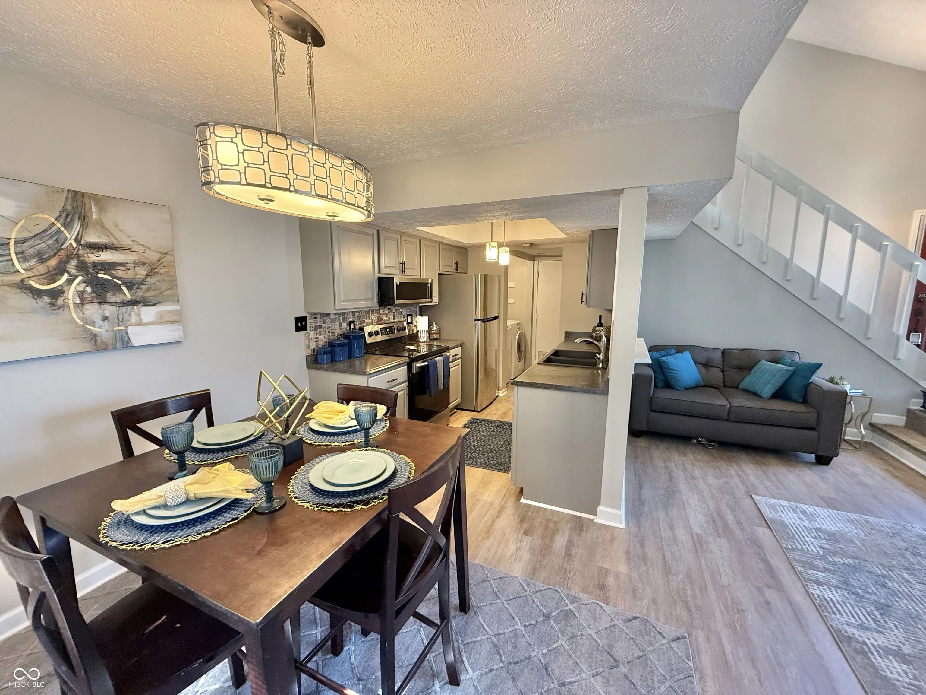 It’s not about the size of the home – it’s about making dreams come true for the next owner. Welcome to this beautifully updated 2-bedroom, 1.5-bath home in the desirable Fox Ridge Community in Wayne Township. From the moment you step inside, you’ll feel right at home. The open-concept floor plan features a two-level living room with a painted staircase that adds charm and character. The kitchen comes equipped with appliances, freshly painted cabinets, and new hardware, making it both functional and stylish. Upstairs, you’ll find two bedrooms – one currently styled as a home office, and the other designed as your private bedroom. The full bathroom has been tastefully updated with a new vanity, modern lighting, and ceramic tile. Throughout the home, you’ll enjoy fresh paint, new laminate flooring, and move-in-ready condition. Whether you prefer morning coffee on the front porch or quiet evenings on the private patio, this home offers comfort inside and out.