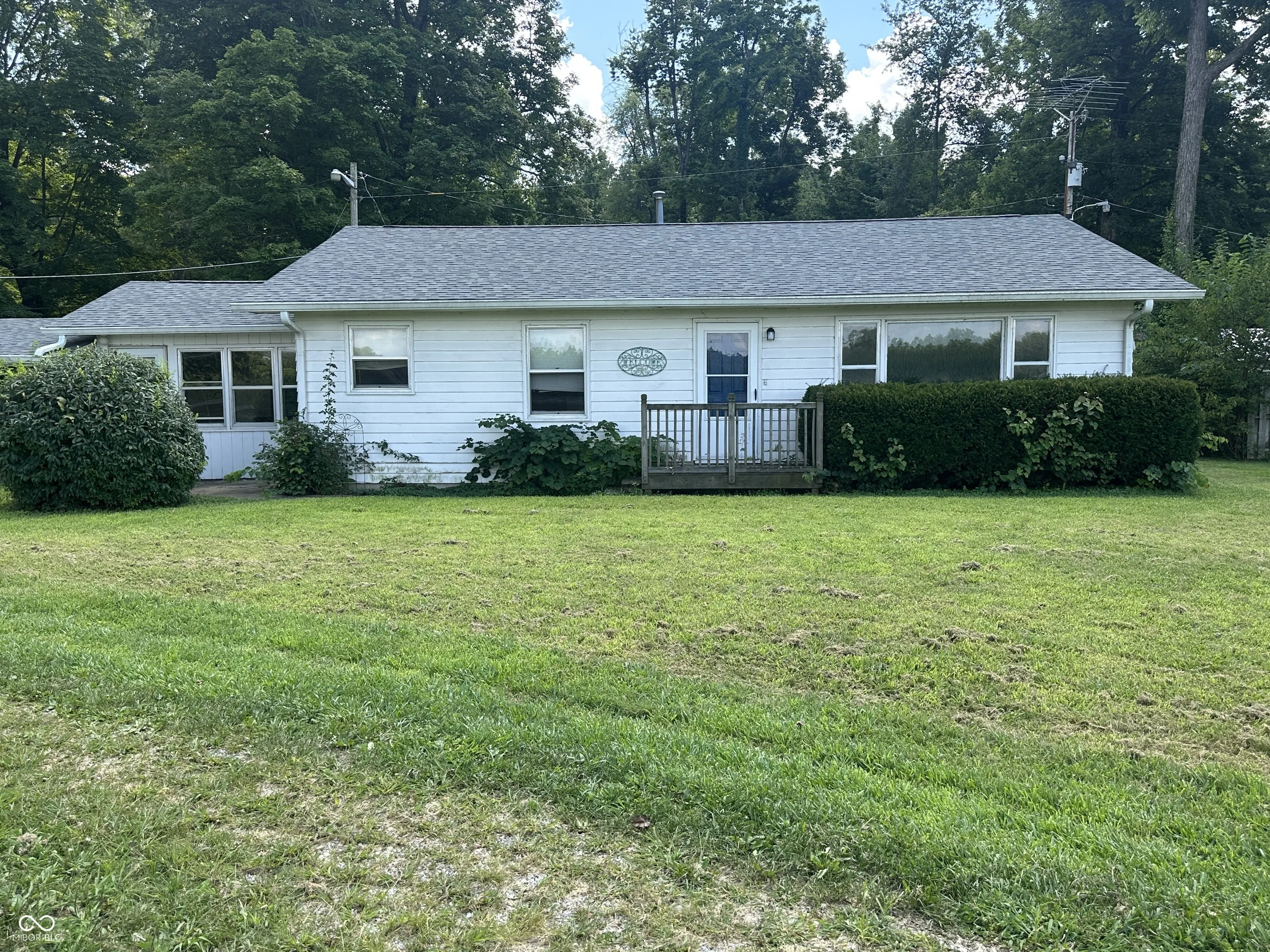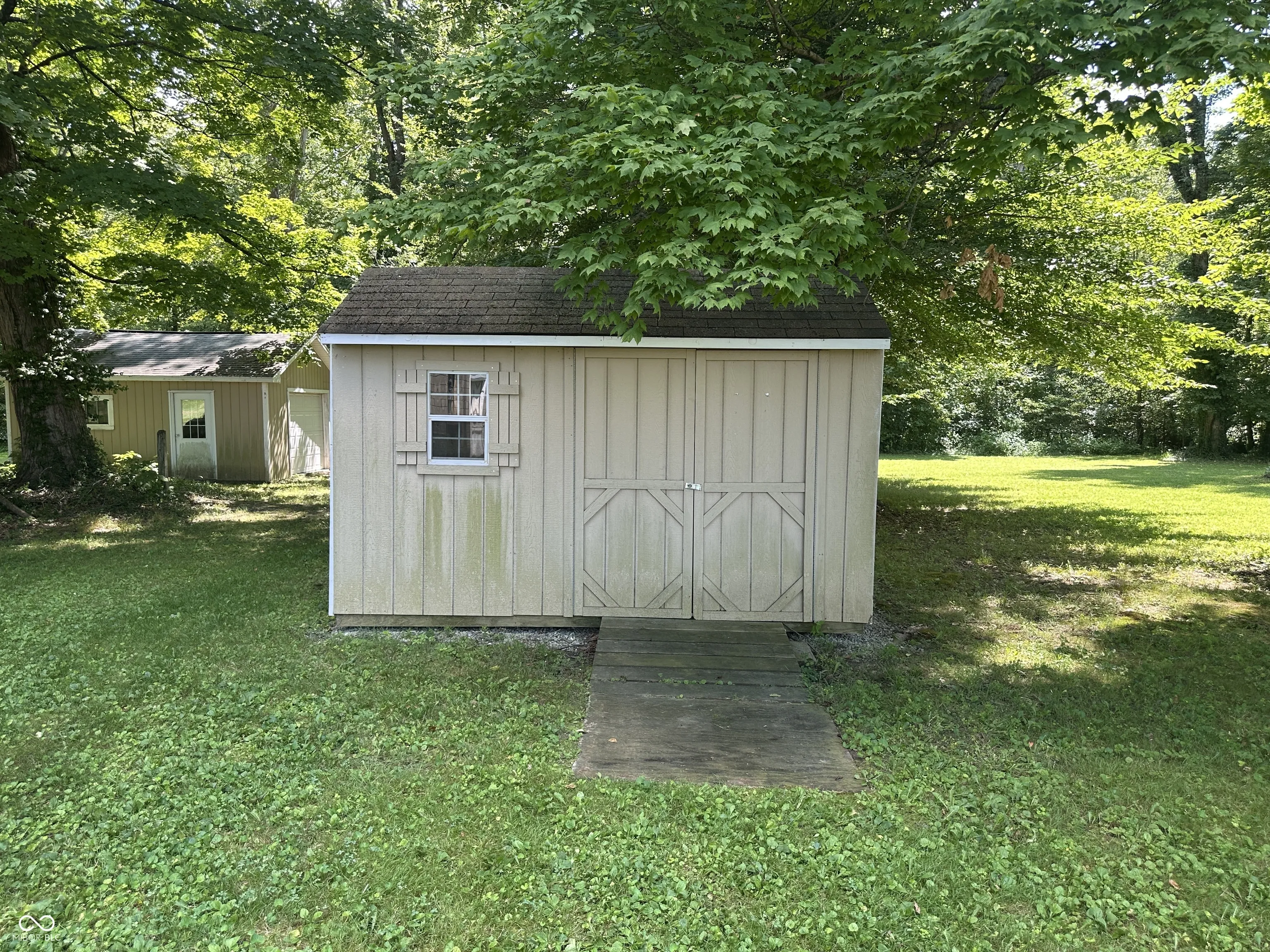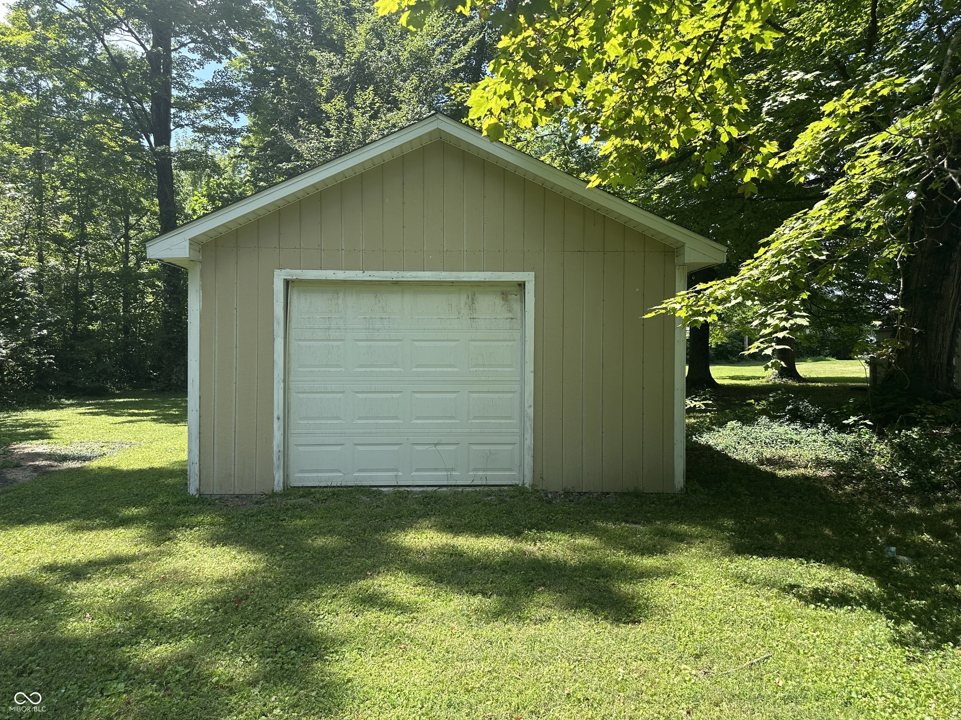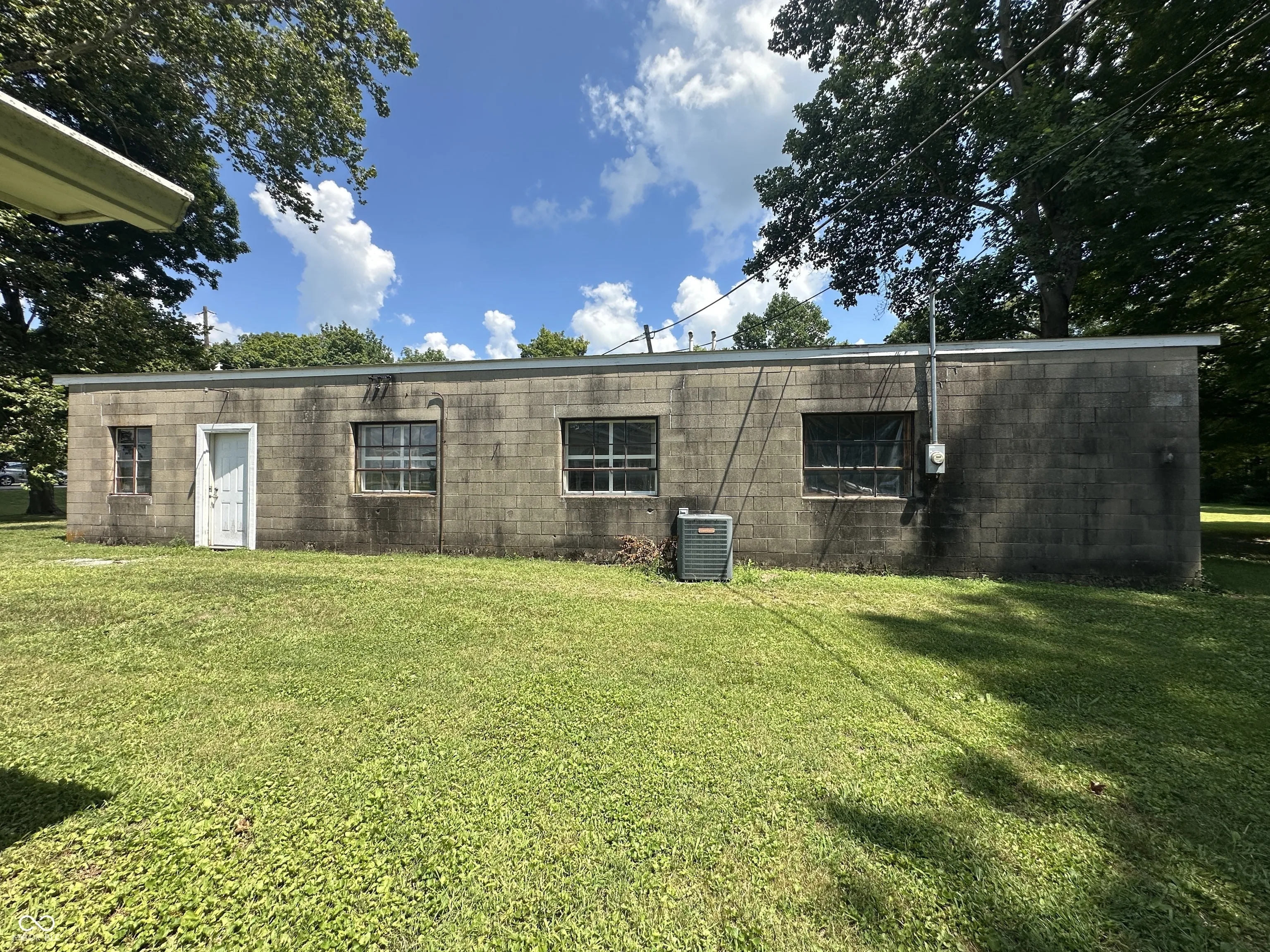 The Real Estate is a 1,280 square foot home with 2 bedrooms with hardwood floors, 1 bath, a kitchen, a living room, a large eat-in kitchen, a utility room in the enclosed side porch, a full block basement, central air, an LP gas furnace, and a carport. There are 3 outbuildings on the property. The large concrete block building is 32′ x 60′ with an 8′ x 30′ entry room (with storage above the ceiling), and 4 rooms within the building. It has 9’8″ finished ceilings, one room has an 8′ x 7′ garage door, and a half bath. The building also has central air and an LP gas furnace. On one side of the building is a very large side yard that comes with the property. There is an 8′ x 12′ garden shed. ***LAWNMOWER NOT INCLUDED*** There is a one car garage/storage building that is 16′ x 20′ with garage doors at each end.