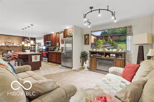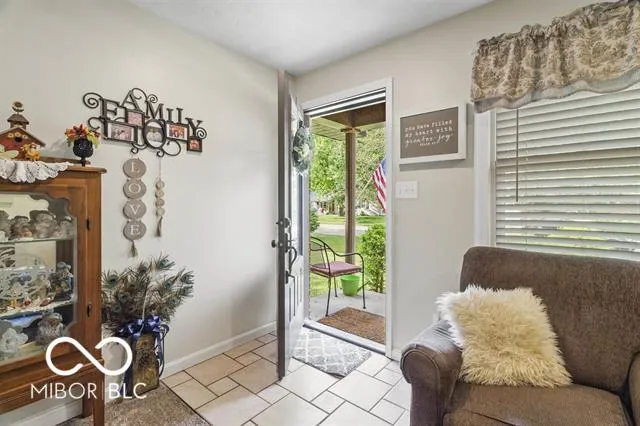 Welcome to this beautifully maintained brick ranch located in the desirable Mississinewa School District, just around the corner from the high school. Offering three bedrooms and two full baths, this home provides a little over 1,500 sq. ft. of living space with an inviting open-concept layout. The spacious living room flows seamlessly into the eat-in kitchen, which features a stunning brick gas log fireplace, custom cabinetry with soft-close doors, solid surface countertops, an island, and all appliances included. A bright sunroom at the back of the home makes for the perfect breakfast nook or cozy sitting area and leads you out to the fenced backyard. The property includes a two-car attached garage with epoxy floors, plus a second detached garage for additional storage or workspace. Major updates over the years include updated electrical, all new plumbing with a manifold system, a high-efficiency furnace, and central air. Additional inclusions are the garage freezer and a zero-turn lawnmower, making this home move-in ready with plenty of extras. The sale is contingent upon the seller securing suitable housing. Please allow 48 hours for response time on offers and include proof of funds or a pre-approval letter with your submission.