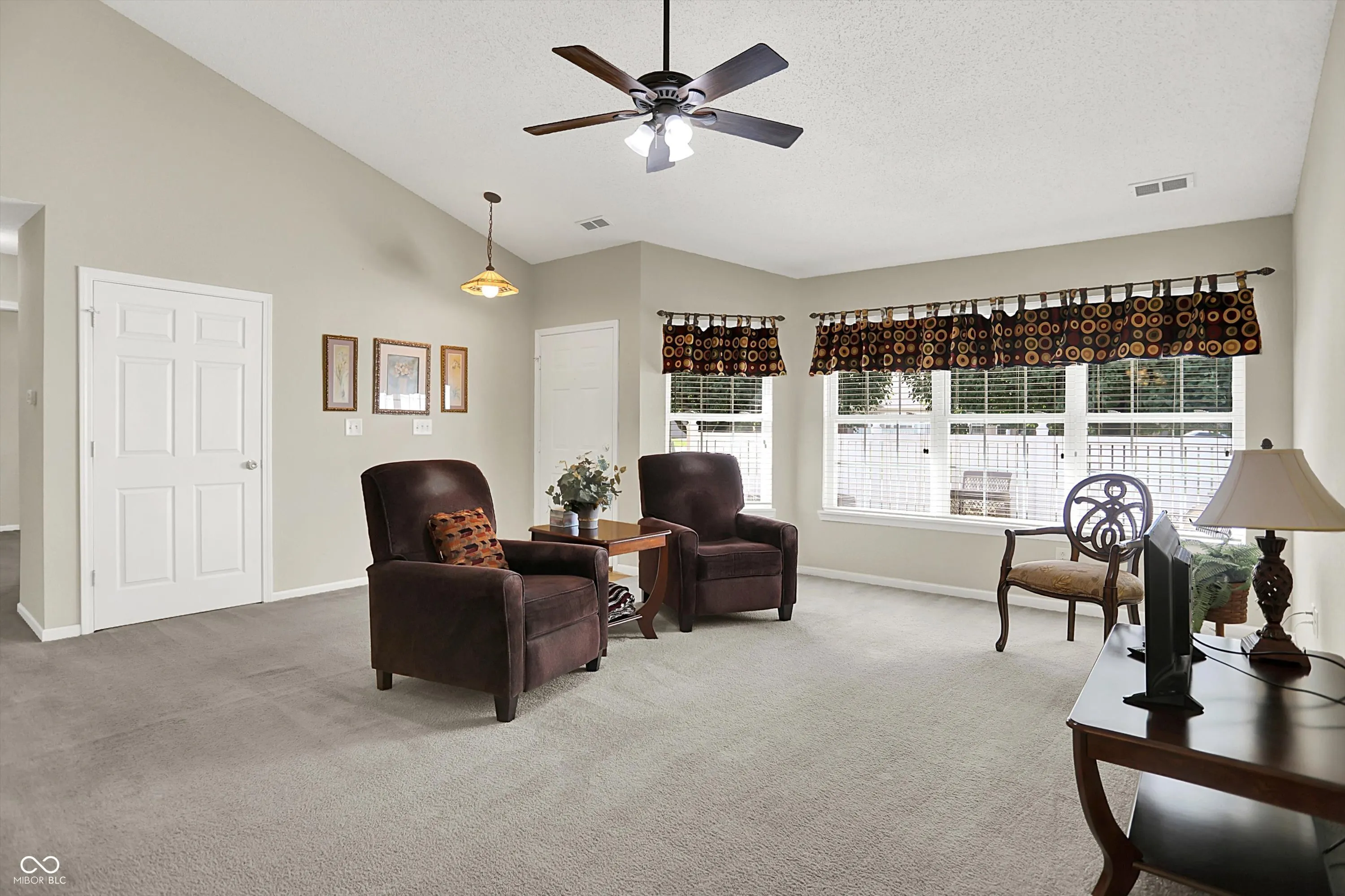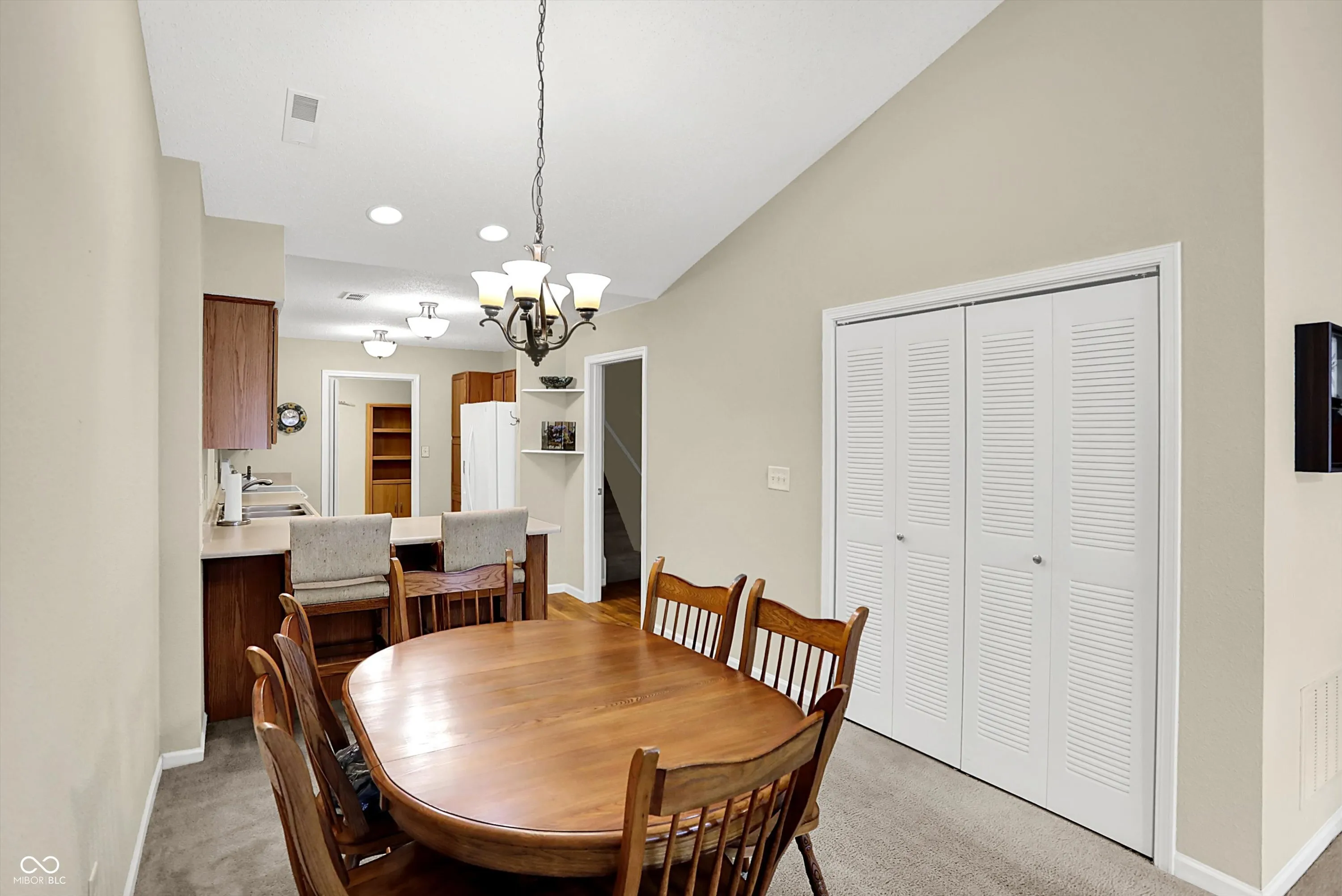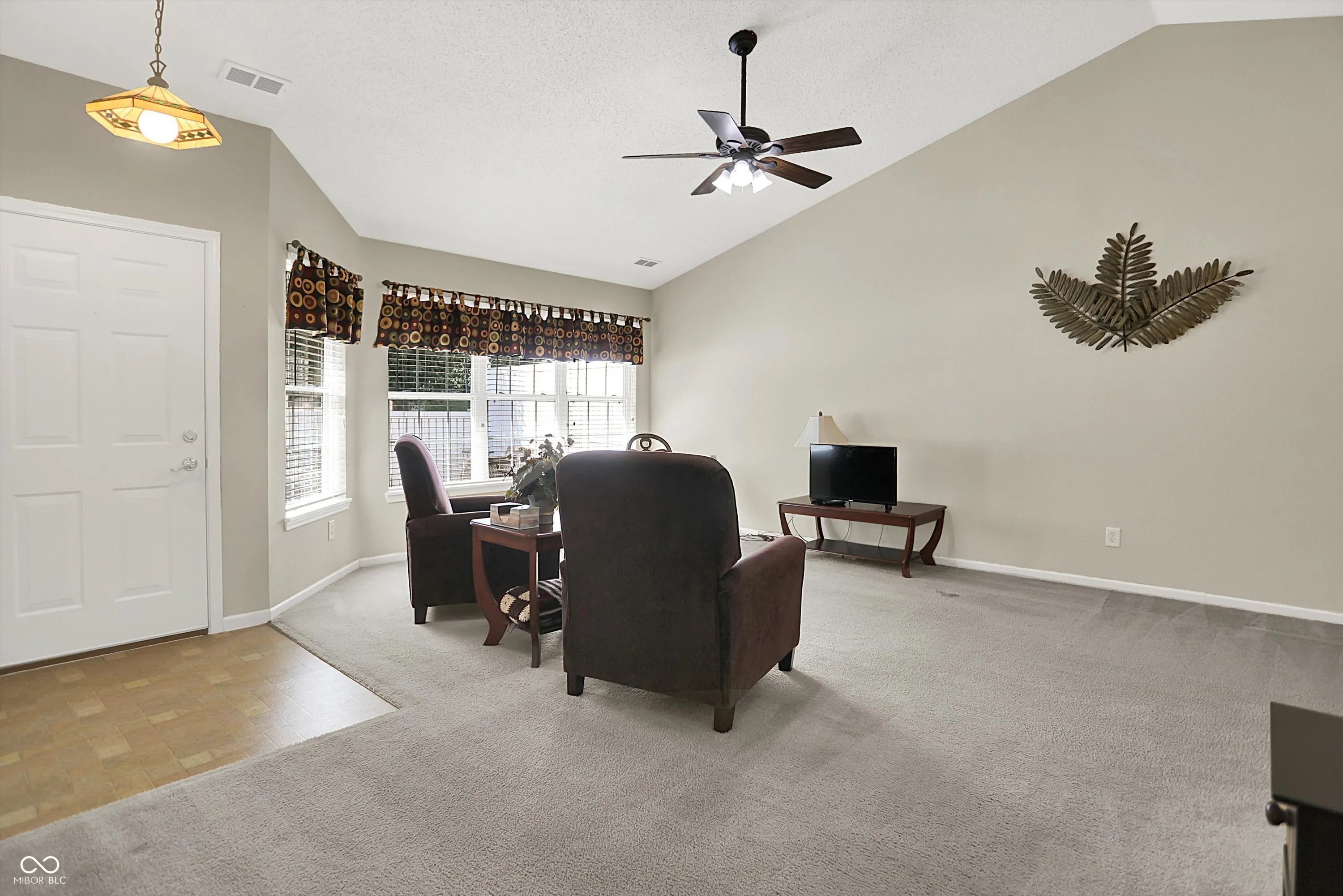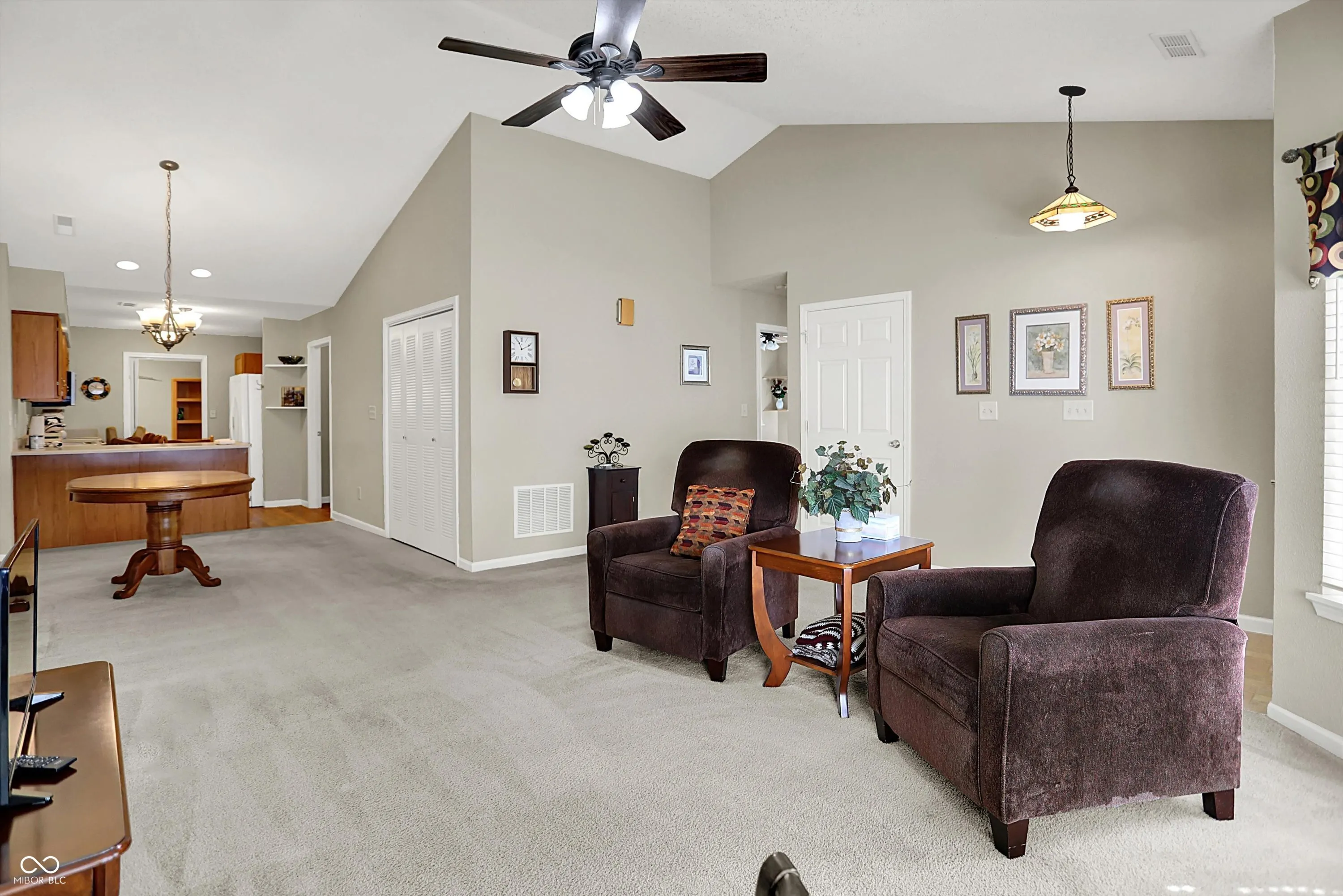 This inviting home offers a wonderful condominium living experience. Ready to move in, this property awaits those seeking comfort and convenience. The heart of this home is undoubtedly the living room, where the high vaulted ceiling creates an expansive and airy atmosphere, perfect for both relaxation and entertaining. Imagine the possibilities within this bright and open space. The kitchen offers an efficient layout with shaker cabinets that provide a touch of classic elegance, while the kitchen peninsula offers additional space for meal preparation or casual dining. This condominium also features three full bathrooms, one of which includes a walk in shower. The convenience of a dedicated laundry room adds to the functionality of this home. Three bedrooms offer flexibility for residents and guests, while the walk-in closets provides ample storage. Two bedrooms and two full baths are on the main floor, but there is a great multipurpose room with a full bath upstairs as well that is on it’s own thermostat.