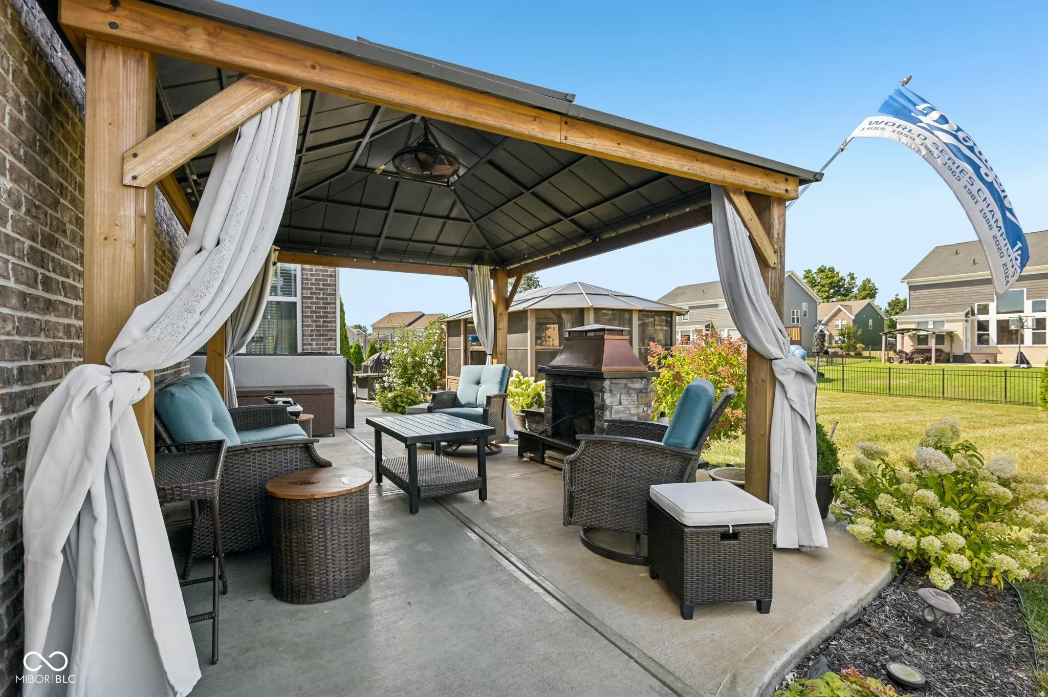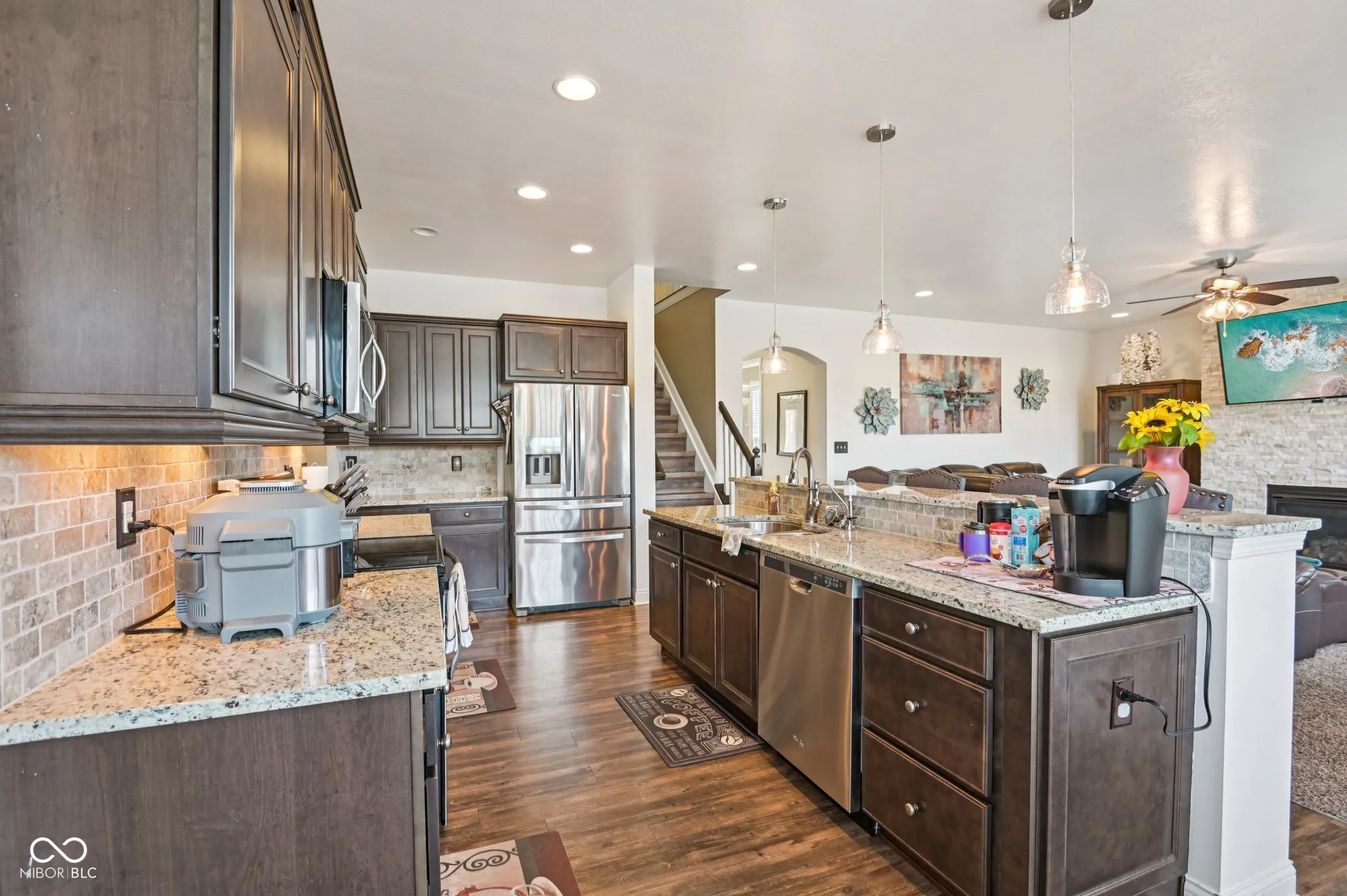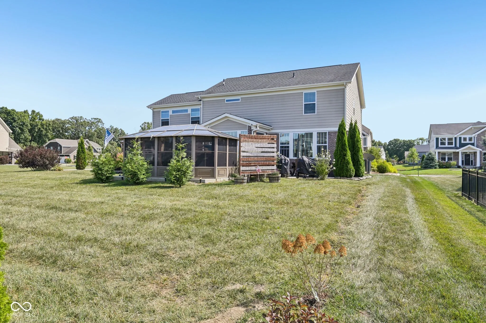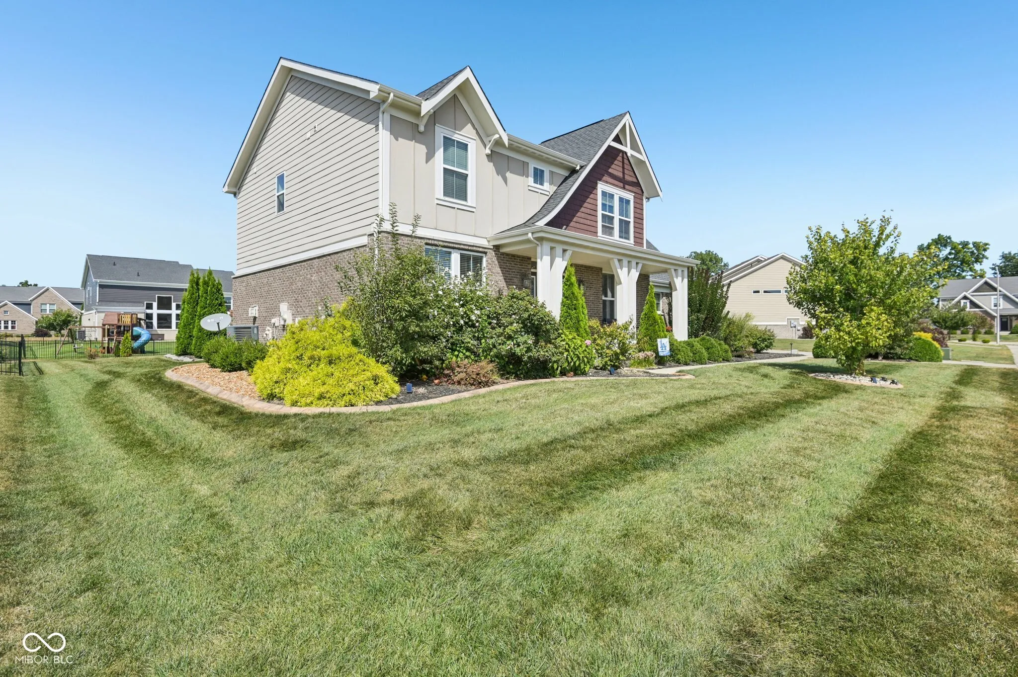 PRICE IMPROVEMENT! Entertainer’s dream home in Brownsburg Schools! Built in 2016, this Craftsman style home has everything you want and need to live the good life while entertaining friends and family! With upgrades that include a fully finished basement with Klipsch surround sound system, work out room, steam sauna, a covered patio with fireplace, plus a swim spa and new exterior paint! This is a beautifully maintained home in one of Brownsburg’s most desirable neighborhoods. From the moment you arrive, the inviting front porch, mature landscaping, and charm of the exterior set the tone for what you’ll find inside. Step through the front door and you’re greeted by an open and airy living space filled with natural light streaming through oversized windows. The warmth of the fireplace and the seamless connection to the kitchen and dining areas make it the kind of place where you’ll instantly feel at home, whether you’re hosting friends or enjoying a quiet evening in. The kitchen is as practical as it is beautiful, with granite counters, stainless steel appliances, and a large island that naturally becomes the heart of the home. Mornings flow easily here, and evenings feel just as effortless with open sightlines and plenty of space for everyone to gather. Upstairs, the spacious primary suite feels like a retreat with its tray ceiling, cozy sitting area, and spa-like bath. The additional bedrooms are bright and comfortable, offering perfect spots for family, guests, or a home office. The finished basement is a standout feature, offering a flexible space that can be anything you imagine – from movie nights and game day gatherings to a peaceful escape. With its modern bathroom and open layout, it’s designed for both fun and function. Outside, the backyard offers a private escape where you can unwind, entertain, or let kids and pets play freely.