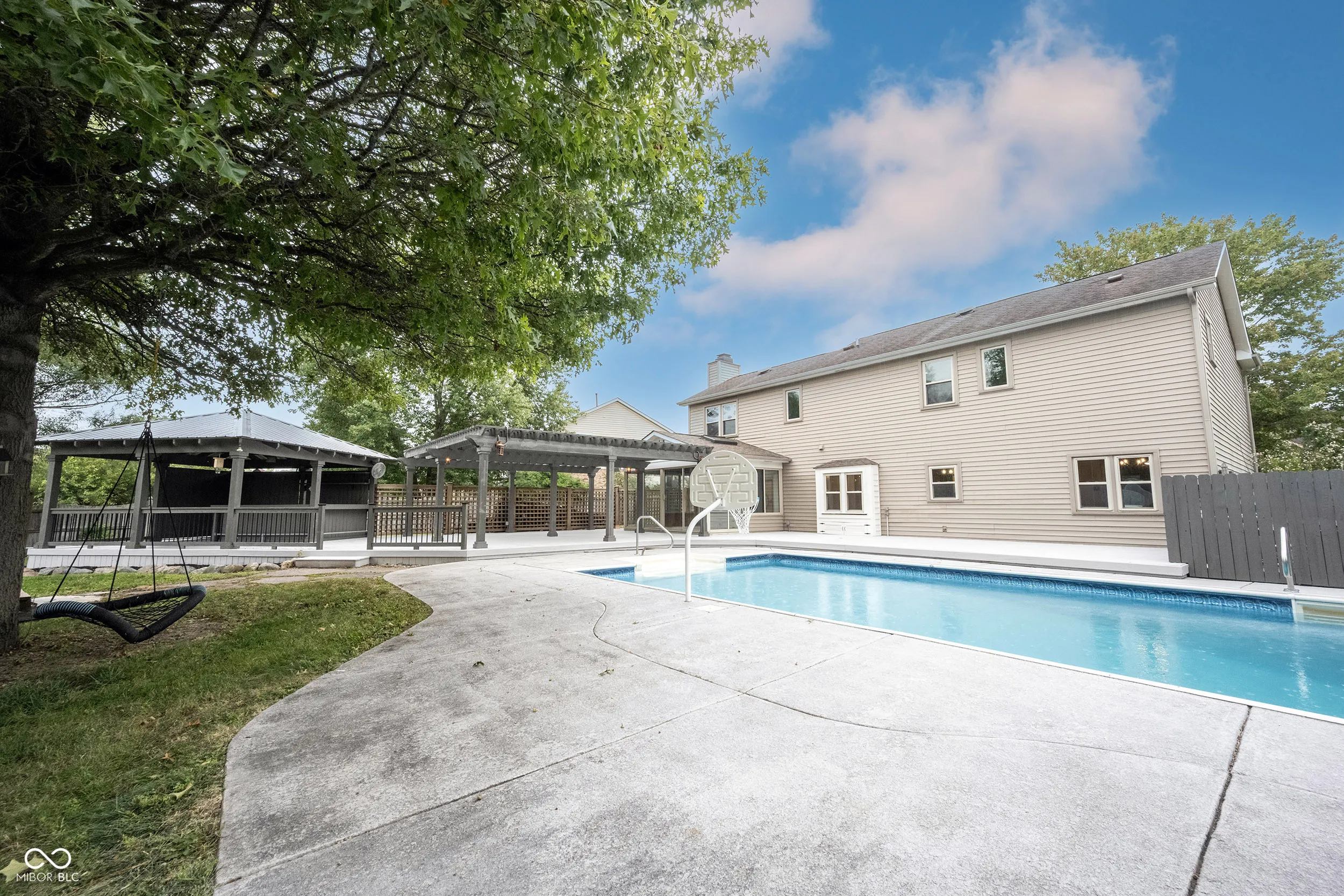 Welcome to this beautifully updated home that’s perfect for family living and entertaining! The spacious kitchen has been completely refreshed with new soft-close cabinets, quartz countertops, a stylish tiled backsplash, custom hood, and brand-new appliances, including a double oven and beverage fridge-ideal for cooking big family meals or hosting friends. You’ll love the fresh updates throughout, including new interior paint, new carpet and runner, a new water softener, and thoughtful bathroom upgrades like a newly tiled primary shower and new vanity. The home’s 9′ ceilings and beautiful trim work make each room feel bright and open. The living room features a wood burning fireplace and french doors that connect to the sunroom creates a cozy spot for gathering. The sunroom is the perfect transition to the outside with multiple sliding doors and windows and it’s own HVAC system allowing use all year round. The huge backyard is ready for hours of fun with a play set, swing set, and merry-go-round. Enjoy the large 18×36′ pool with diving board and basketball hoop for endless summer memories. Plenty of space for seating on this spacious deck with pergola and gazebo with bar area. The home features a dual zone HVAC system with tankless water heater. This home is move-in ready with all the updates your family needs and all the space to create a lifetime of memories together!