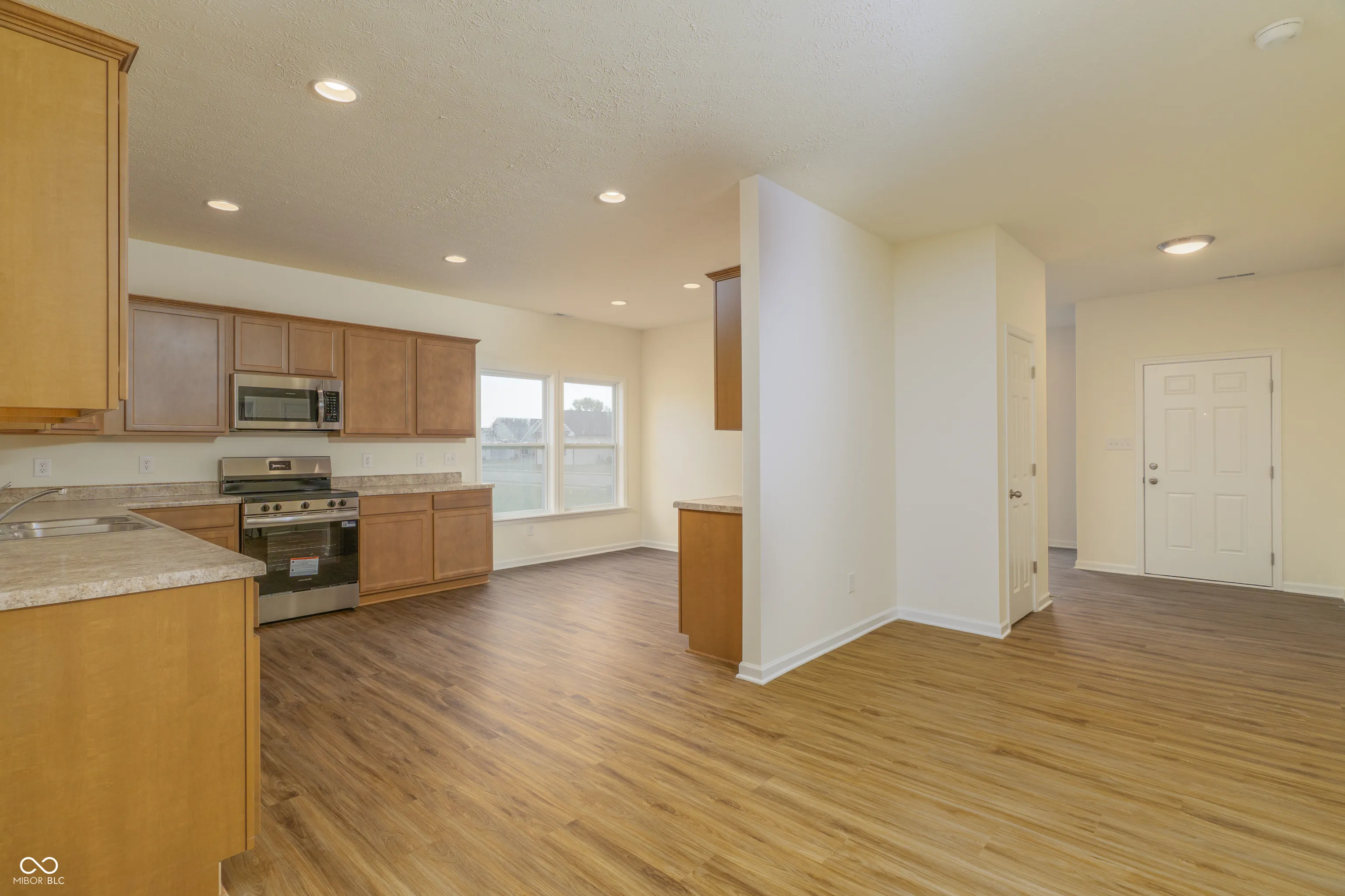 Beautiful new Ranch home with 3 Bedrooms, 2 full Baths, 9′ ceilings, and 2 car Garage. Kitchen features: beautiful quill color Aristokraft cabinets, Breakfast Room, can lighting, LVP flooring, pantry, and stainless steel appliances. Primary Suite connects to ensuite bathroom with double sinks, garden tub/shower combo, and walk in closet. LVP flooring throughout the entry, living/dining room, kitchen/breakfast room and family room. Home also features: Dining/Living Room that could be used as an Office. Laundry Room is located right off the garage.