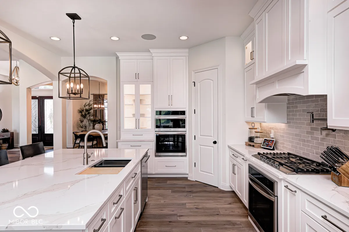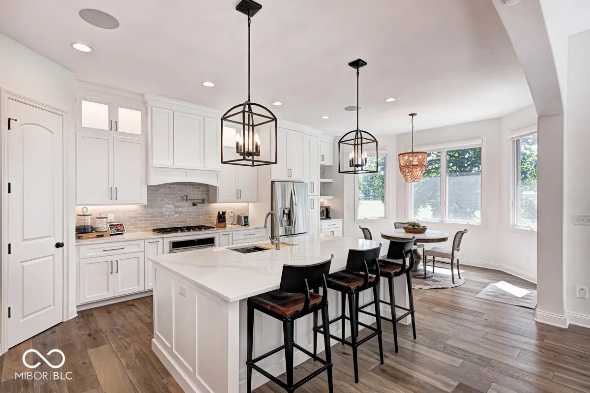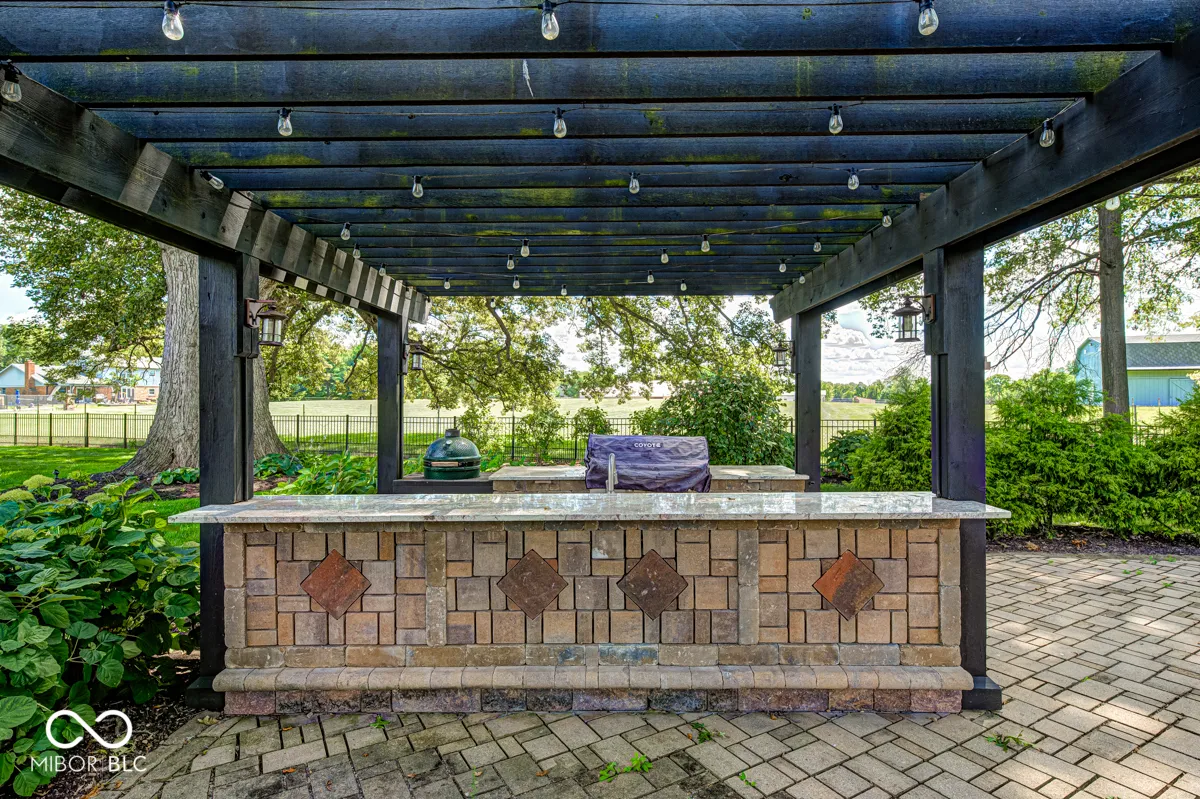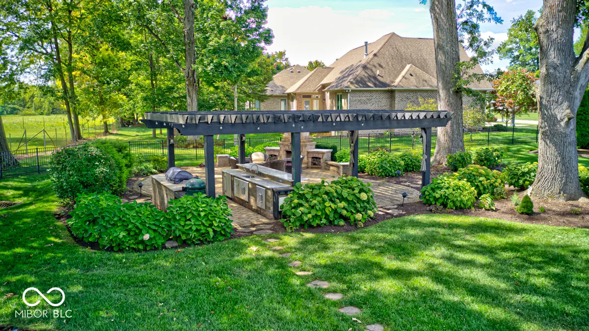 Seller incentive: Up to 2 points toward an interest rate buy-down with a strong offer! This absolutely stunning executive residence has been thoughtfully updated in 2025, showcasing luxury at every turn. From the coffered ceilings and wide-plank white oak floors to the bull-nosed drywall, designer lighting, and custom window treatments, every detail has been meticulously curated. This floor plan includes Five ensuite bedrooms including three on main level. A brand-new chef’s kitchen features custom Amish cabinetry, quartz countertops, a classic subway tile backsplash, professional-grade appliances, and modern fixtures. Seamlessly connected to the great room, this central space is perfect for gatherings, highlighted by custom built-ins framing the fireplace, soaring 12′ coffered ceilings, and elegant crown molding. Entertain in style in the formal dining room, complete with a tray ceiling and showstopping chandelier. The split floor plan ensures privacy, with the primary wing offering a grand retreat. The expansive suite includes a sunlit sitting area, rich woodwork, and a spa-like bathroom with a custom tile shower, dual vanities with abundant storage, heated tile floors, and a designer closet. Two additional en-suite bedrooms are located on the main level, while the finished basement offers two more en-suite bedrooms (one currently serving as a home gym). The lower level also features a full bar open to the family room with daylight windows, ideal for recreation and gatherings. Wine lovers will appreciate the fully climate-controlled wine cellar, while movie nights come alive in the state-of-the-art theater with Sonos surround sound-also providing whole-home audio. The outdoor living spaces are just as impressive, including an additional lot with a gourmet outdoor kitchen, pergola, grand fireplace, and lush professional landscaping. The fully fenced .68-acre property has been impeccably maintained, offering both beauty and functionality and style.