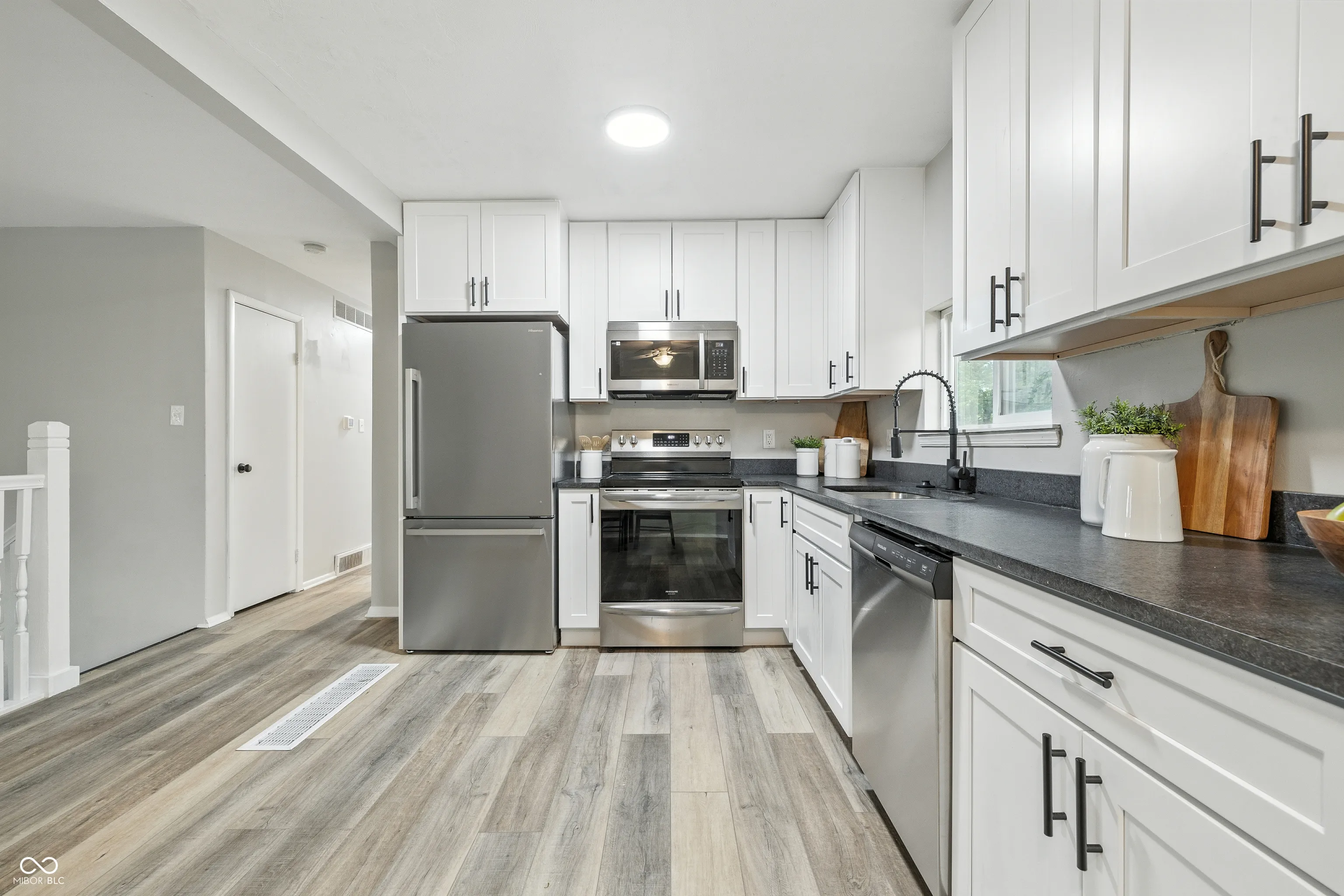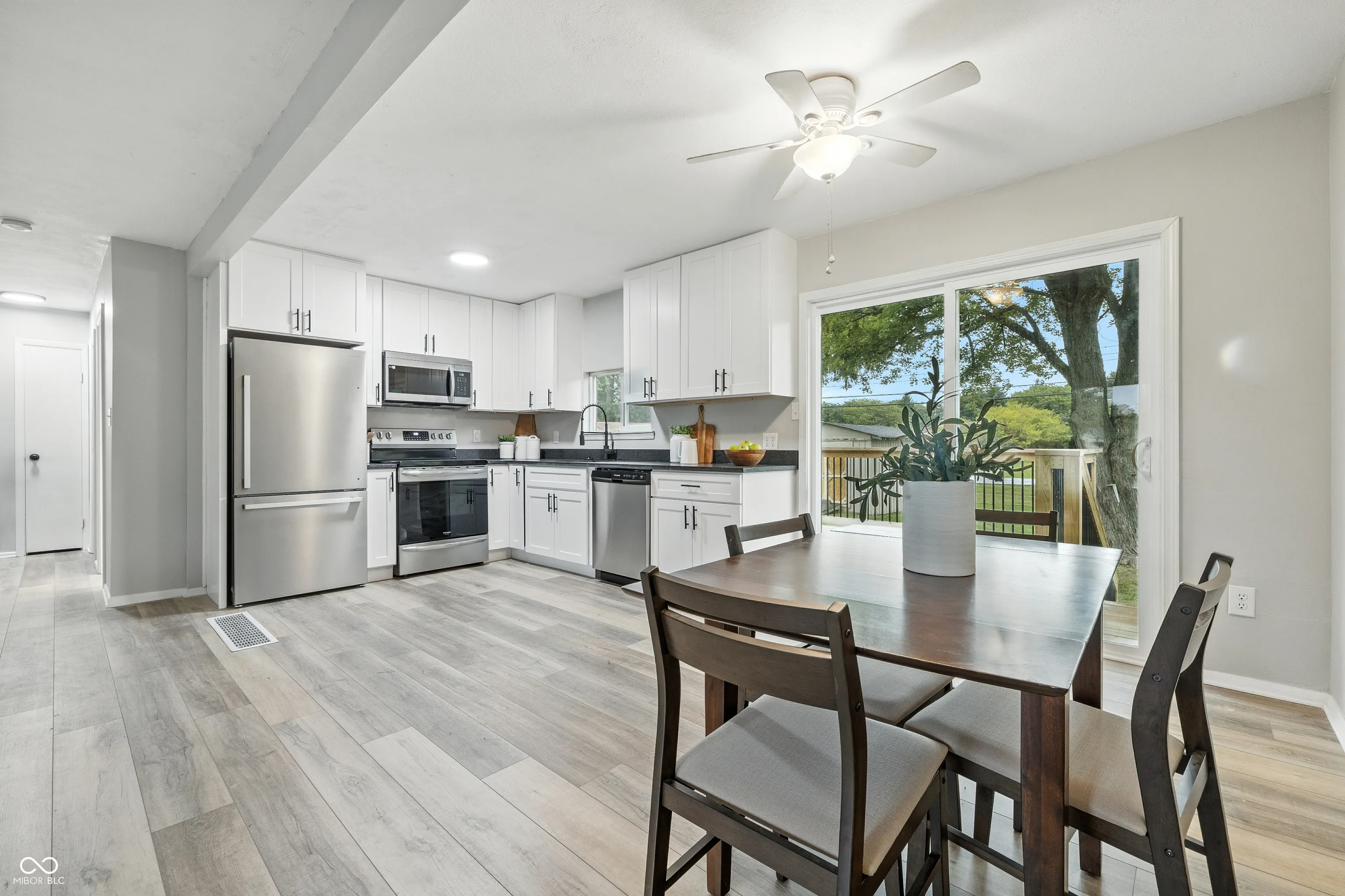 Spacious and updated split-level home in Perry Township! This move-in ready property offers 5 bedrooms and 2 full bathrooms with fresh updates throughout. Upstairs you’ll find 3 bedrooms, a bright living room, and a kitchen with an eat-in dining area. Sliding doors off the dining room open to a large deck, perfect for outdoor entertaining. The lower level features a cozy family room with a fireplace, 2 additional bedrooms, a newly renovated full bathroom, and a laundry room. Recent improvements include brand new flooring throughout, fresh paint, updated fixtures, and fully renovated bathrooms. Enjoy the attached 2-car garage, a backyard with a storage shed, and a fire pit for summer evenings. Convenient Perry Township location close to schools, shopping, and dining!