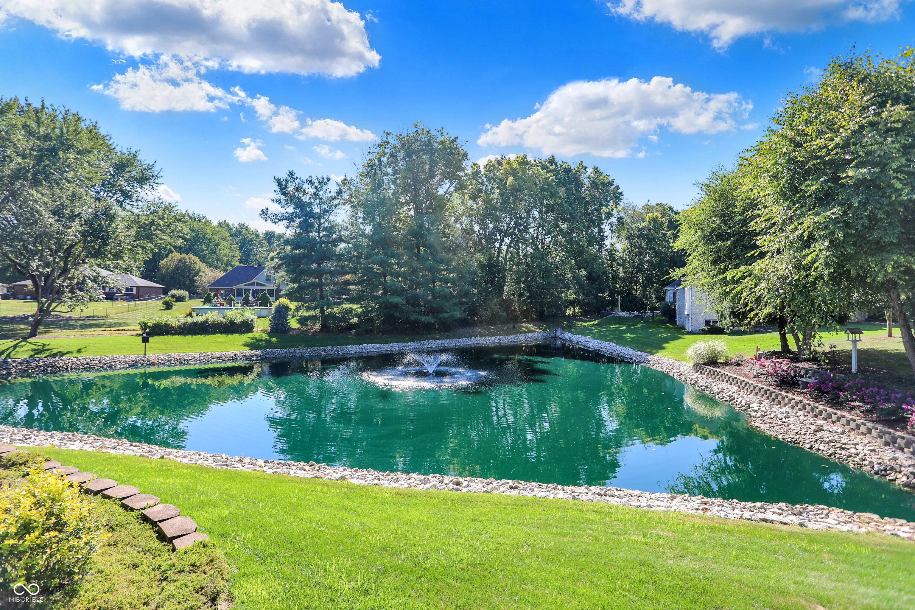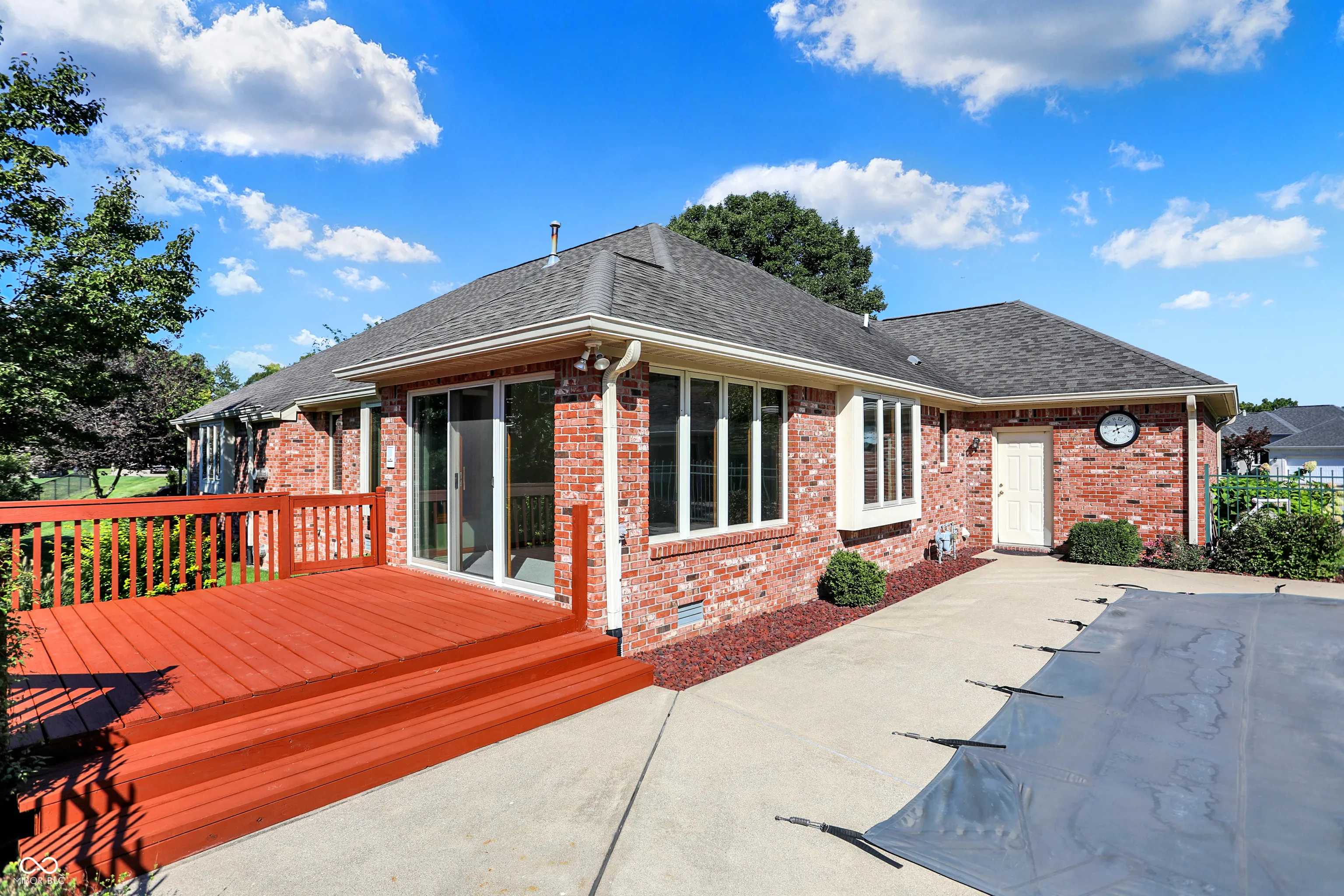 Welcome to sought after Makena Ridge in the heart of Center Grove. All brick custom home built by Kent Franklin and offers 3554 square feet of living space as well as a 3 car garage on a Cul-De-Sac. A massive primary bedroom is located on the main along with two other bedrooms, a living room with a gas fireplace, 2.5 bathrooms, formal dining room, laundry room, kitchen with a breakfast room, pantry, and sunroom. The Basement is home to the fourth bedroom, full bathroom, living room, a workshop, a second kitchen, and a second gas fireplace. The interior is nothing short of paradise, but be prepare to be wowed by the exterior features. Grab your favorite beverage and relax outside in your backyard oasis that features an inground fiberglass pool with a solar cover, pond with a fountain, concrete pool deck and wood deck for extra outdoor living space, and an irrigation system to keep your yard lush and beautiful. The fenced pool deck is wrought iron and lends beautifully to the landscape. Homes in this subdivision rarely come available so scheduled your private showing today!
