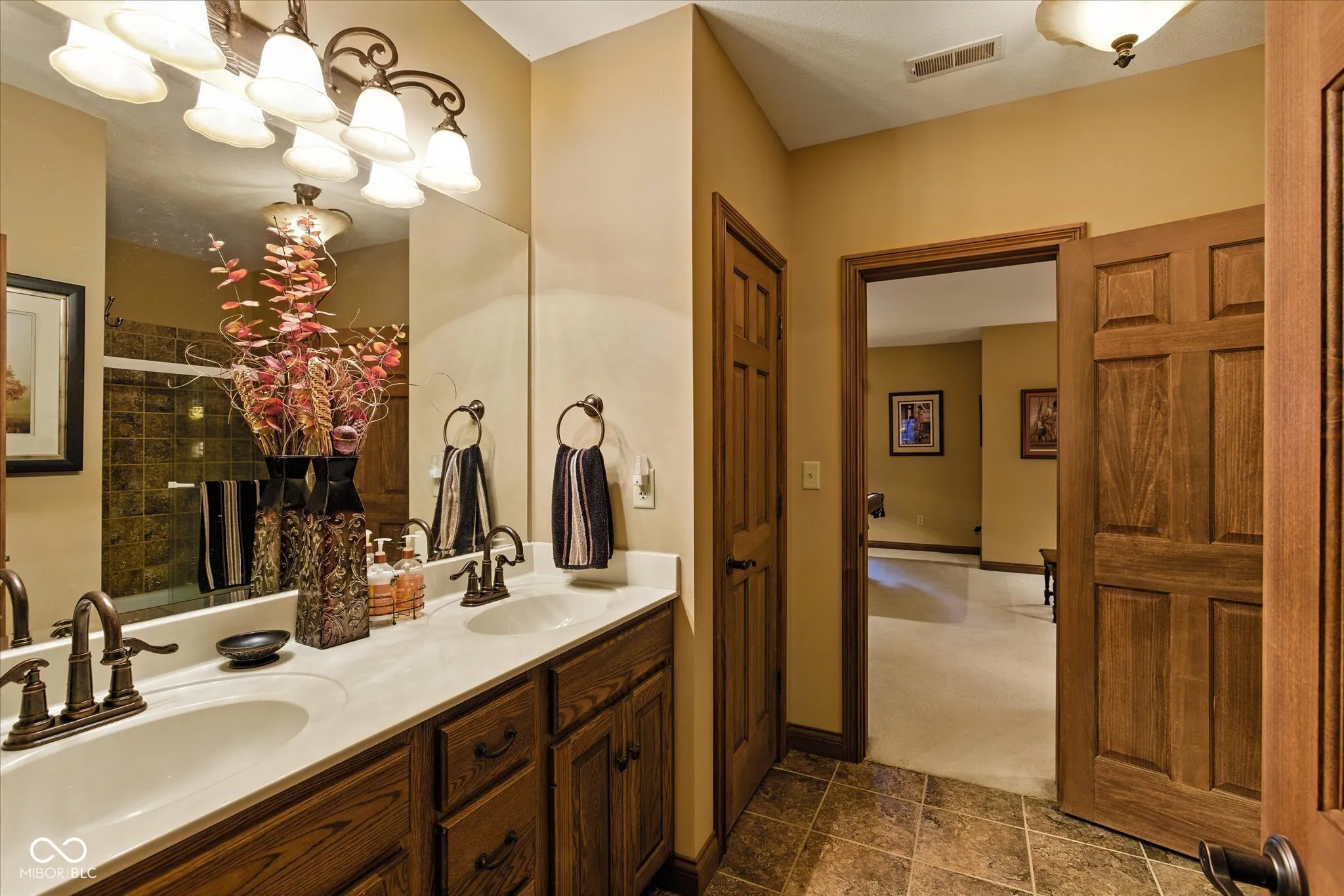 Stunning 7,581 sq. ft. custom Tudor-style estate home on a private 3.64-acre lot in a four-star school system. Featuring 6 bedrooms, 5.5 baths, soaring 18′ ceilings, a main-level owner’s suite, and multiple living spaces designed for entertaining. Highlights include a gourmet kitchen with island and breakfast bar, formal dining, great room with fireplaces, and a screened porch with natural gas grill hookup. The finished lower level offers a family room with fireplace, a second kitchen, game areas, and two additional bedrooms. Outside you’ll find a wrought iron fenced backyard (approx. 1 acre), storage barn, and 3-car garage with mudroom. No HOA fees, private road, and plenty of storage throughout. One of Franklin Township’s finest!