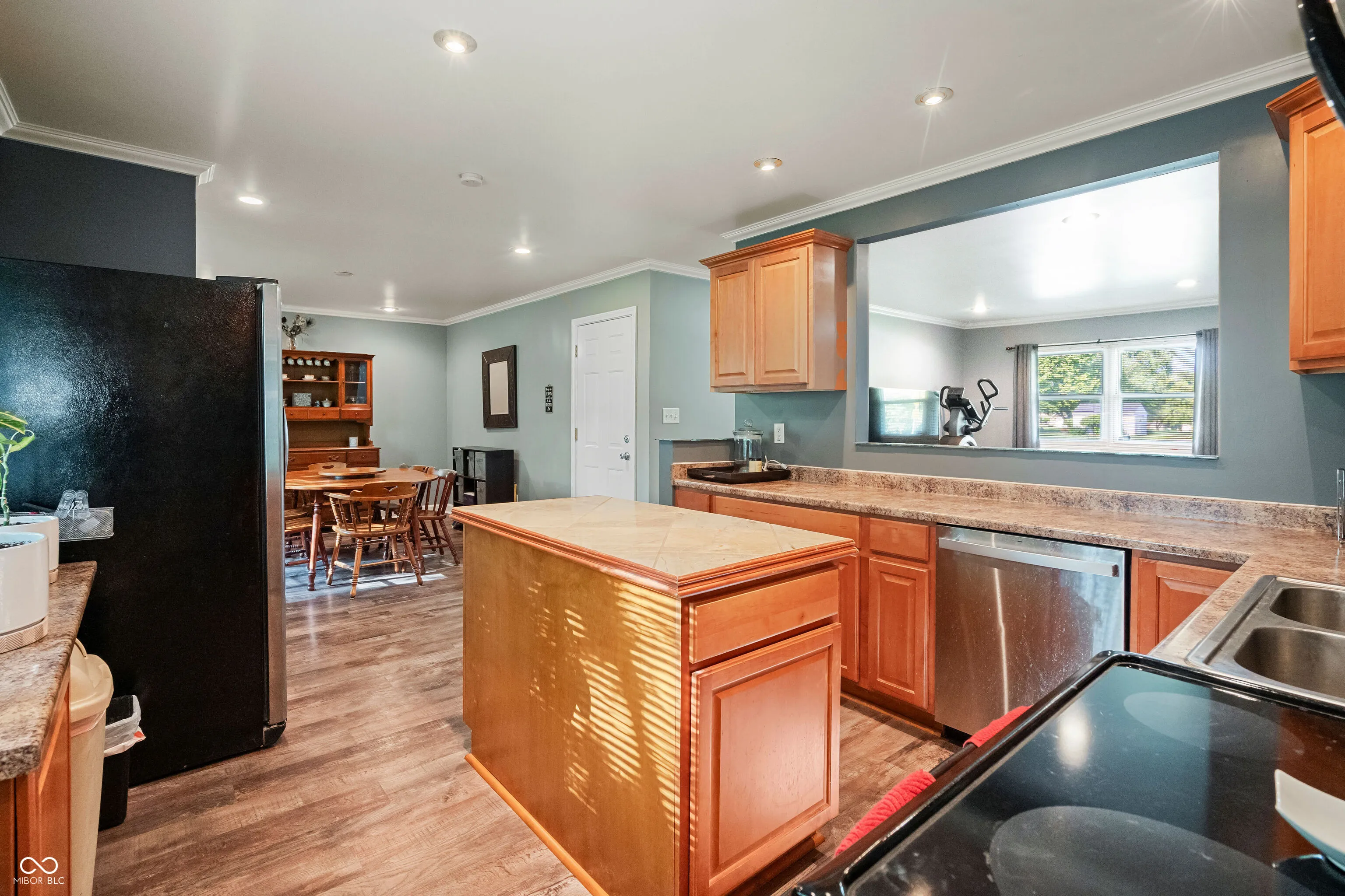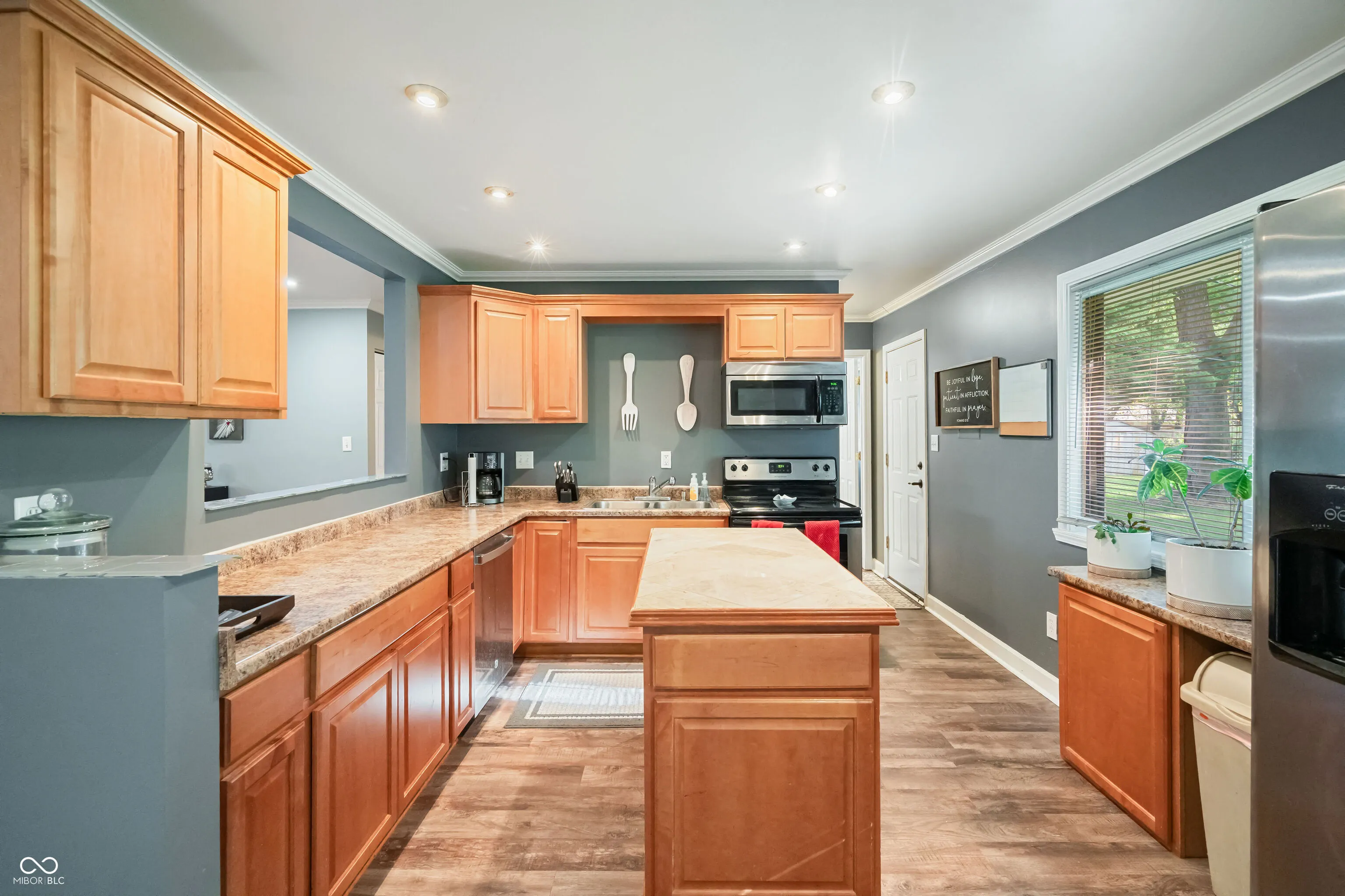 Crisp & Cozy Greenwood Ranch Loaded with Updates! Features: Big Gourmet Kitchen with Custom Cabinets, Extra Counter Space, Center Island, Pass Through Window & Stainless Appliances! Big Large Dining Area Connects to Kitchen with Room for a Large Table. Big & Bright Living Room has Recessed Lighting & Newer Laminate flooring in much of the home. Newer Roof, HVAC, Dishwasher & more! Lots of Thermal Windows in home adds good natural lighting. Updated Baths with Tiled Floors & Shower. Ceiling lights or Recessed Lighting in all rooms. Large Primary Bedroom with a nice Half Bath. Laundry Room, Attached Garage with Garage Door Opener & room for extra parking. Covered Front Porch to Watch Sunsets. Over 1/4 acre yard with mature trees for shade in the back. Move-in ready. Lots of Bells & Whistles at a budgeted price! Great location has easy access to everything but in a quiet mature neighborhood with lots of green space, trees & big yards. Neighborhood Sidewalks for strolls or a jog and just a block from Westside Park. The park is a picturesque & rolling 27 acres for walks, picnics, softball, tennis, skateboarding & more & has the meandering Pleasant Creek with wildlife views. Howard Road Runs from Fry Rd & Main Street in Greenwood giving you access to everything in both directions.