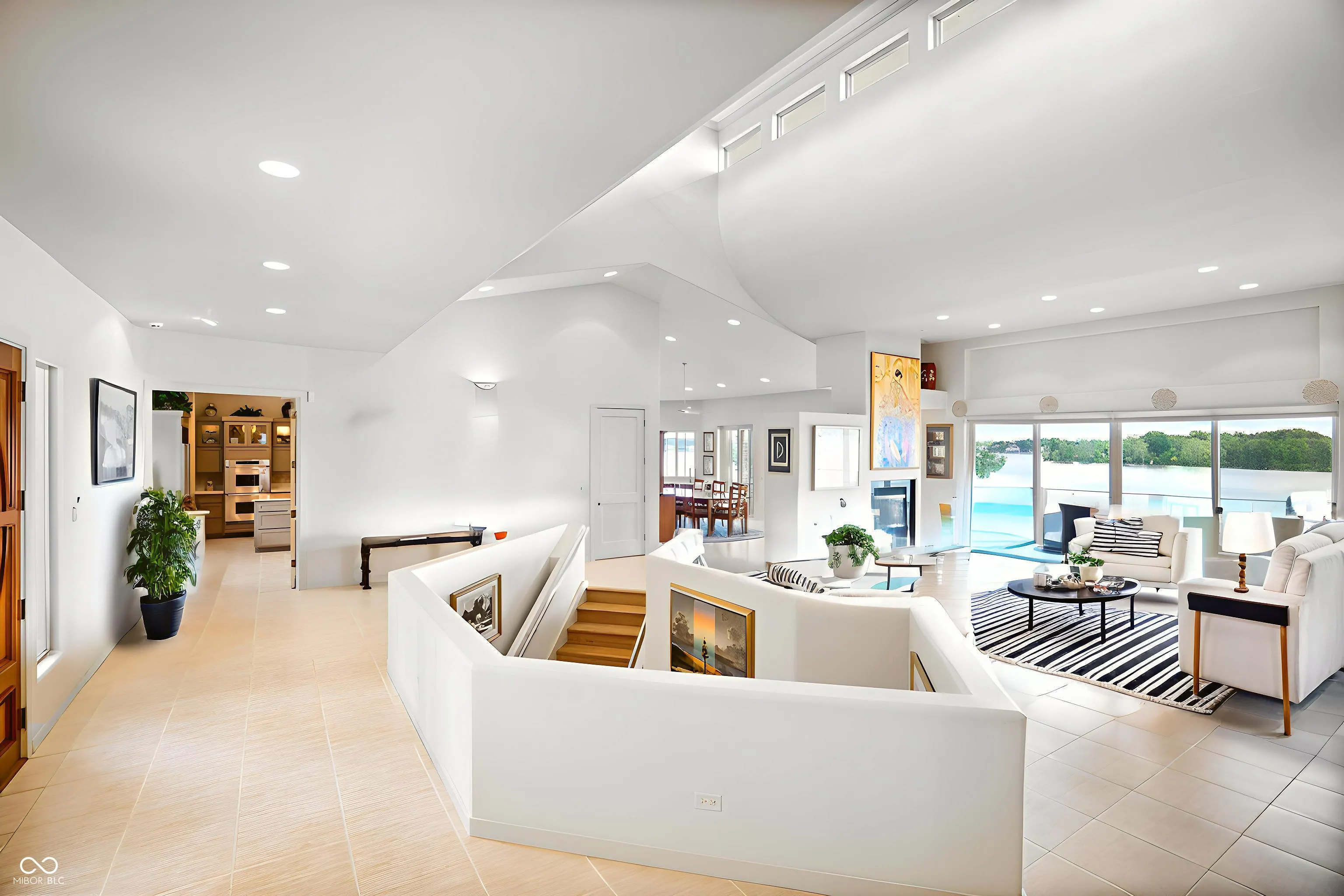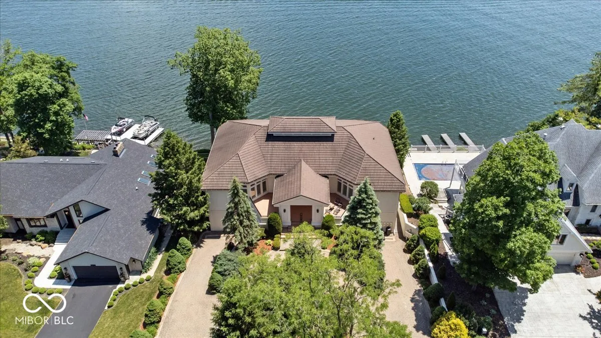 STUNNING Geist Waterfront Retreat on the MAIN BODY of Geist Reservoir. Perfectly positioned with over 100′ of water frontage and sweeping PANORAMIC VIEWS on all 3 levels. Fantastic home for MULTI-GENERATIONAL Living! Inspired Scandinavian design, the home showcases a sophisticated blend of natural materials, a neutral palette, abundant natural light, clean lines, and thoughtful minimalism throughout. A striking custom circular staircase serves as a central architectural feature, seamlessly connecting each level of the home. Each level offers a distinct design featuring a main level living space, one of a kind kitchen, bar for entertaining, a fireplace and exterior balcony. The Main Level greets you with heightened ceilings and Frank Lloyd Wright inspired clerestory windows. Easily work from home in the 2-story library/office with built-in’s. Let’s not forget the ELEVATOR that transcends to each level. There are 4 bedrooms each fitted with their own en-suite and walk-in closet. Home also features a 4+ car garage with storage. Heated floors throughout. Designed to capture the best views Geist offers–this property is best appreciated in person.